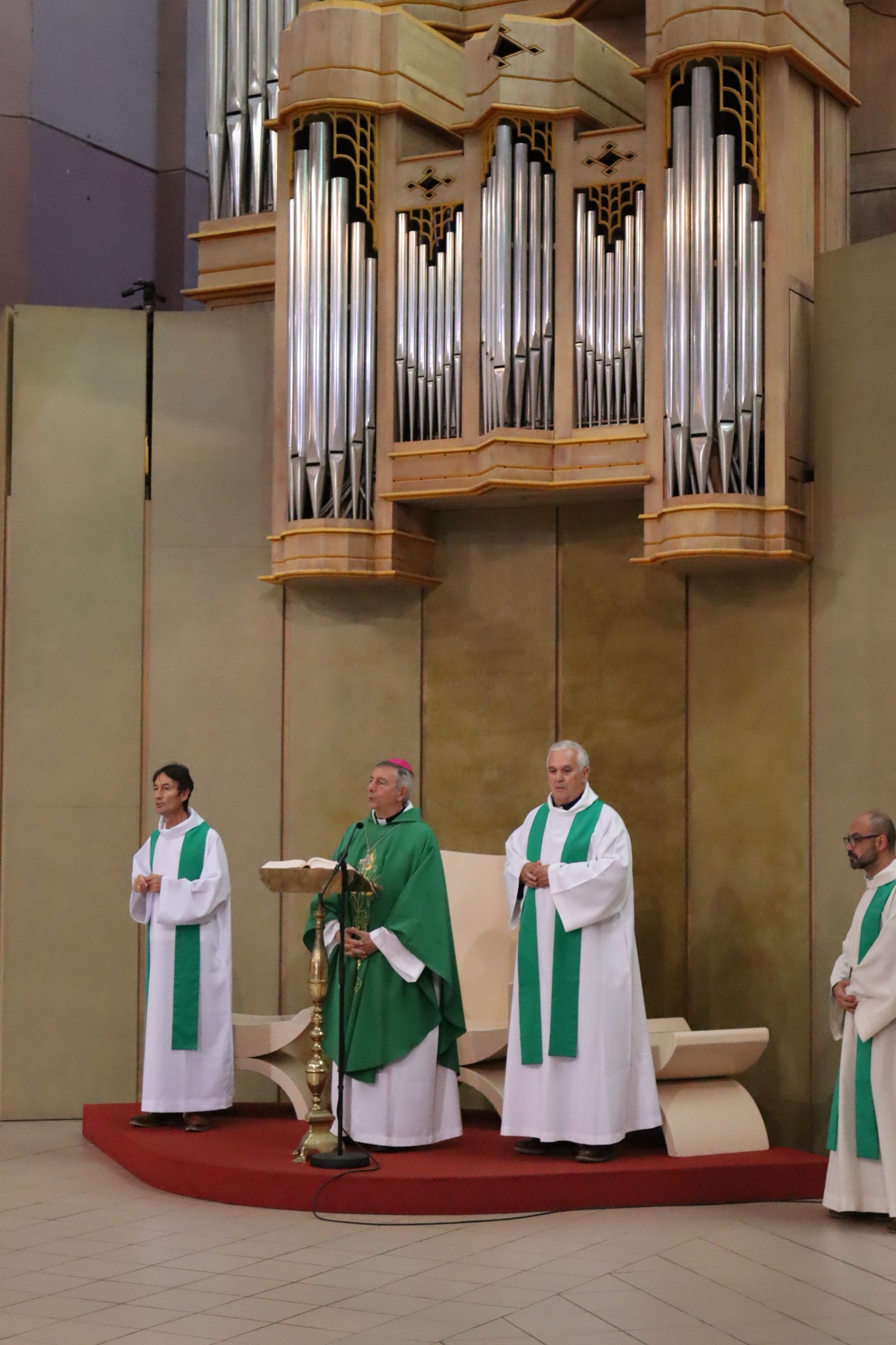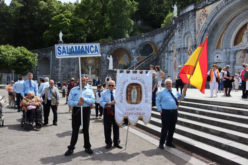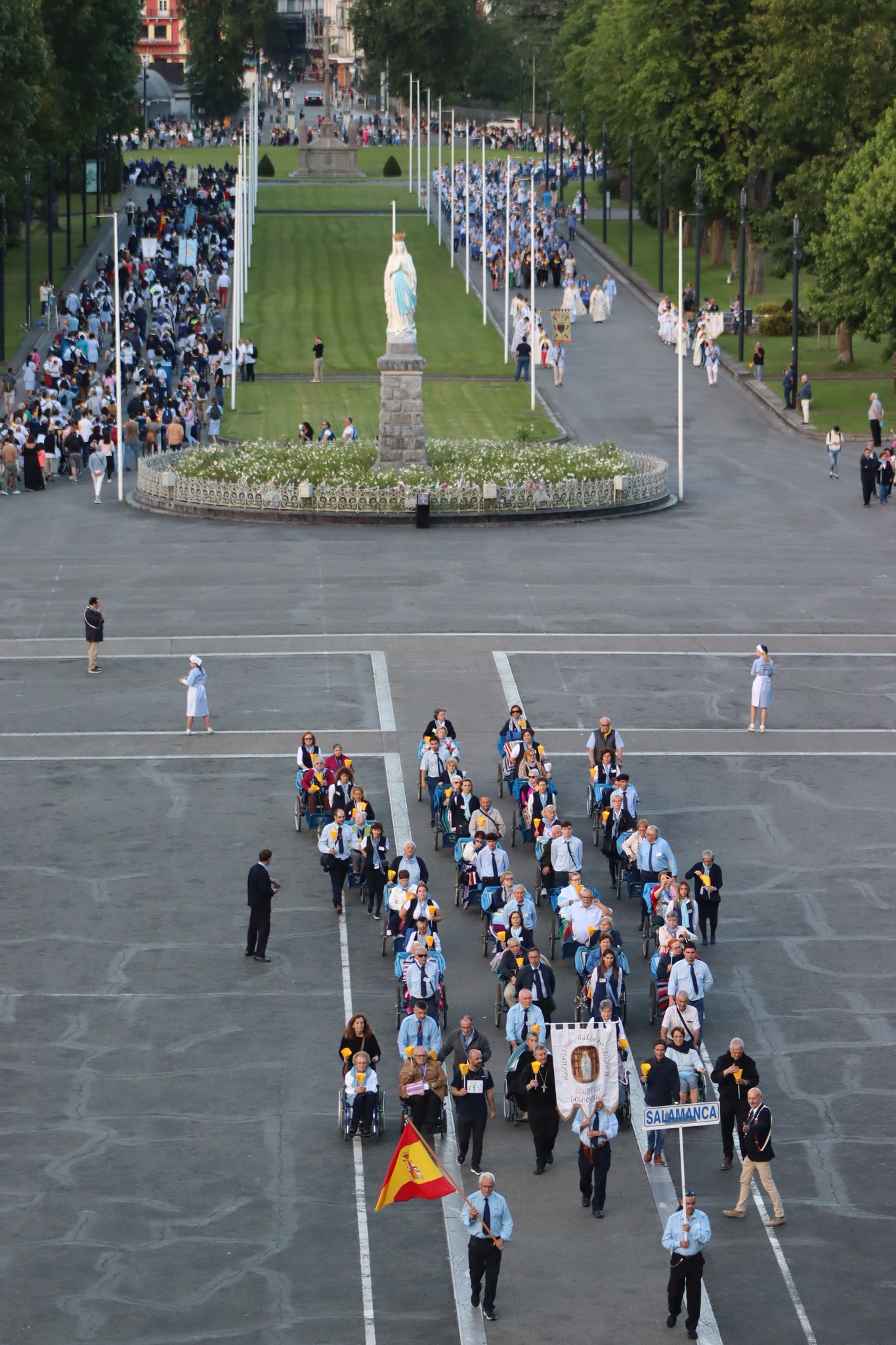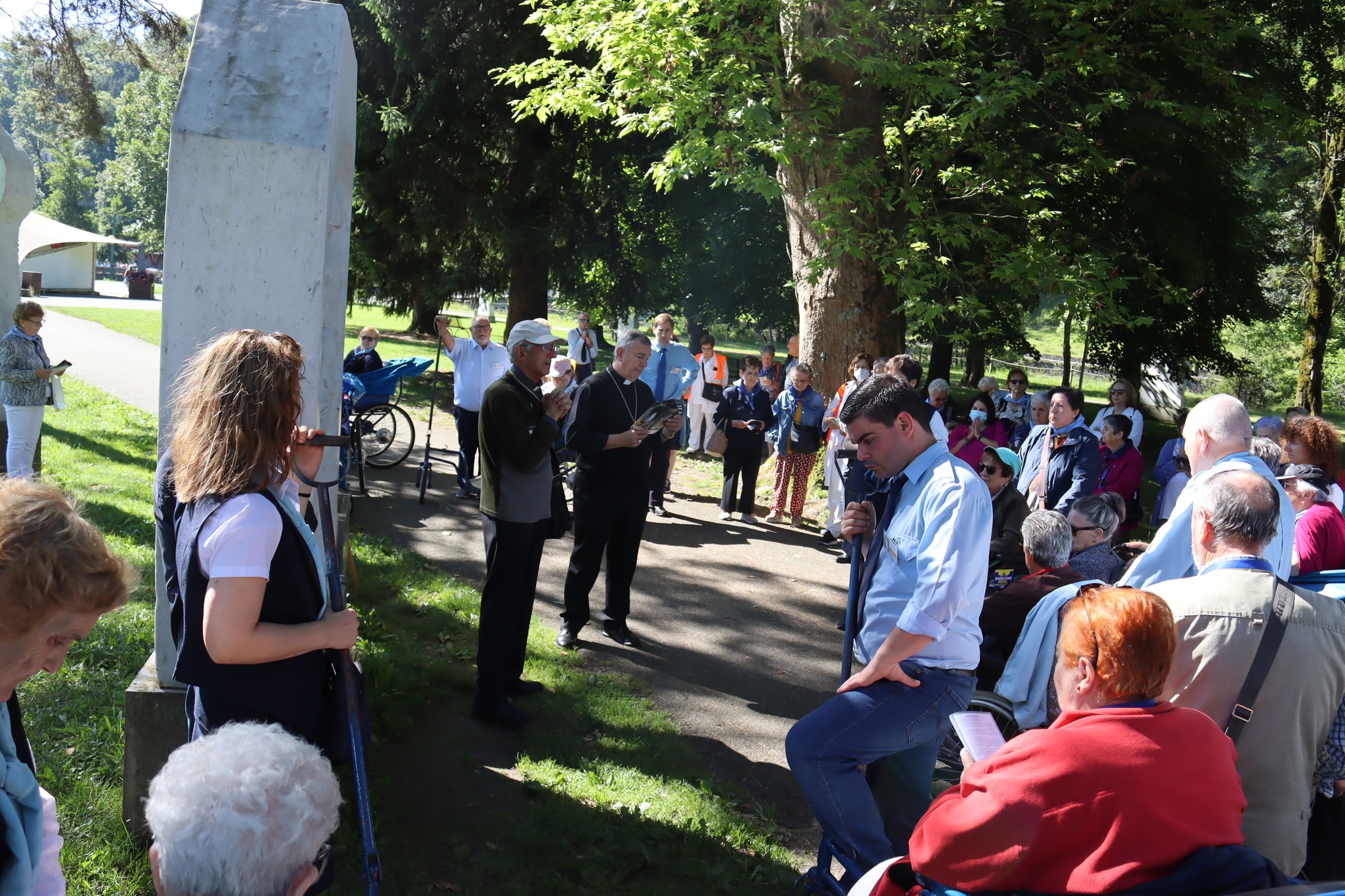 El obispo de Salamanca, Mons. José Luis Retana, que ha acompañado a los peregrinos durante las primeras tres jornadas, presidió la eucaristía de apertura del jueves, en la iglesia de Sta. Bernardita, junto a la gruta. En su homilía, se dirigió especialmente a los enfermos,”que habéis acudido a este lugar bendito para buscar consuelo y esperanza, que la Virgen santísima os haga sentir su presencia y reconforte vuestro corazón”.