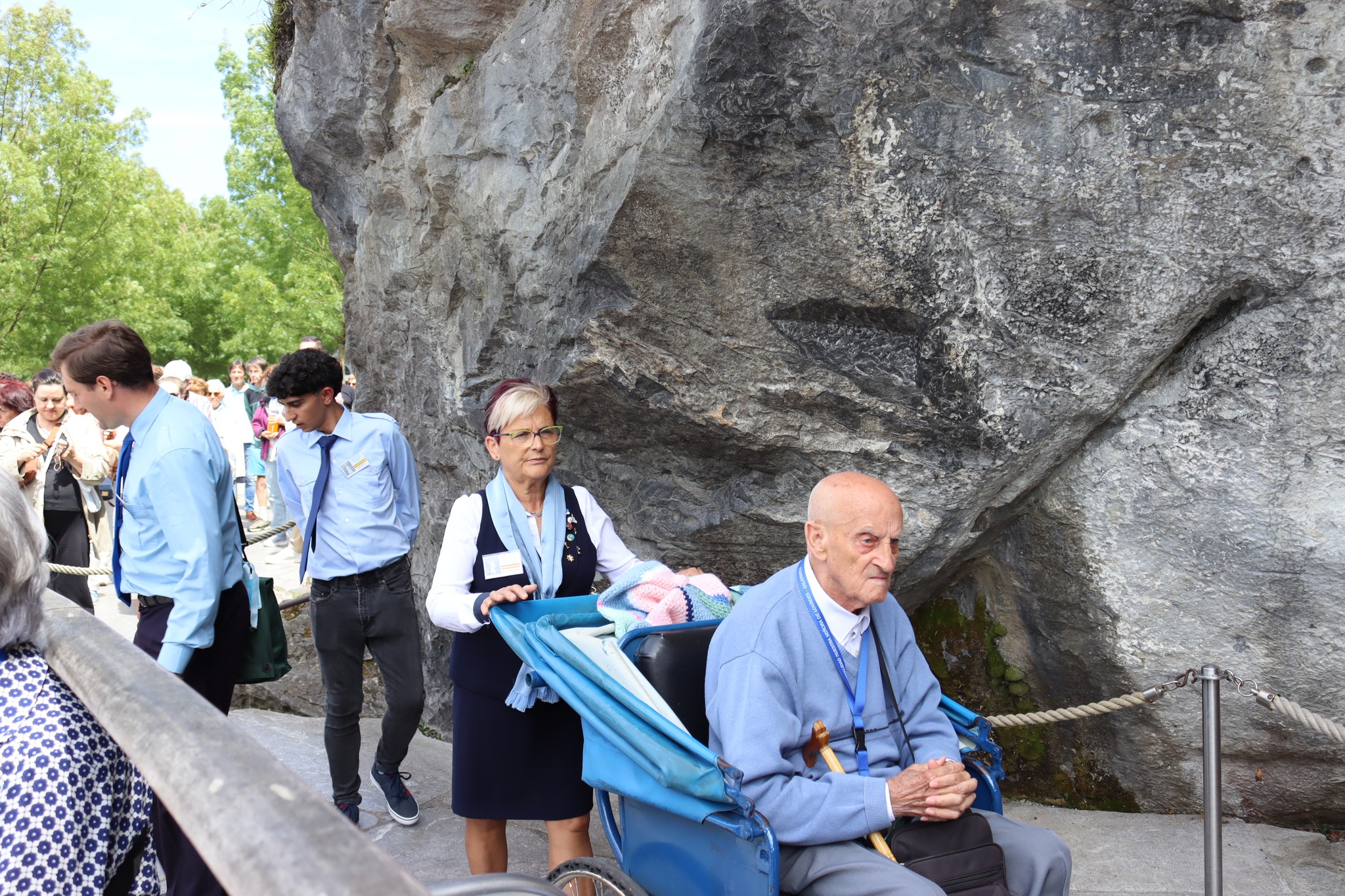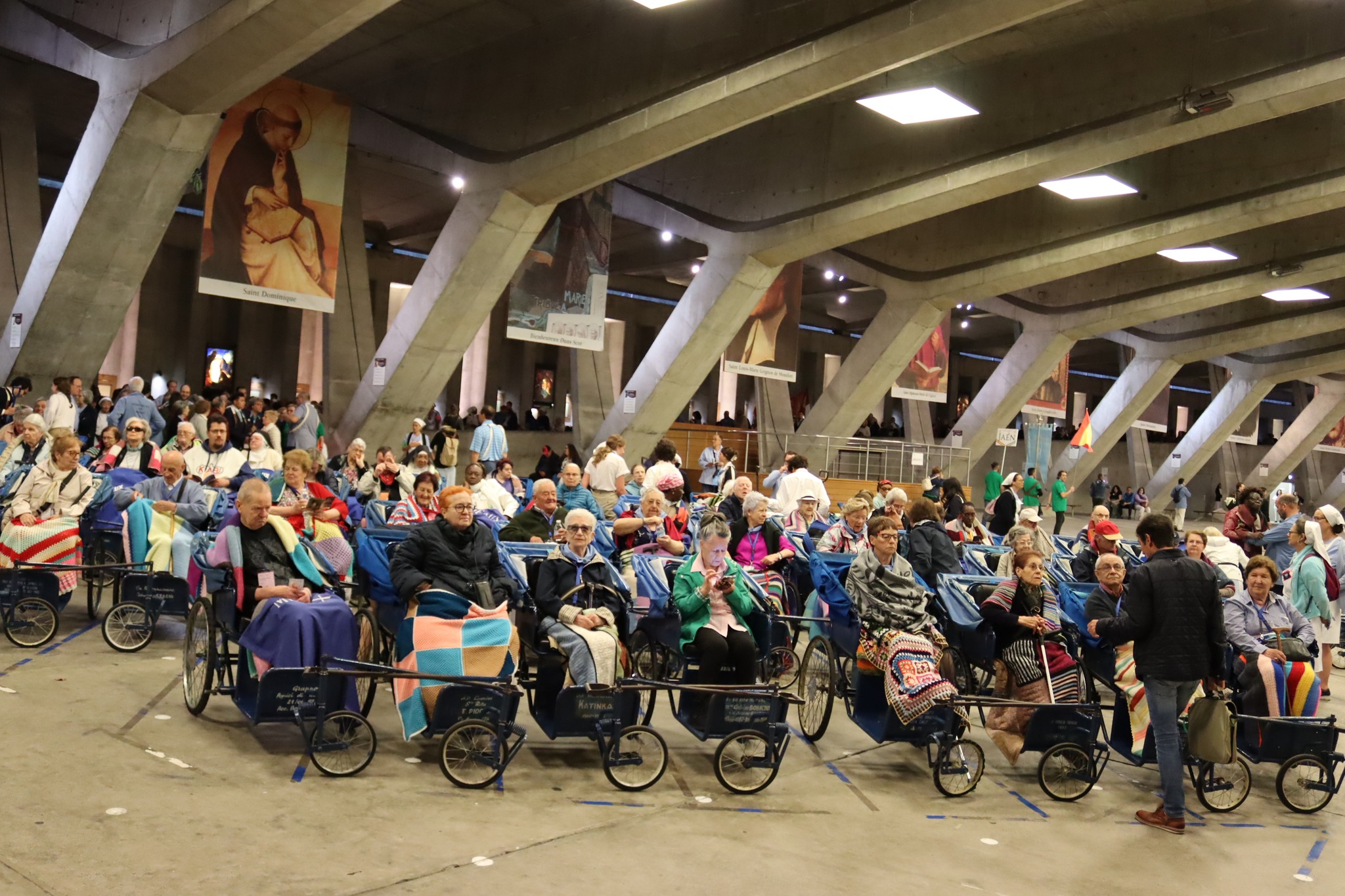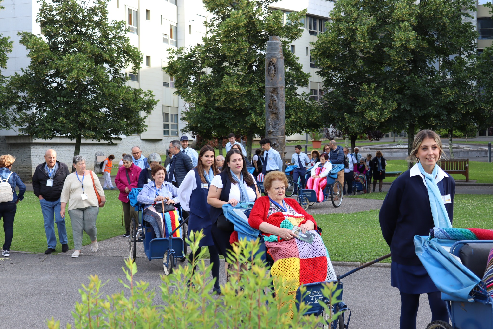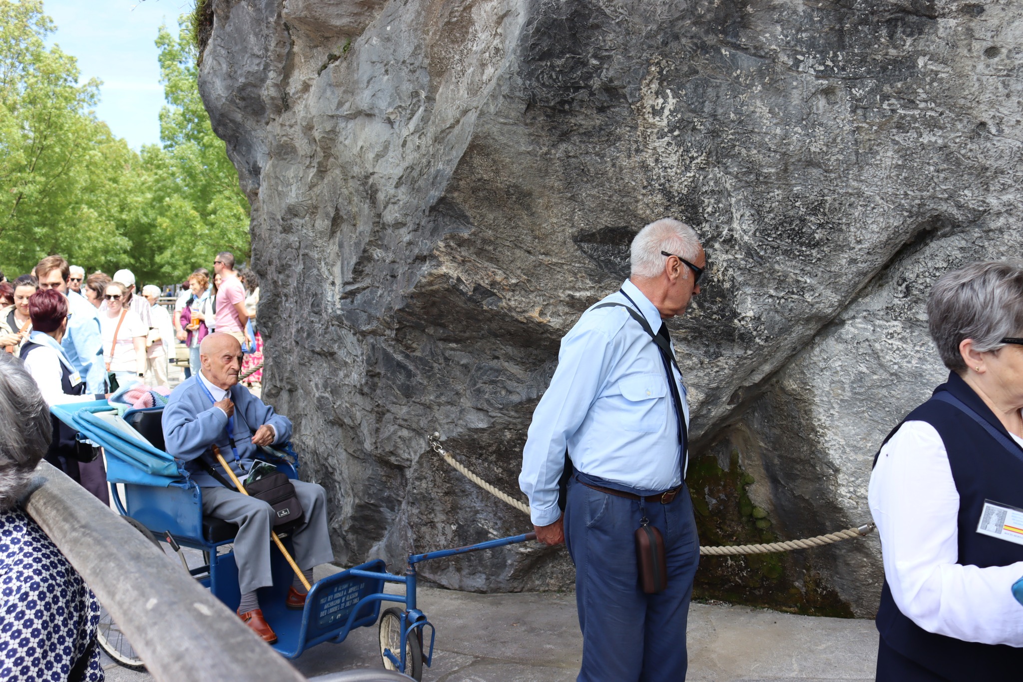 Aunque empezó como voluntaria en sus primeras peregrinaciones, ahora Lucía viene como enferma, “veo muy poquito”, y lo ha hecho acompañada de su esposo, “pero aquí no necesito más”. Ella recibe ayuda de las voluntarias, “te lo dan todo”. Para ir a la gruta, lo hizo en uno de los carritos que llevan los voluntarios. Y de las celebraciones más bonitas de esta semana en Lourdes destaca la procesión de antorchas, “que es muy bonito, porque ves a gente de todas las nacionalidades”. Ella también resalta la cercanía de la gente: “Todo el mundo te ofrece agua, una mano para ayudarte, ….”.