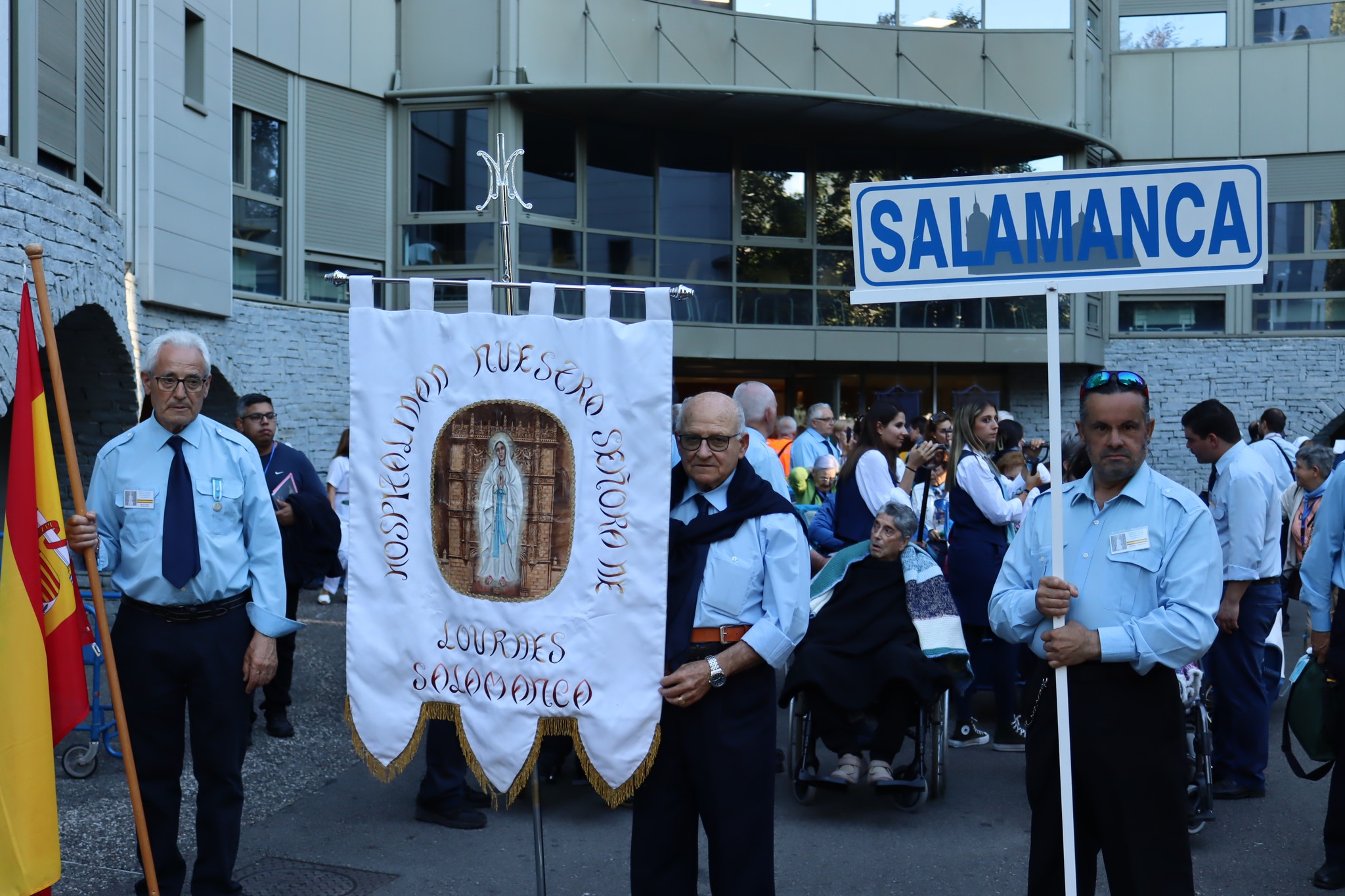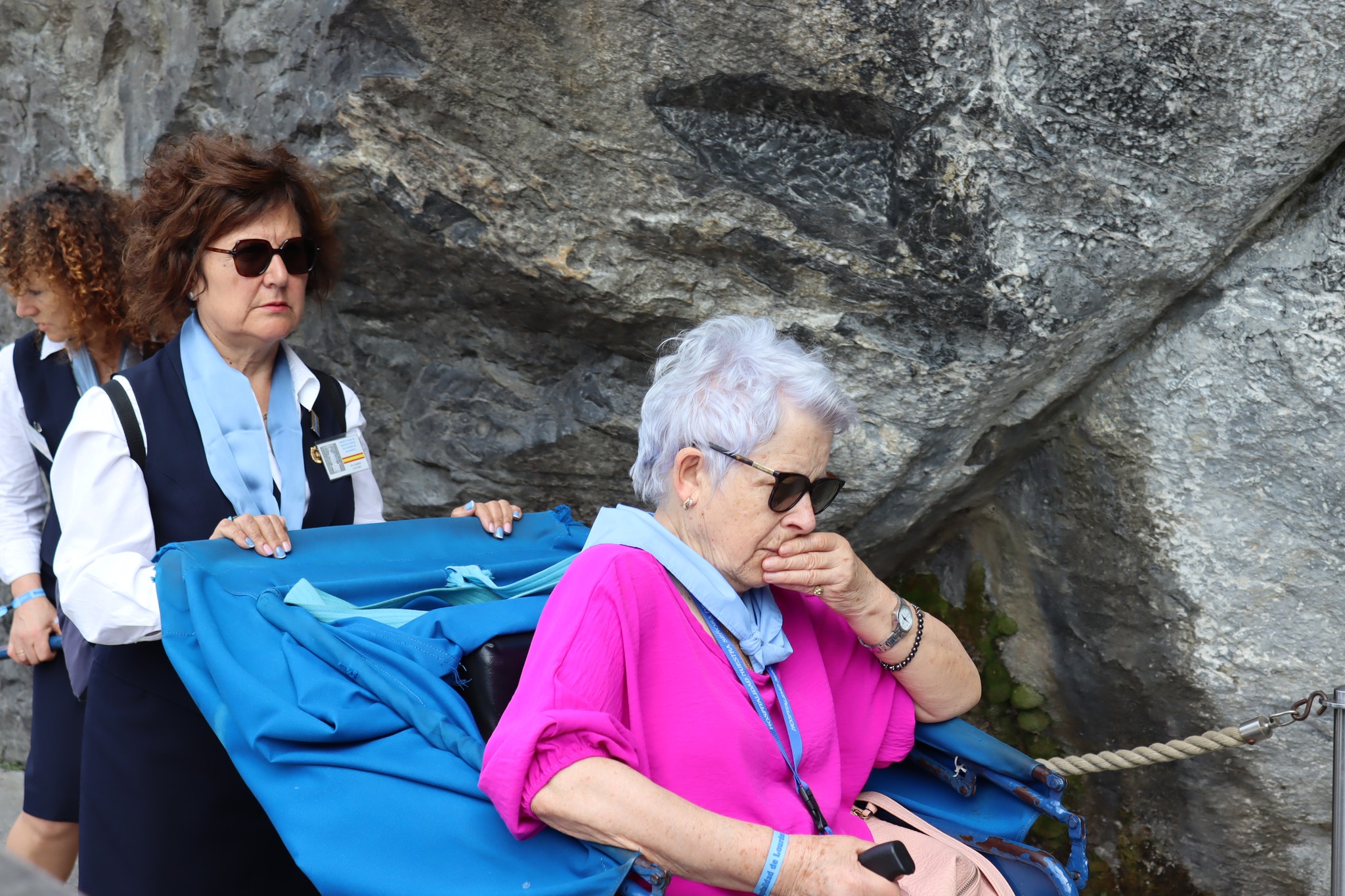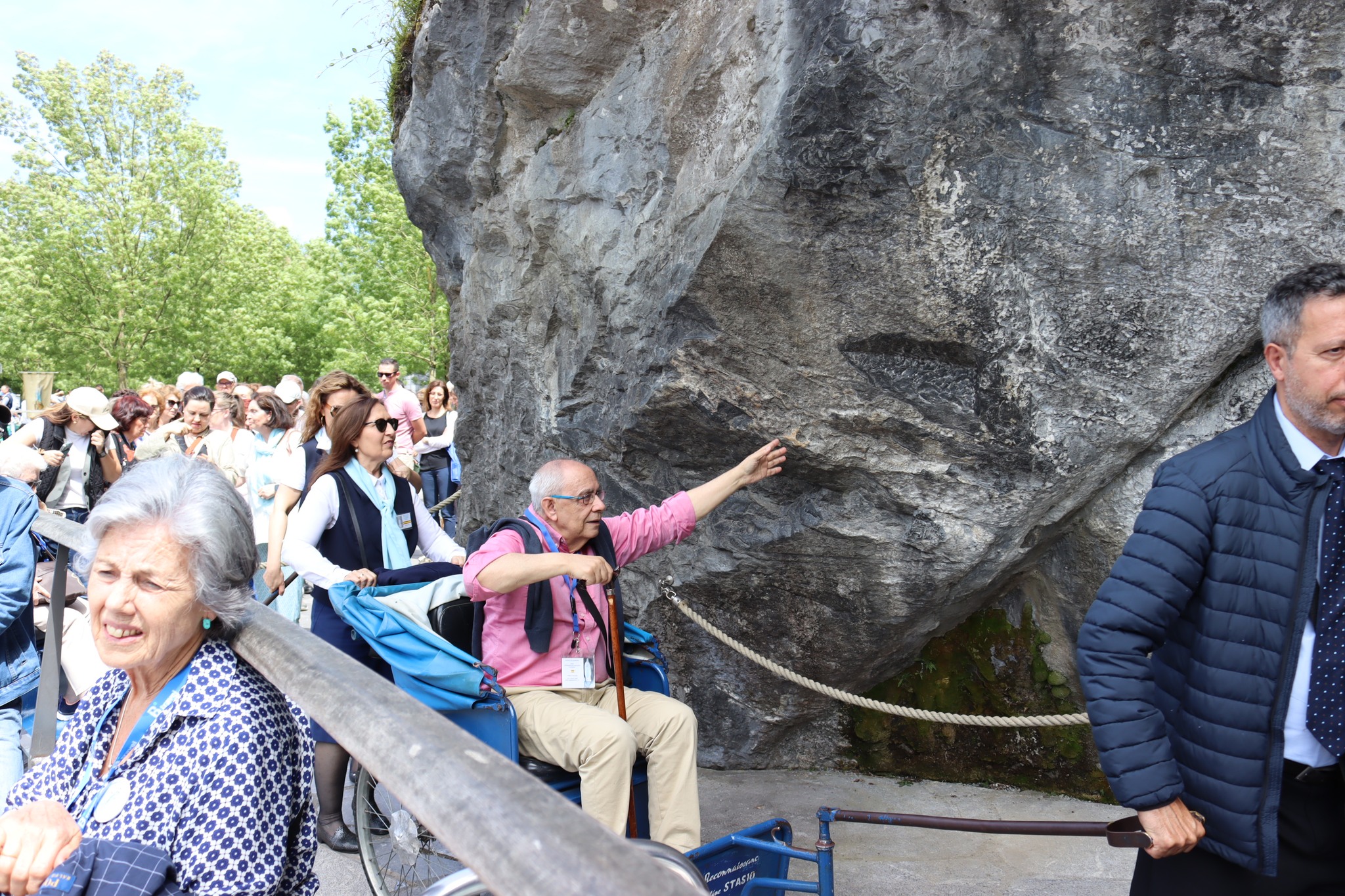 Aunque empezó como voluntaria en sus primeras peregrinaciones, ahora Lucía viene como enferma, “veo muy poquito”, y lo ha hecho acompañada de su esposo, “pero aquí no necesito más”. Ella recibe ayuda de las voluntarias, “te lo dan todo”. Para ir a la gruta, lo hizo en uno de los carritos que llevan los voluntarios. Y de las celebraciones más bonitas de esta semana en Lourdes destaca la procesión de antorchas, “que es muy bonito, porque ves a gente de todas las nacionalidades”. Ella también resalta la cercanía de la gente: “Todo el mundo te ofrece agua, una mano para ayudarte, ….”.