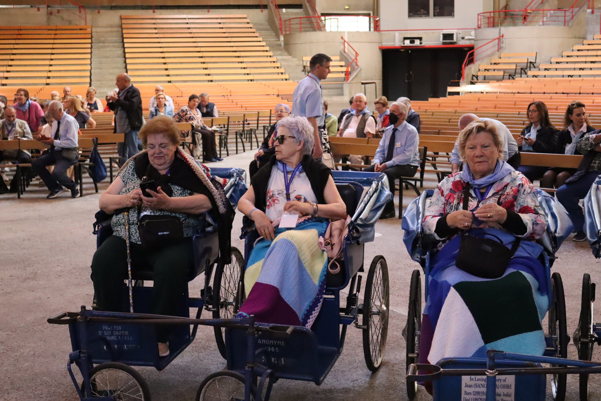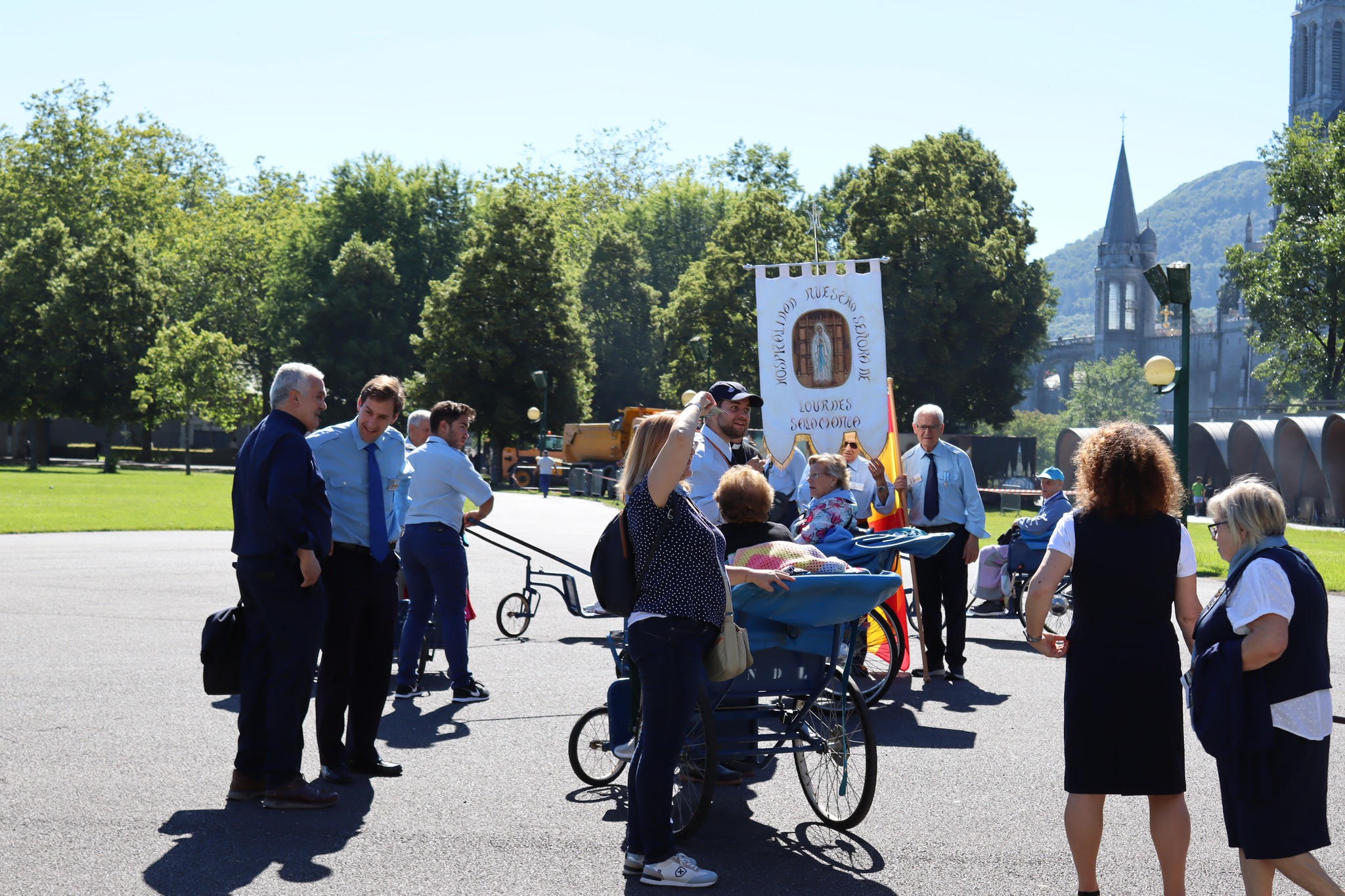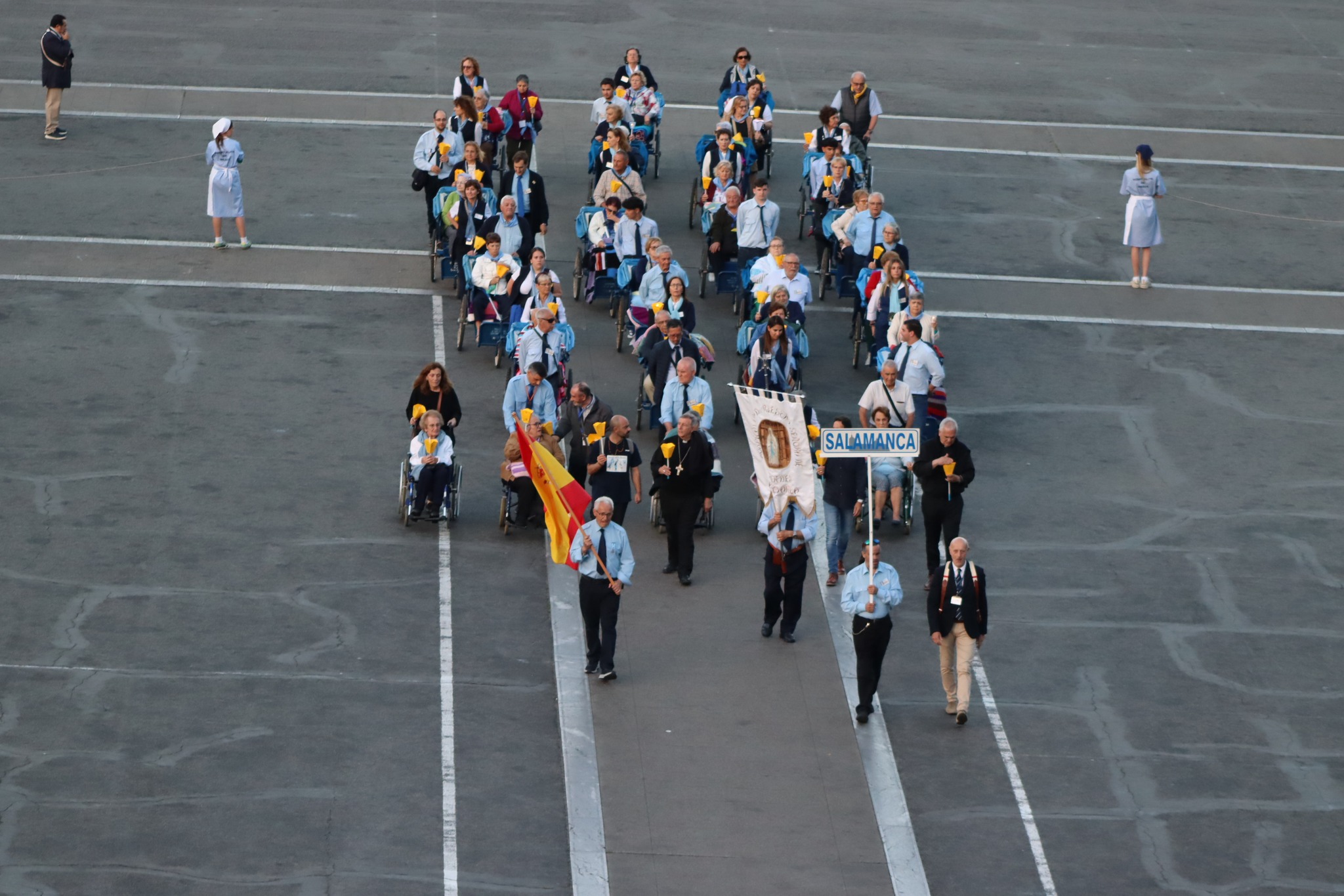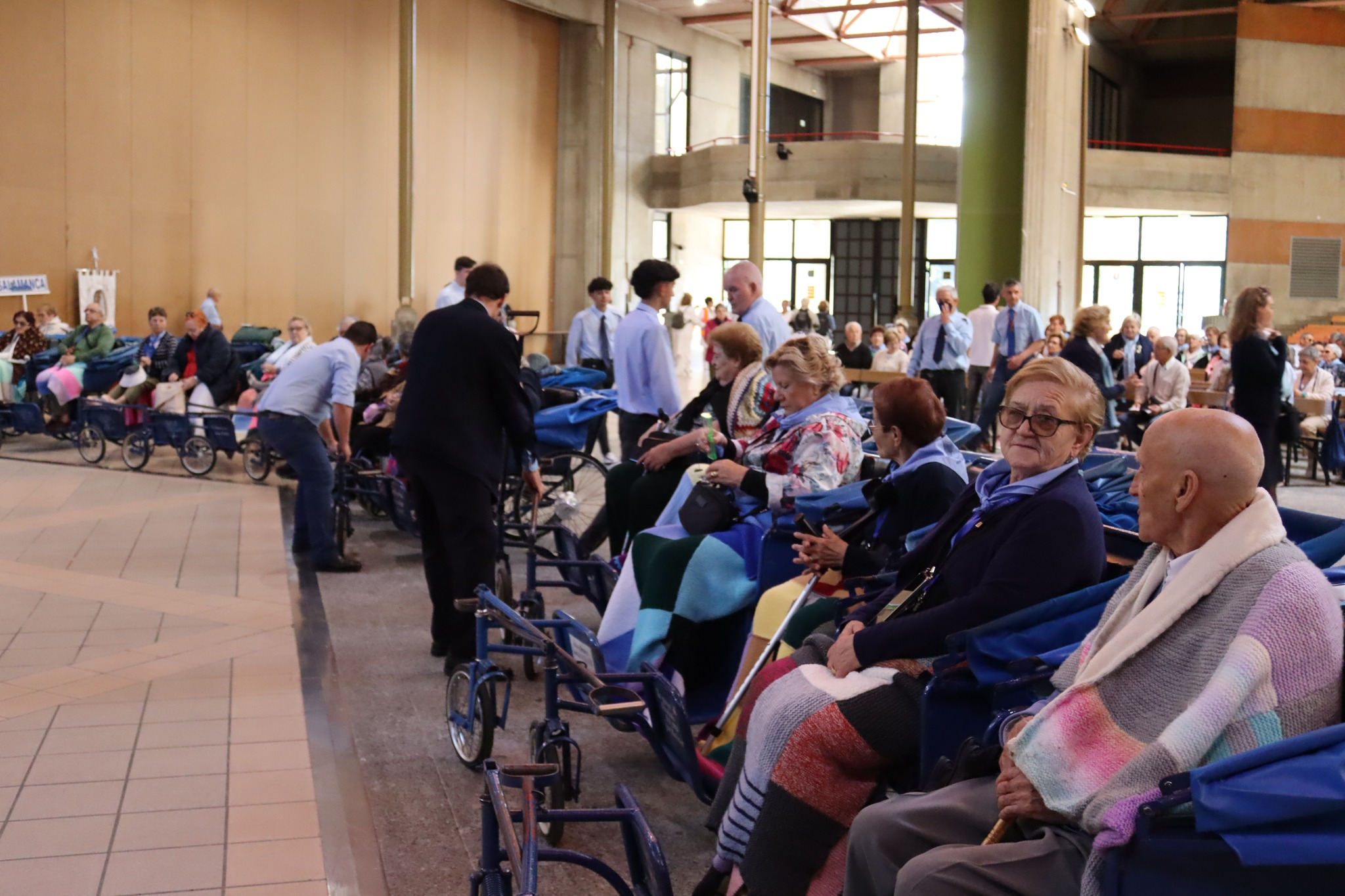 Aunque empezó como voluntaria en sus primeras peregrinaciones, ahora Lucía viene como enferma, “veo muy poquito”, y lo ha hecho acompañada de su esposo, “pero aquí no necesito más”. Ella recibe ayuda de las voluntarias, “te lo dan todo”. Para ir a la gruta, lo hizo en uno de los carritos que llevan los voluntarios. Y de las celebraciones más bonitas de esta semana en Lourdes destaca la procesión de antorchas, “que es muy bonito, porque ves a gente de todas las nacionalidades”. Ella también resalta la cercanía de la gente: “Todo el mundo te ofrece agua, una mano para ayudarte, ….”.