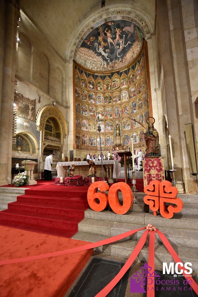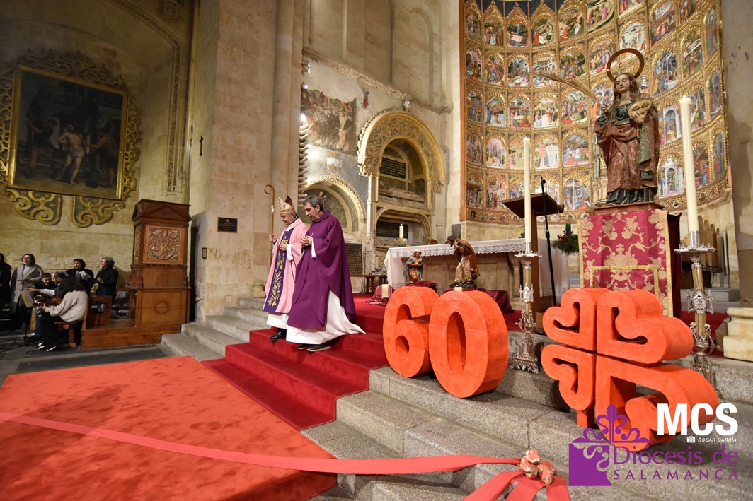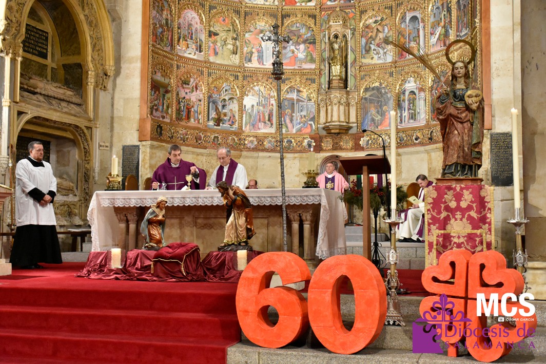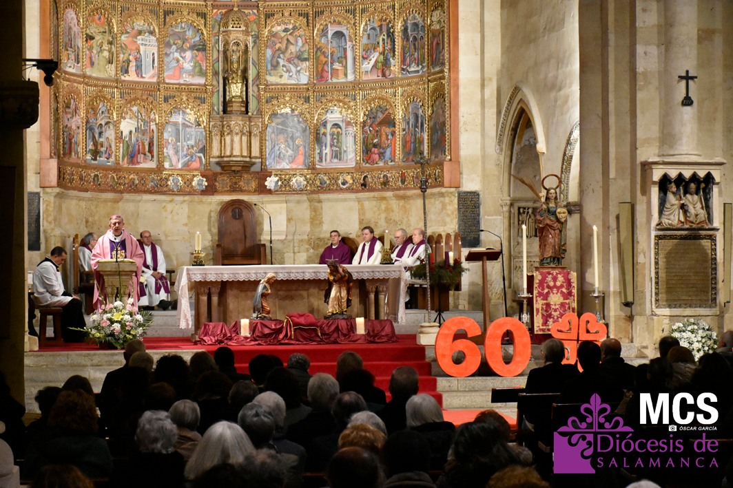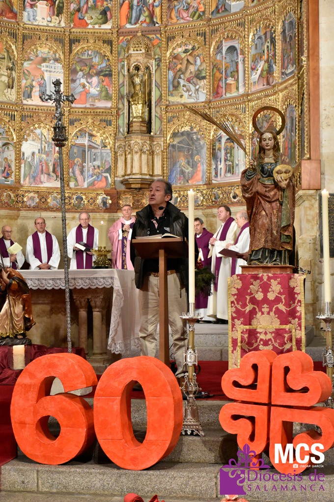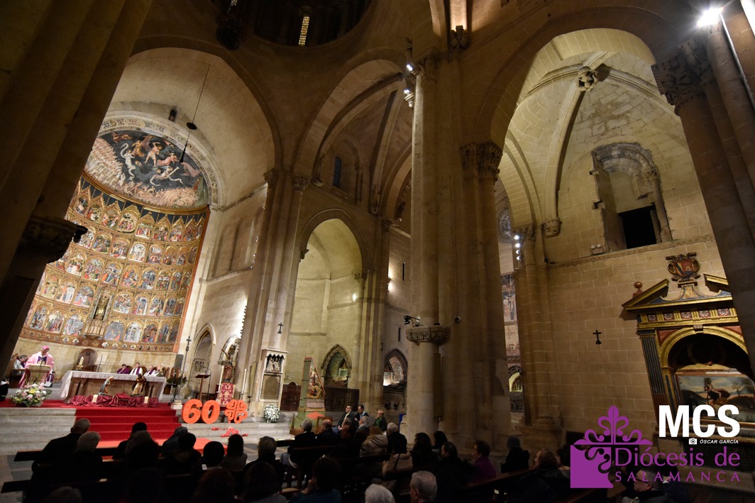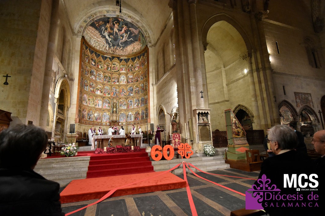 Cáritas diocesana conmemoró sus 60 años de compromiso con los más vulnerables de la Diócesis de Salamanca con una emotiva eucaristía de acción de gracias el pasado sábado, 16 de diciembre, en la Catedral Vieja que fue presidida por el obispo Mons. José Luis Retana. Participantes, voluntarios y trabajadores de la entidad, socios, donantes y entidades colaboradoras habituales se unieron para cerrar los actos conmemorativas.