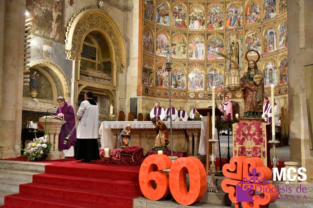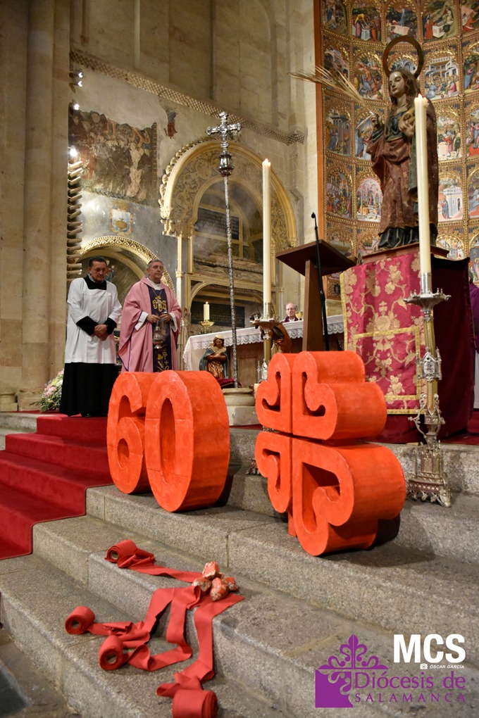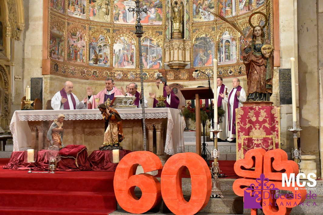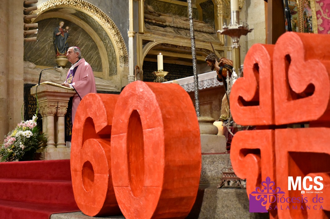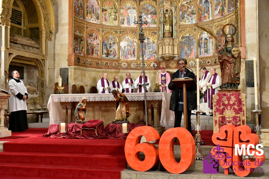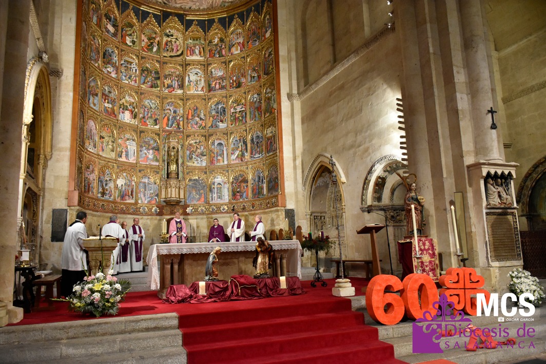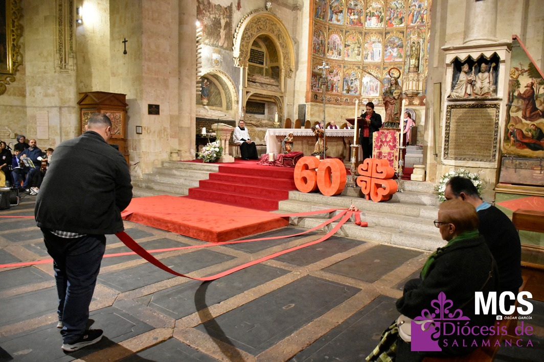 Cáritas diocesana conmemoró sus 60 años de compromiso con los más vulnerables de la Diócesis de Salamanca con una emotiva eucaristía de acción de gracias el pasado sábado, 16 de diciembre, en la Catedral Vieja que fue presidida por el obispo Mons. José Luis Retana. Participantes, voluntarios y trabajadores de la entidad, socios, donantes y entidades colaboradoras habituales se unieron para cerrar los actos conmemorativas.
