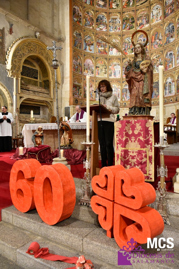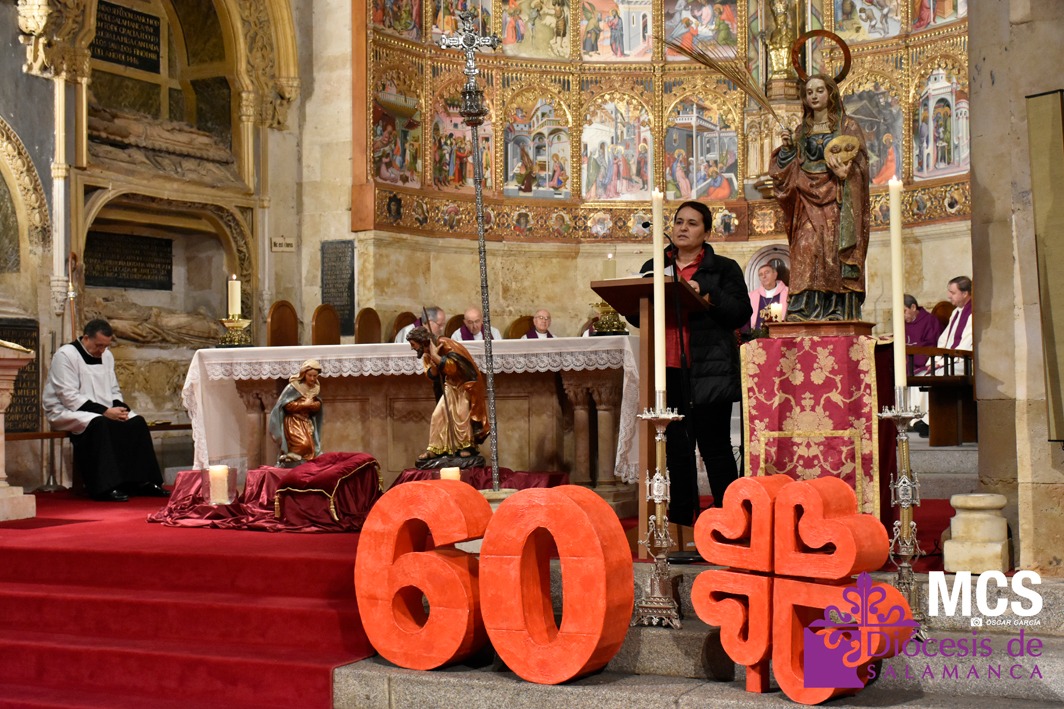 Al inicio de la celebración, la directora de Cáritas diocesana de Salamanca, Carmen Calzada, expresó su gratitud al Señor por las seis décadas de “servicio a los hermanos más vulnerables y necesitados”. Destacó la entrega de esta organización sus esfuerzos, ilusiones, y la responsabilidad con la que abordan las dificultades que encuentran.