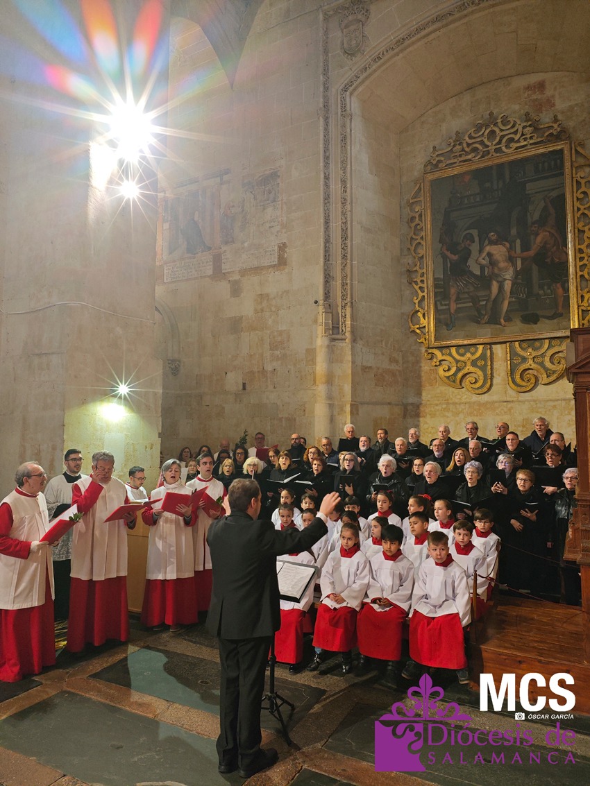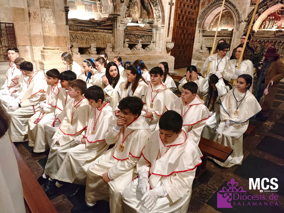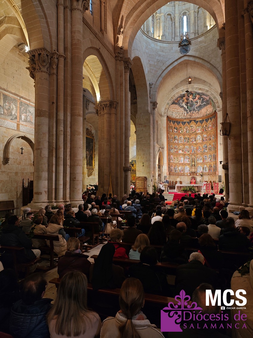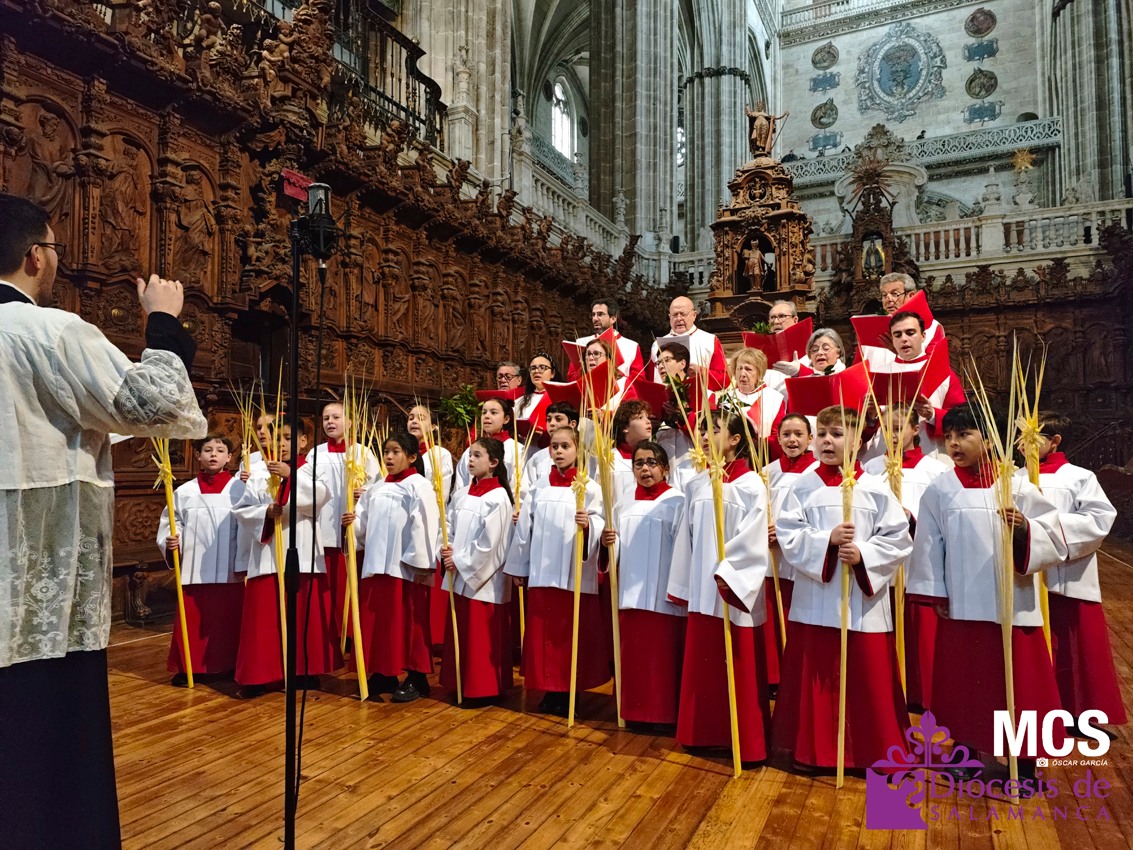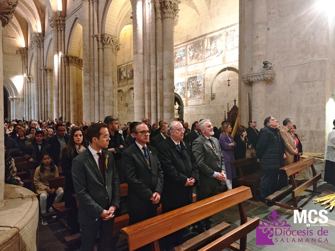 La celebración del Domingo de Ramos comenzó en la Catedral Nueva de Salamanca con la bendición de las palmas por parte del obispo, Mons. José Luis Retana, y tras una sencilla procesión hasta la Catedral Vieja, comenzó la eucaristía.