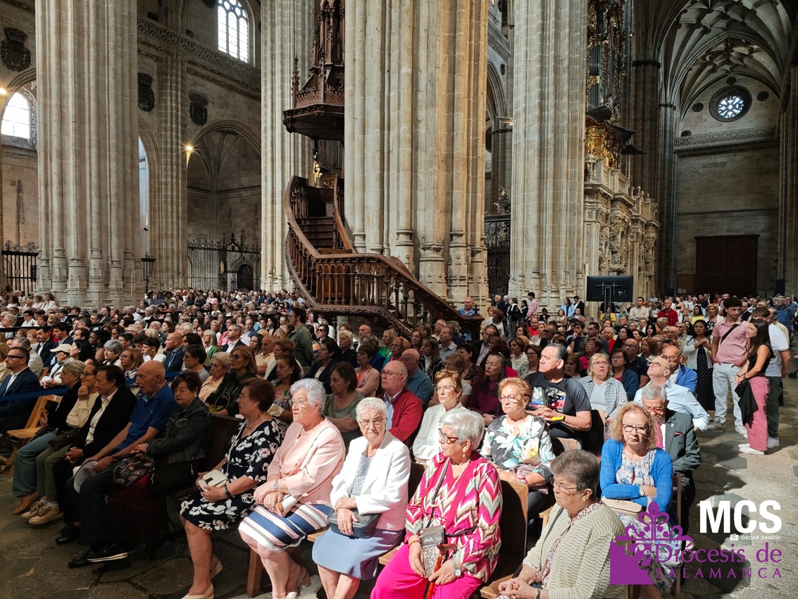 La celebración concluyó con la bendición final y el canto del Himno a la Virgen de la Vega, en un ambiente de devoción y alegría compartida. Mons. Retana despidió la eucaristía con una invocación: “Virgen de la Vega, Madre de la Esperanza y Abogada nuestra, ruega por todos los salmantinos”.