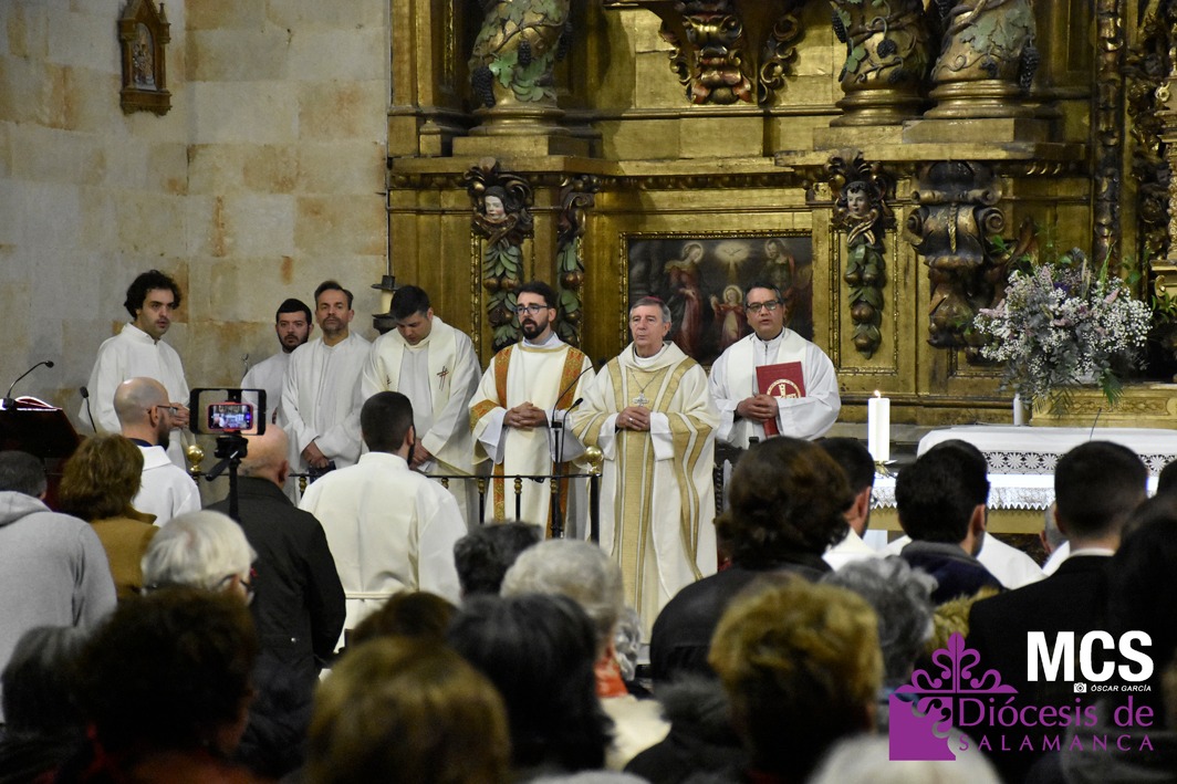 La celebración tuvo lugar en la parroquia de San Silvestre de Villares de la Reina, donde el seminarista, Mario Cabrera, realiza tareas como catequista. En su homilía el obispo se dirigió a ellos en varios momentos, y agradeció la presencia de sus familiares. “Hoy la Iglesia, por medio del ministerio del obispo, os hace una nueva llamada admitiéndoos como candidatos a recibir a su tiempo las sagradas órdenes del diaconado permanente y del presbiterado”.