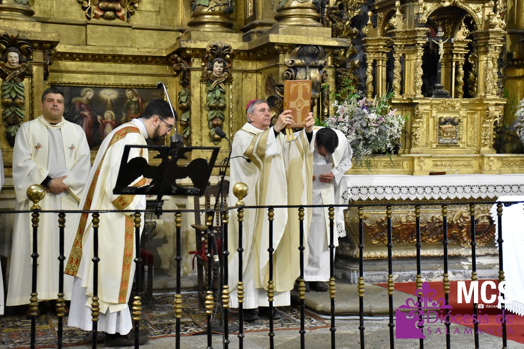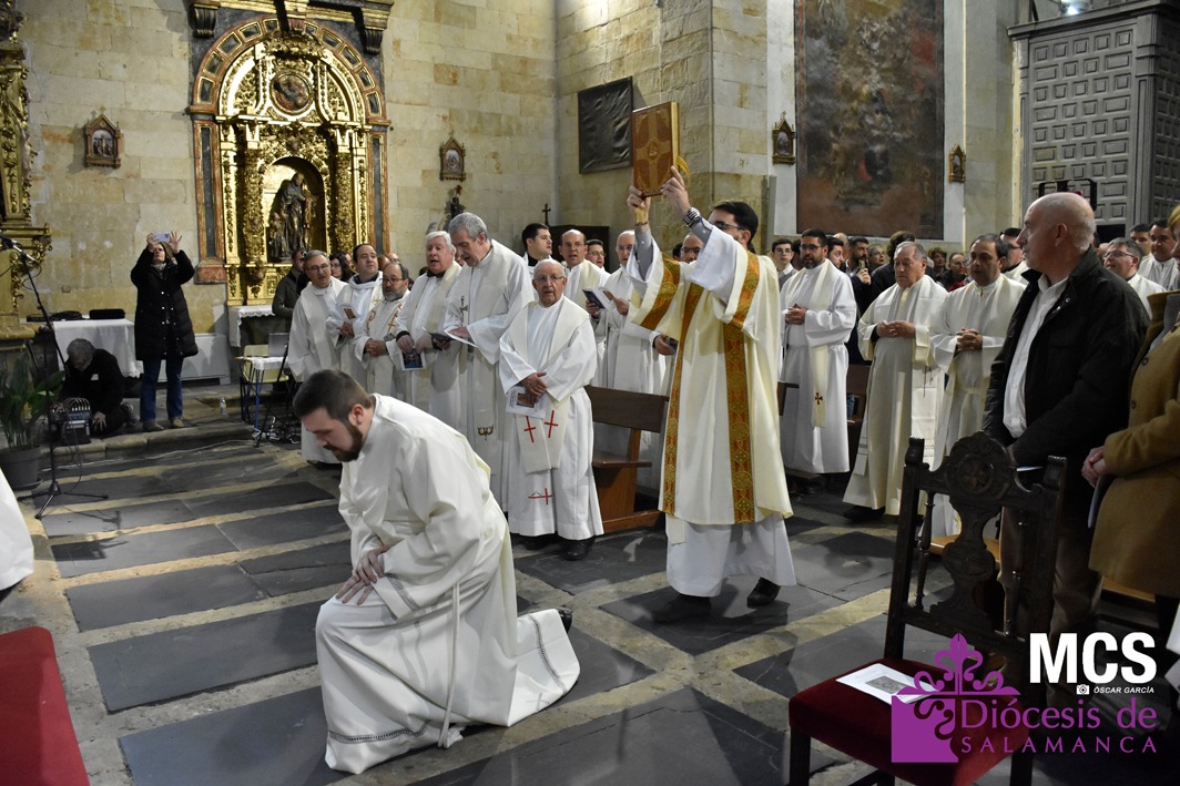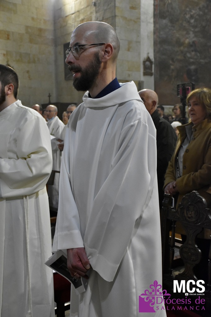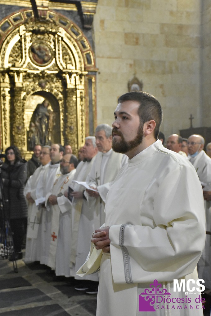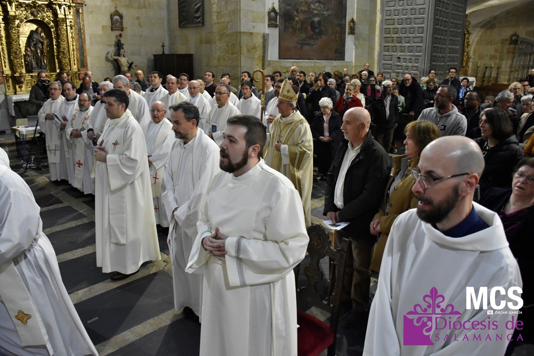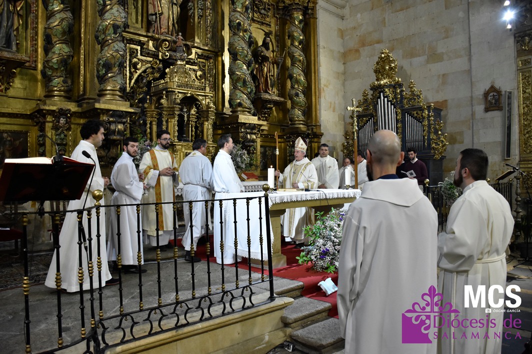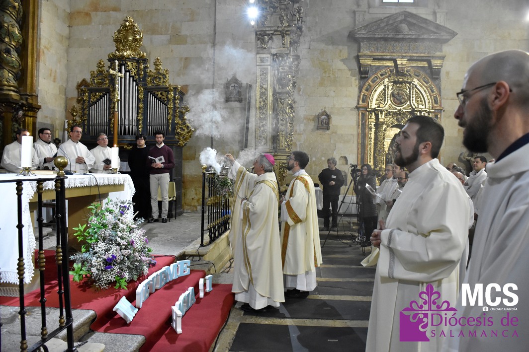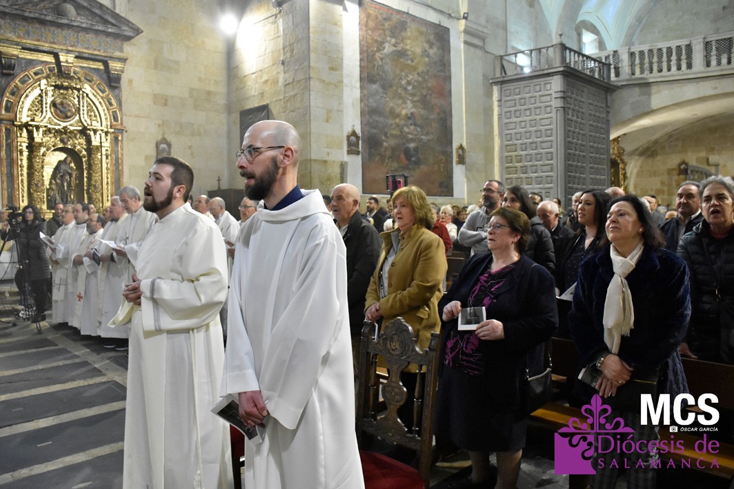 Antes de concluir, el obispo de Salamanca agradeció la respuesta generosa de estos dos candidatos, “ambos han sido escogidos desde siempre y a lo largo de su vida, y en su historia personal, han hecho suyo este deseo de un Dios que les quiere para servir a los demás“.