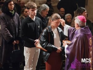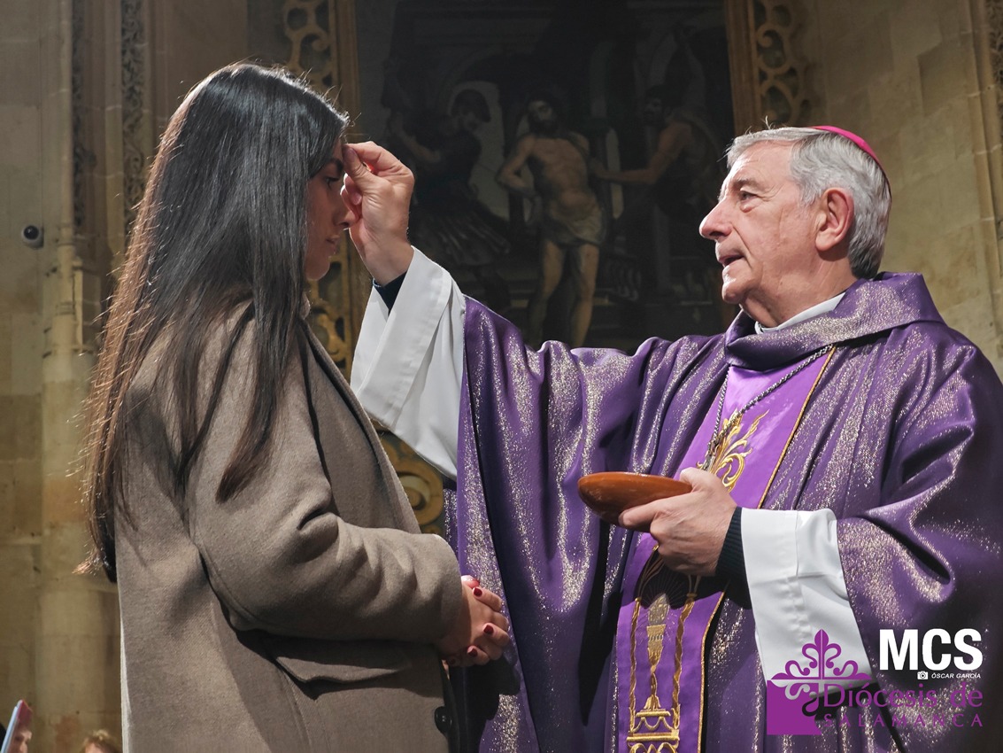 Durante este día, los fieles de la Diócesis de Salamanca recibieron la ceniza sobre sus cabezas, obtenida al quemar las palmas bendecidas en el Domingo de Ramos del año anterior. Un gesto que recuerda «nuestro deseo de convertirnos, nuestro deseo de cambiar de vida, de iniciar un nuevo camino desde la certeza de que el Señor va a acompañarnos y va a recorrerle con nosotros». Así lo expresó el obispo de Salamanca, Mons. José Luis Retana, al comienzo de su homilía en la eucaristía que presidió en la Catedral Vieja, en la que interpeló a los fieles, recordando que no se trata de repetir otra Cuaresma más, «sin que nada cambie en nuestra vida», sino «de ponernos al trabajo de la ascesis que puede cambiar nuestro corazón».