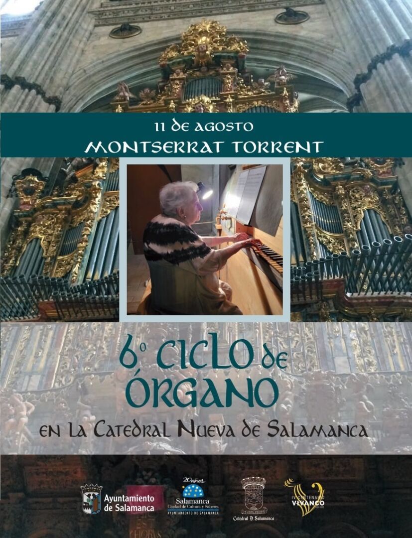 Montserrat Torrent i Serra, la organista más longeva de España, será la encargada de clausurar la sexta edición del Ciclo de Órgano que organiza el Ayuntamiento de Salamanca en colaboración con el Cabildo Catedral de Salamanca, con un concierto que tendrá lugar el próximo jueves, 11 de agosto, a las 20:00 horas, en la Catedral Nueva.