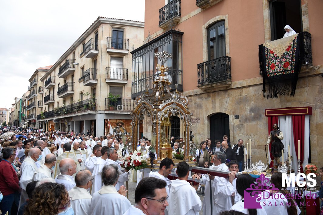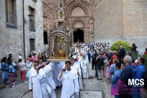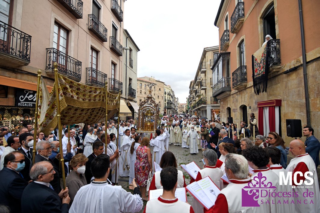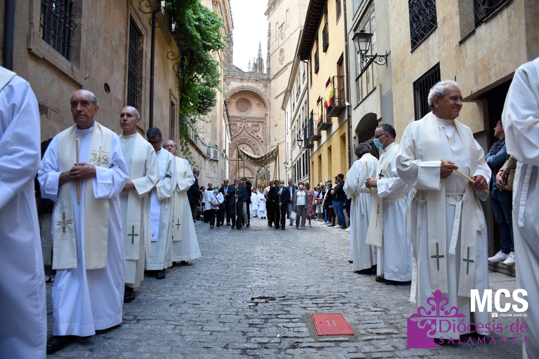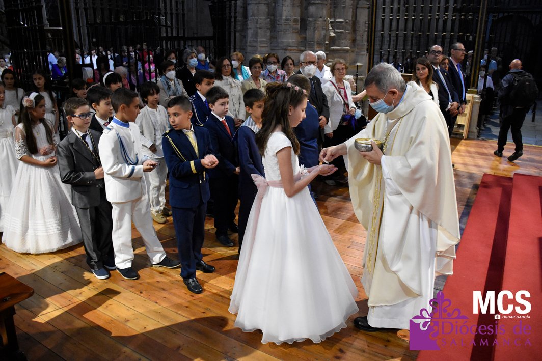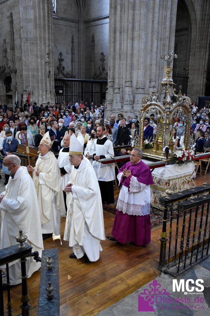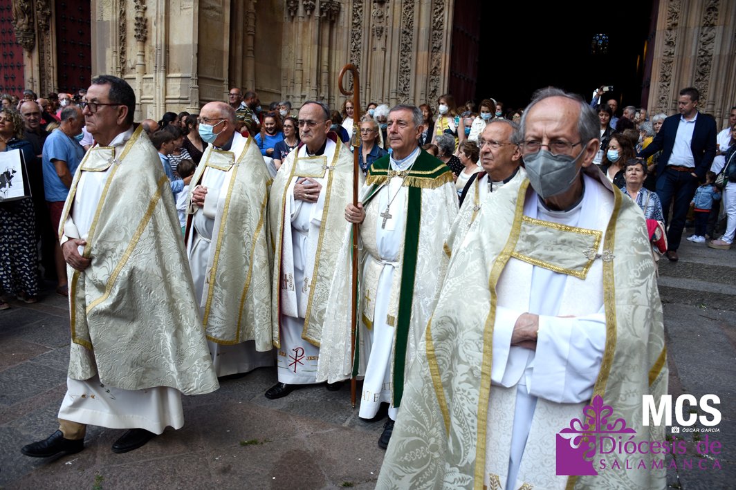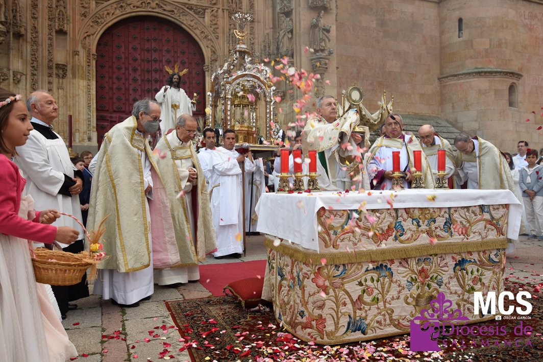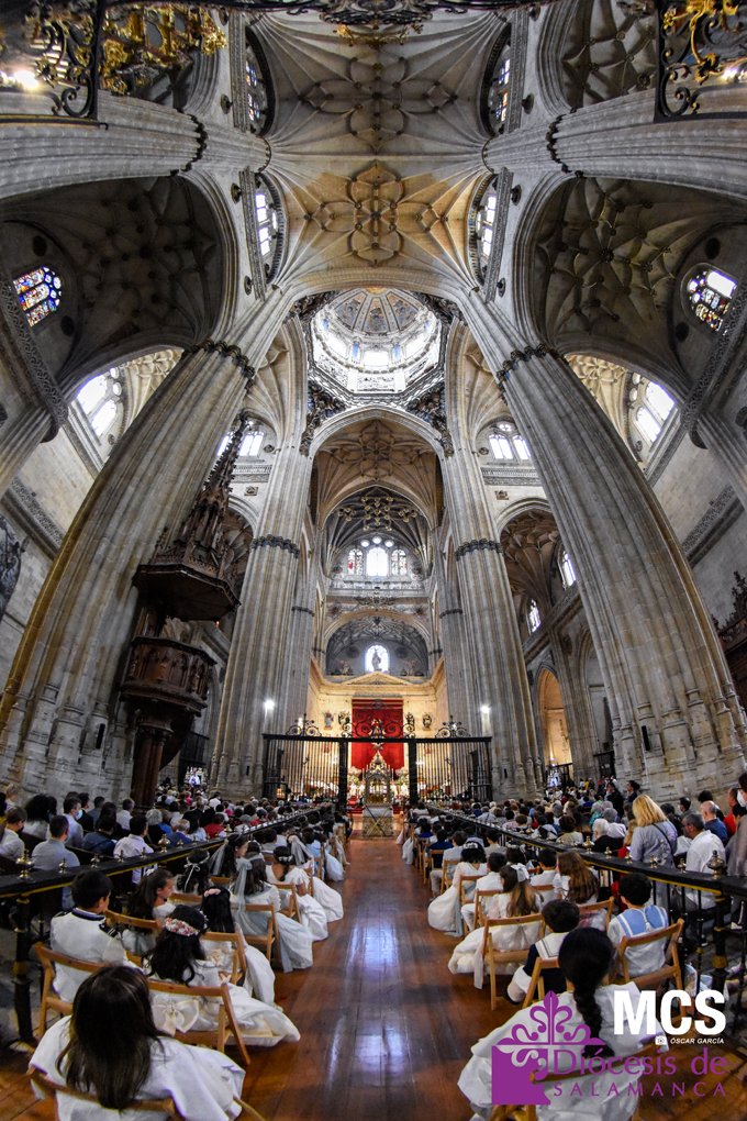 El Corpus Christi volvió a celebrarse en Salamanca con la misma afluencia anterior a la pandemia, con una Catedral Nueva llena de fieles y cerca de un centenar de niños de primera comunión que también participaron en la posterior procesión por las calles del centro de la ciudad.