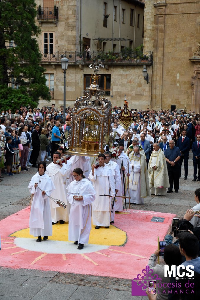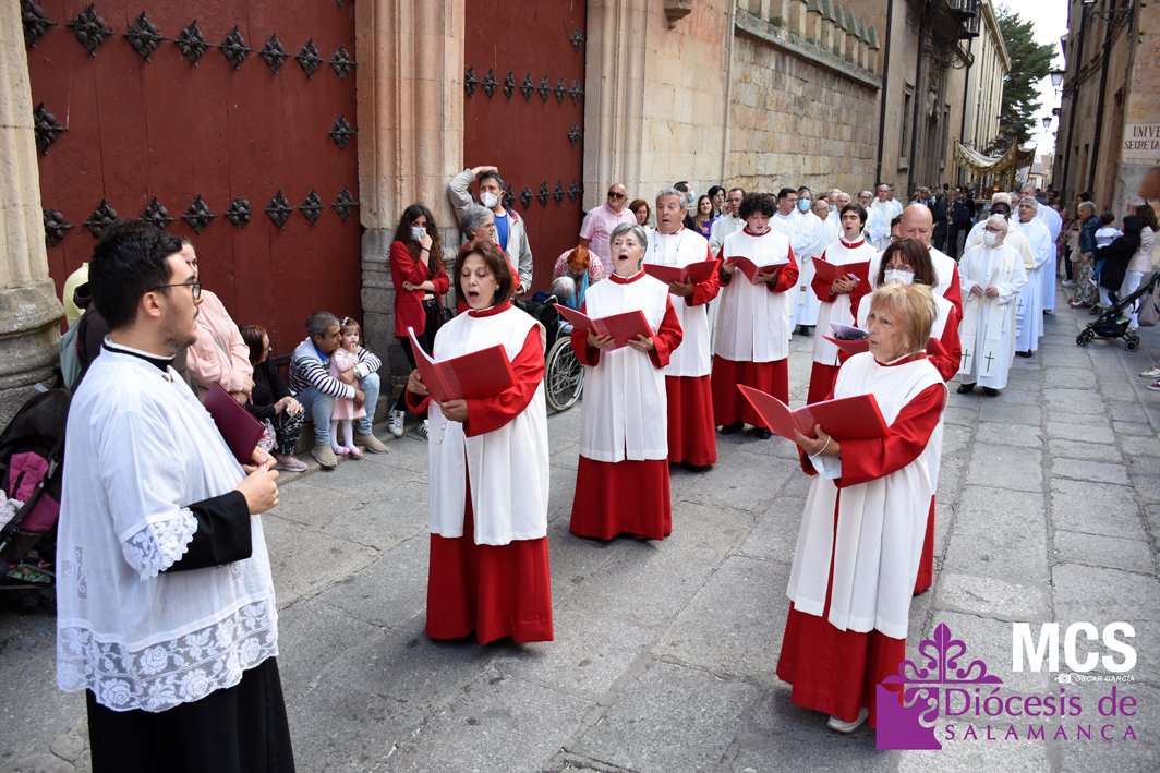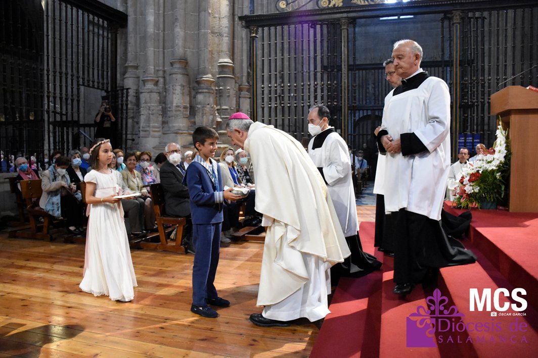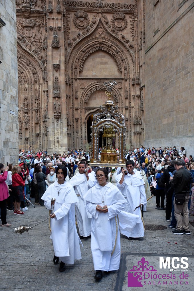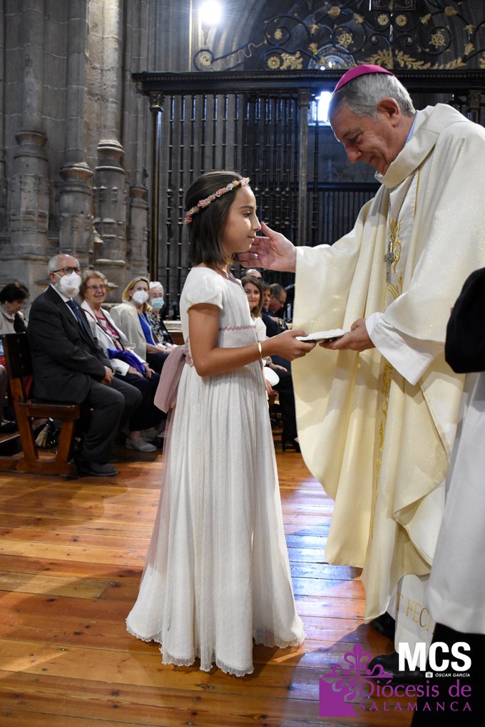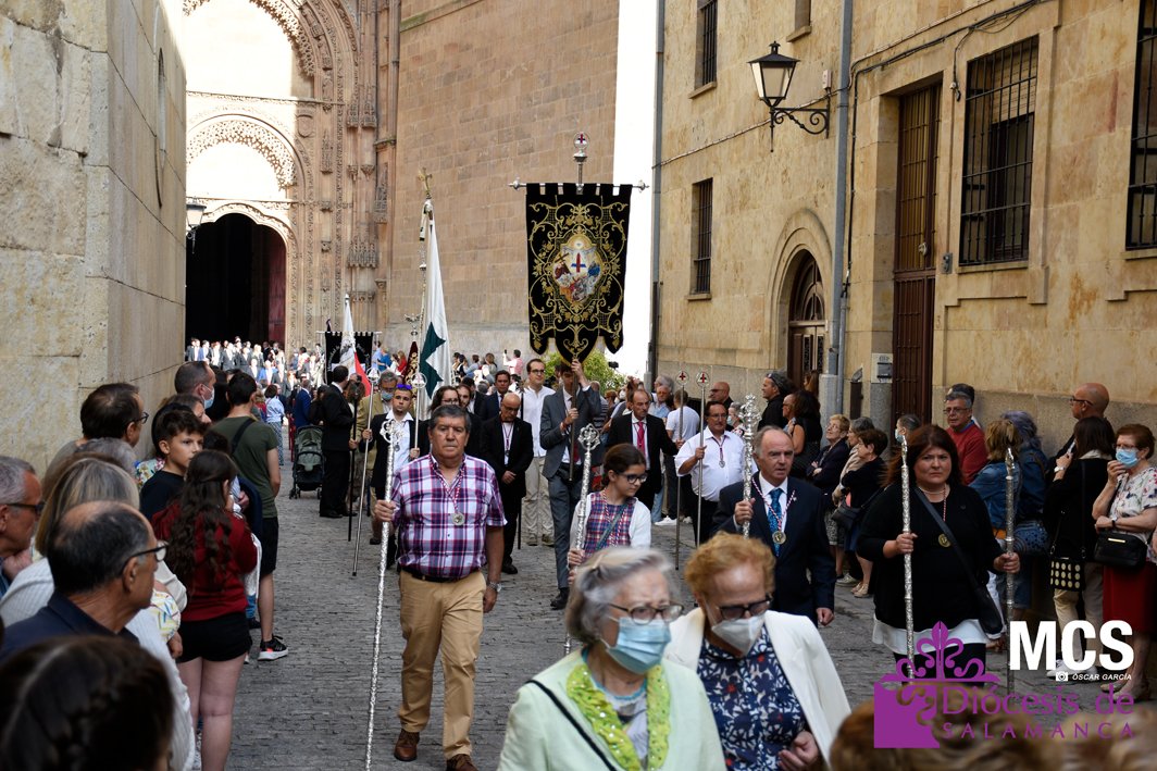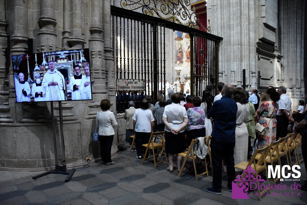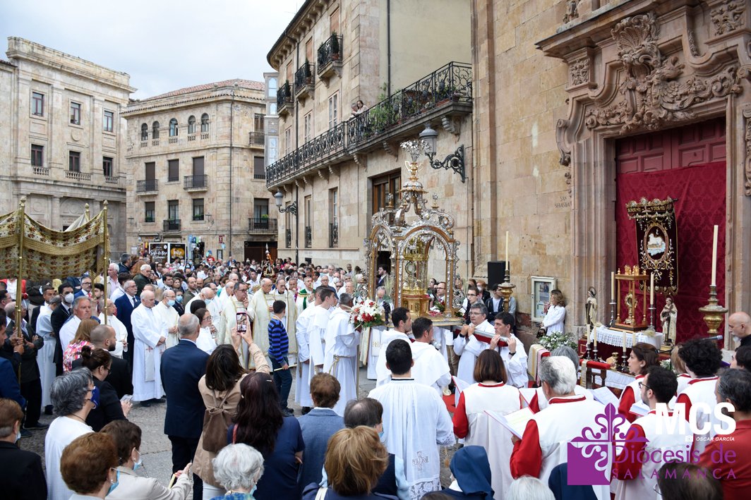 El Corpus Christi volvió a celebrarse en Salamanca con la misma afluencia anterior a la pandemia, con una Catedral Nueva llena de fieles y cerca de un centenar de niños de primera comunión que también participaron en la posterior procesión por las calles del centro de la ciudad.