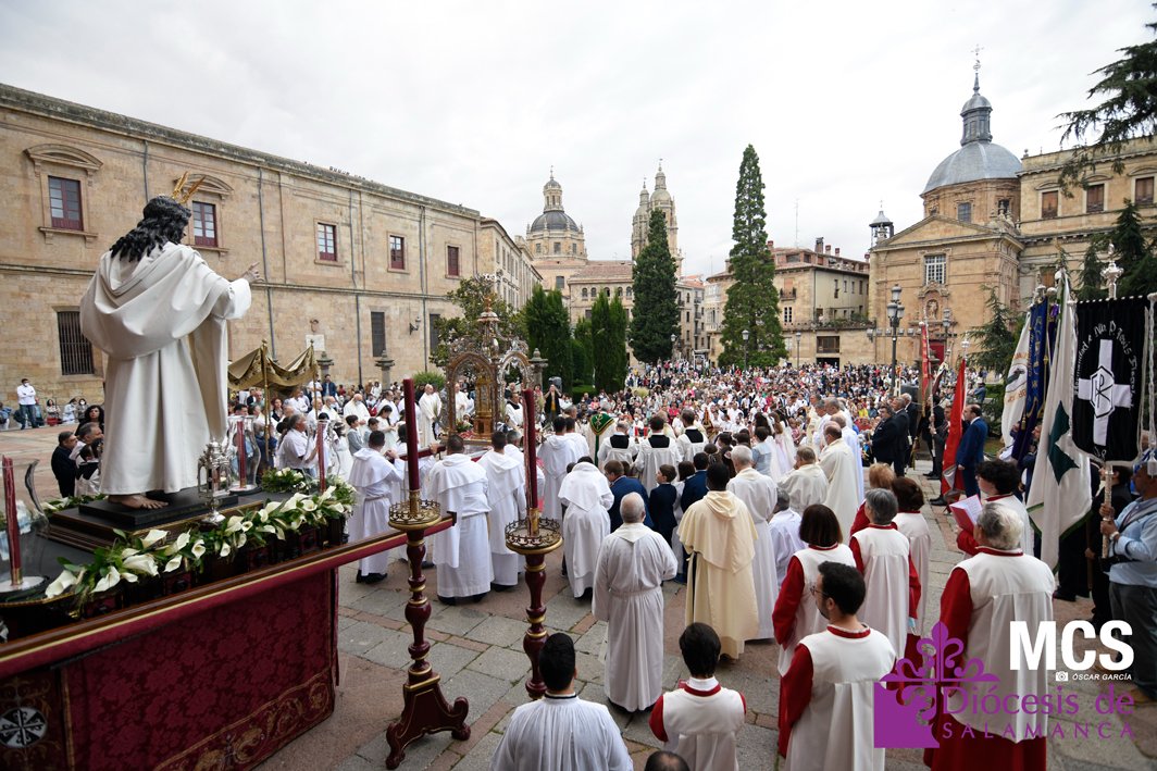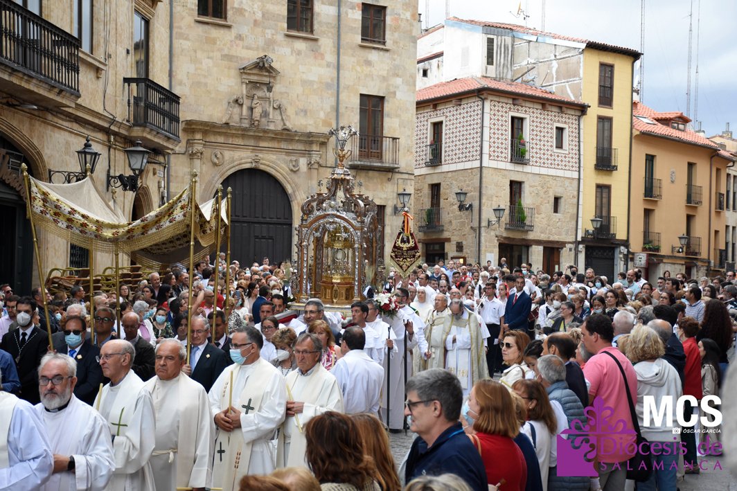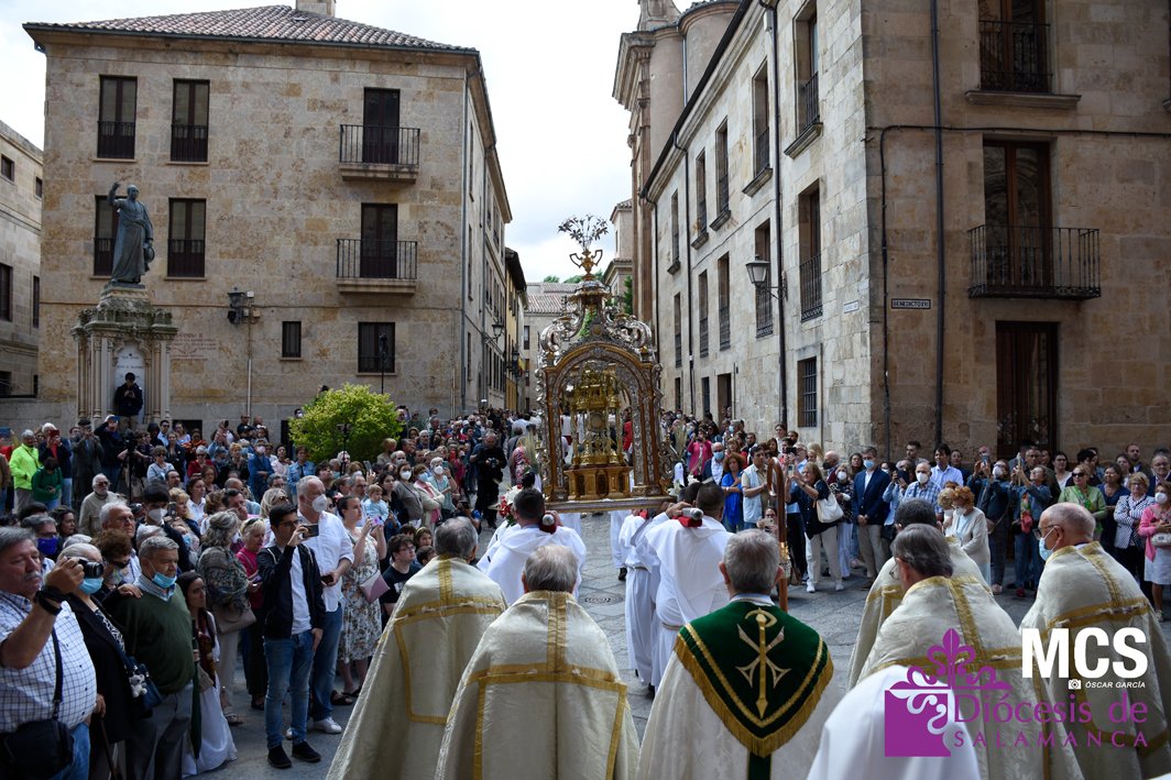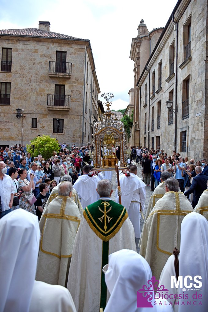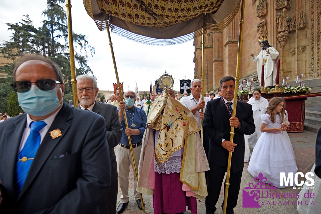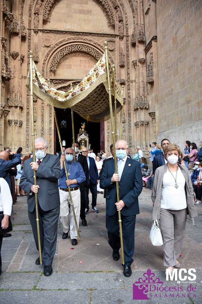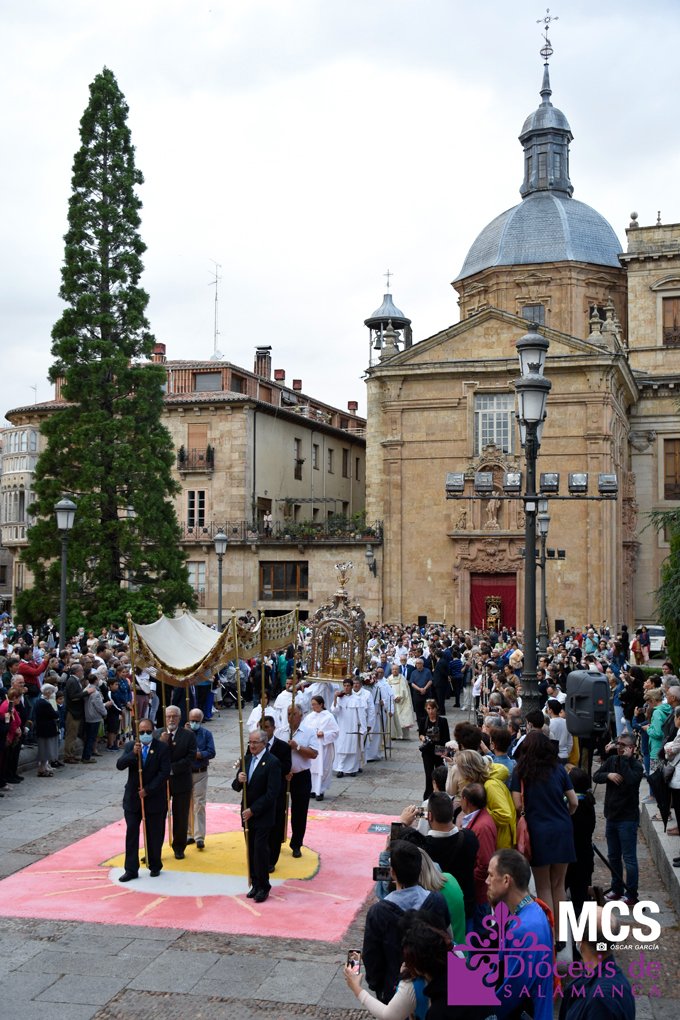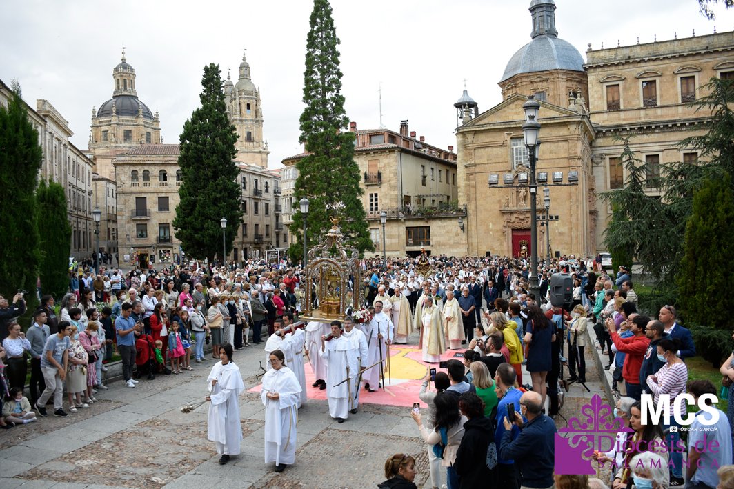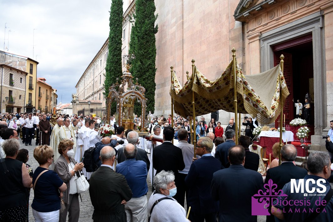 El Corpus Christi volvió a celebrarse en Salamanca con la misma afluencia anterior a la pandemia, con una Catedral Nueva llena de fieles y cerca de un centenar de niños de primera comunión que también participaron en la posterior procesión por las calles del centro de la ciudad.