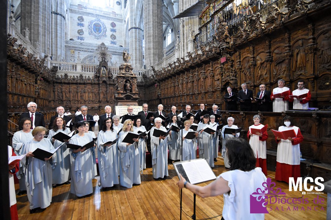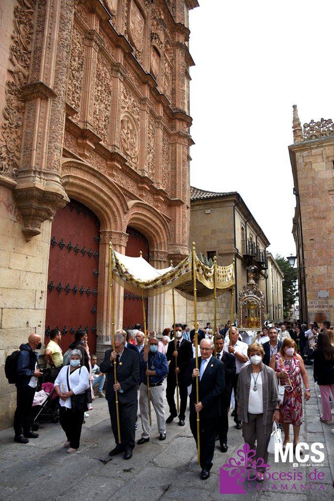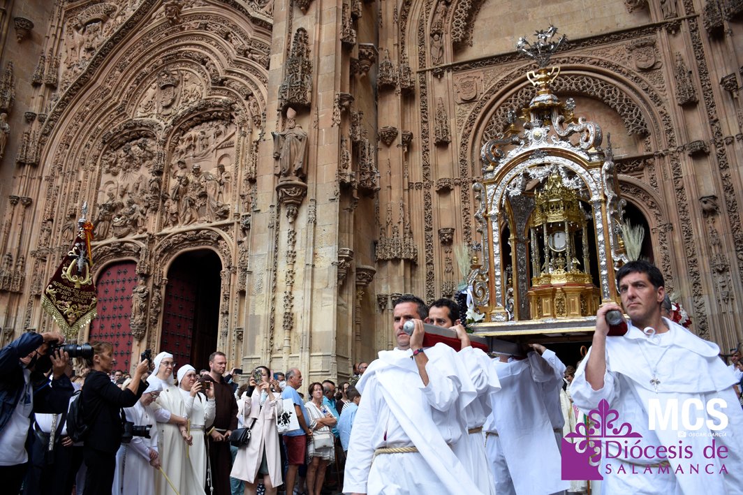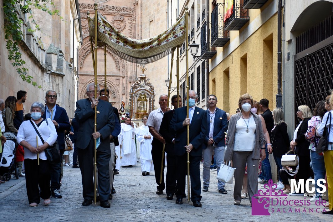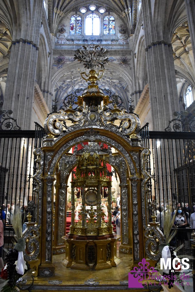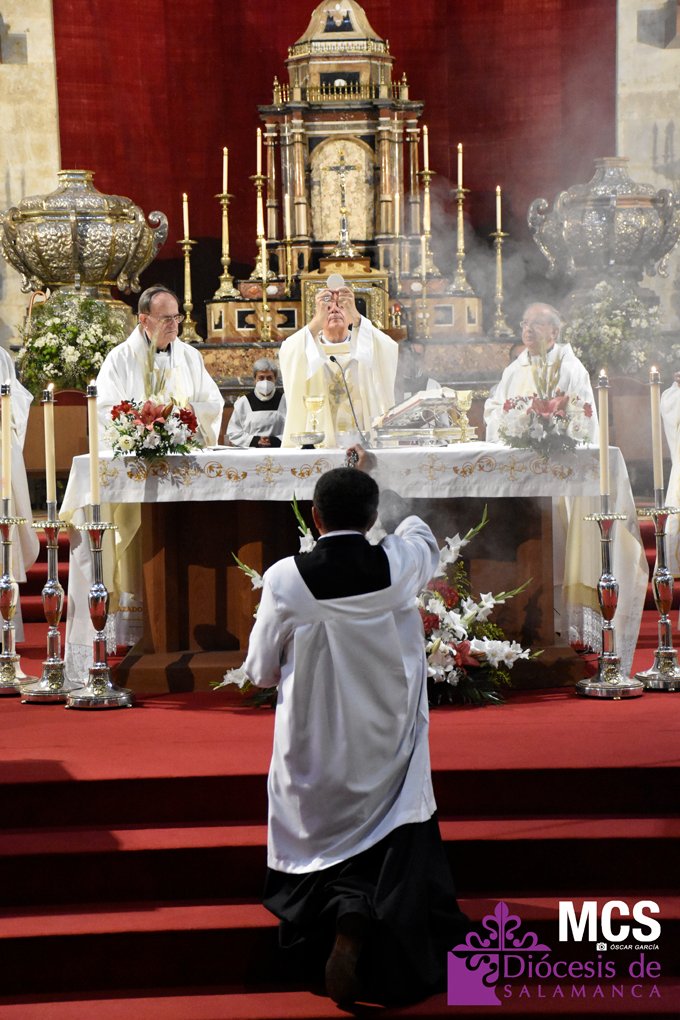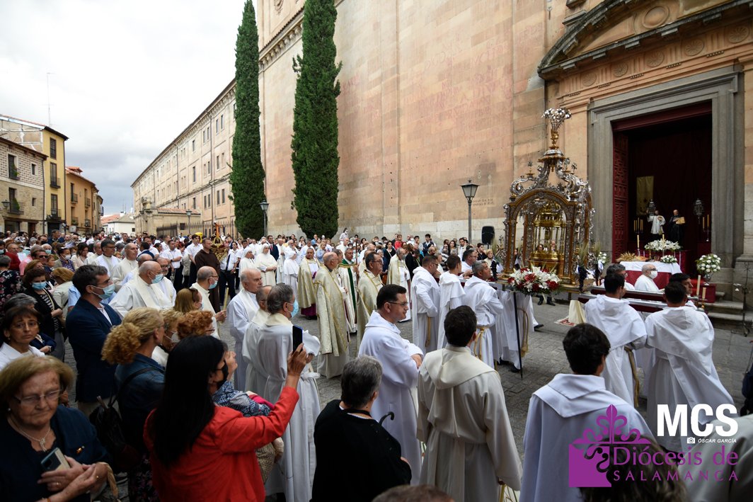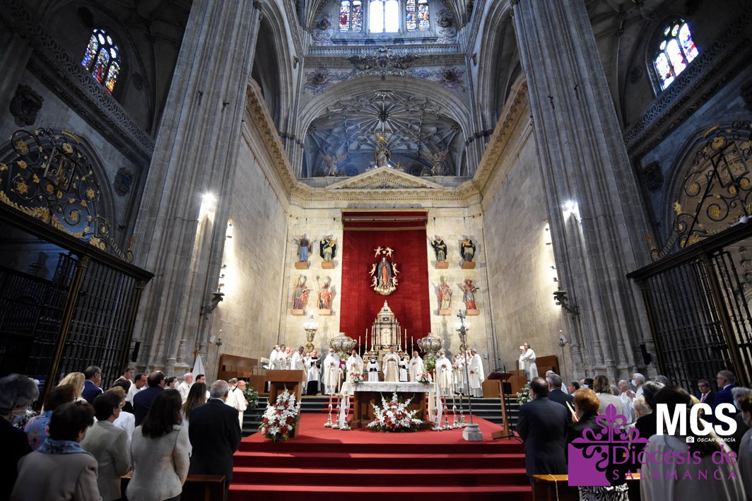 El Corpus Christi volvió a celebrarse en Salamanca con la misma afluencia anterior a la pandemia, con una Catedral Nueva llena de fieles y cerca de un centenar de niños de primera comunión que también participaron en la posterior procesión por las calles del centro de la ciudad.