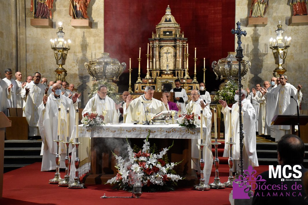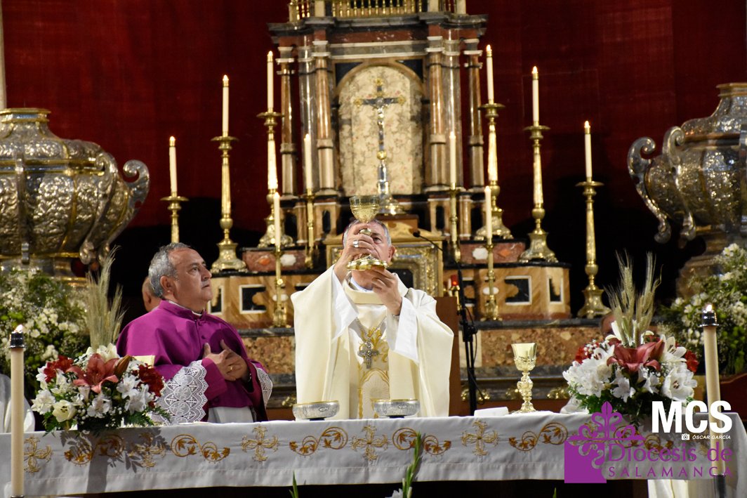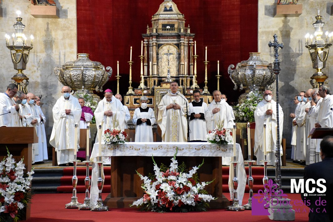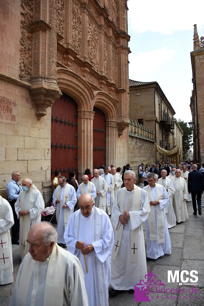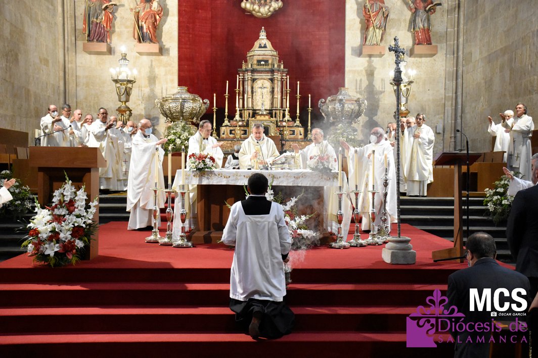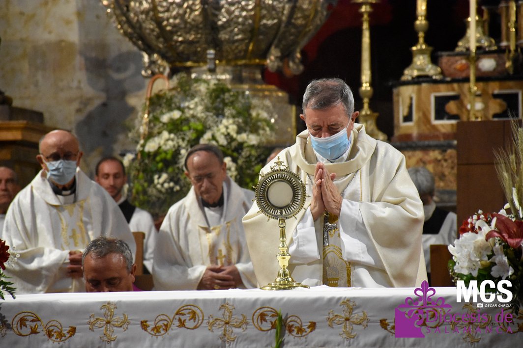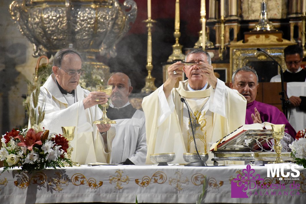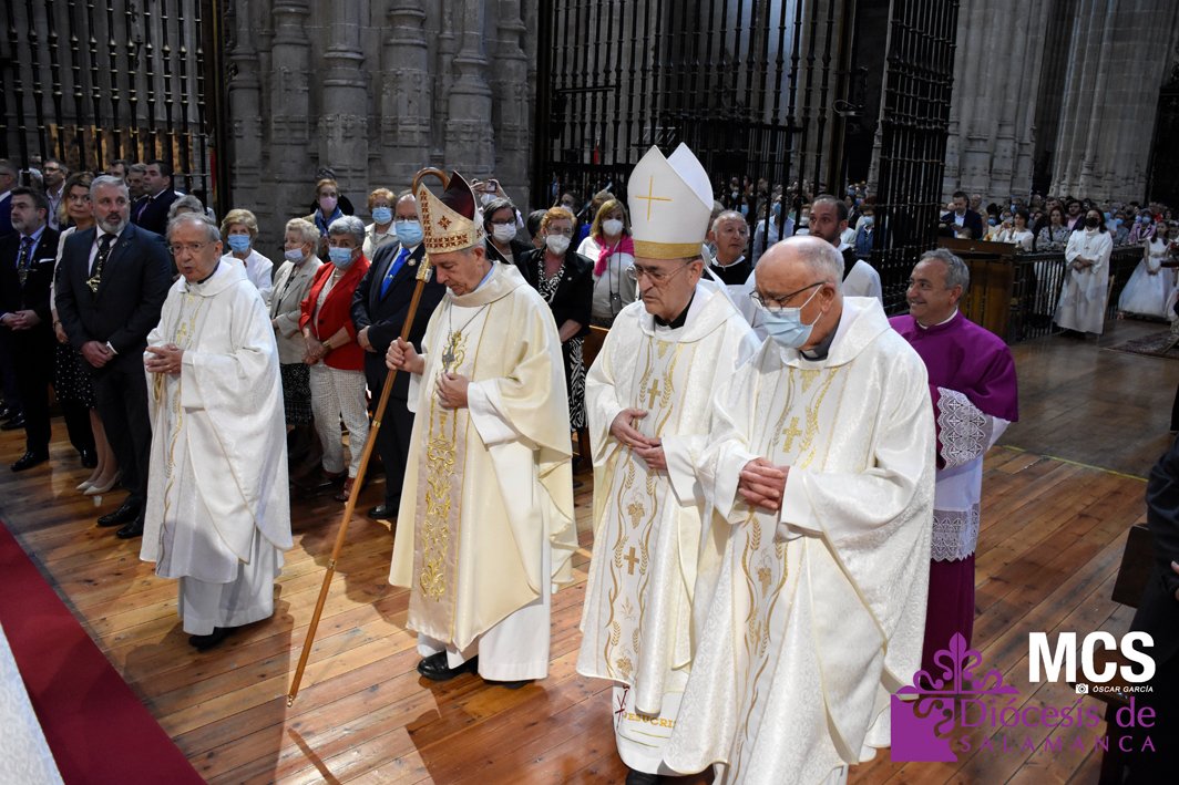 La fiesta de la eucaristía también contó con un nutrido número de sacerdotes que concelebraron junto a su pastor, el obispo de Salamanca, Mons. José Luis Retana, que presidió la misa a las seis de la tarde, y donde también estaba presente el obispo emérito, Mons. Carlos López. En su homilía quiso dar protagonismo especial a los niños de primera comunión, “vosotros sois los amigos predilectos de Jesús”.
