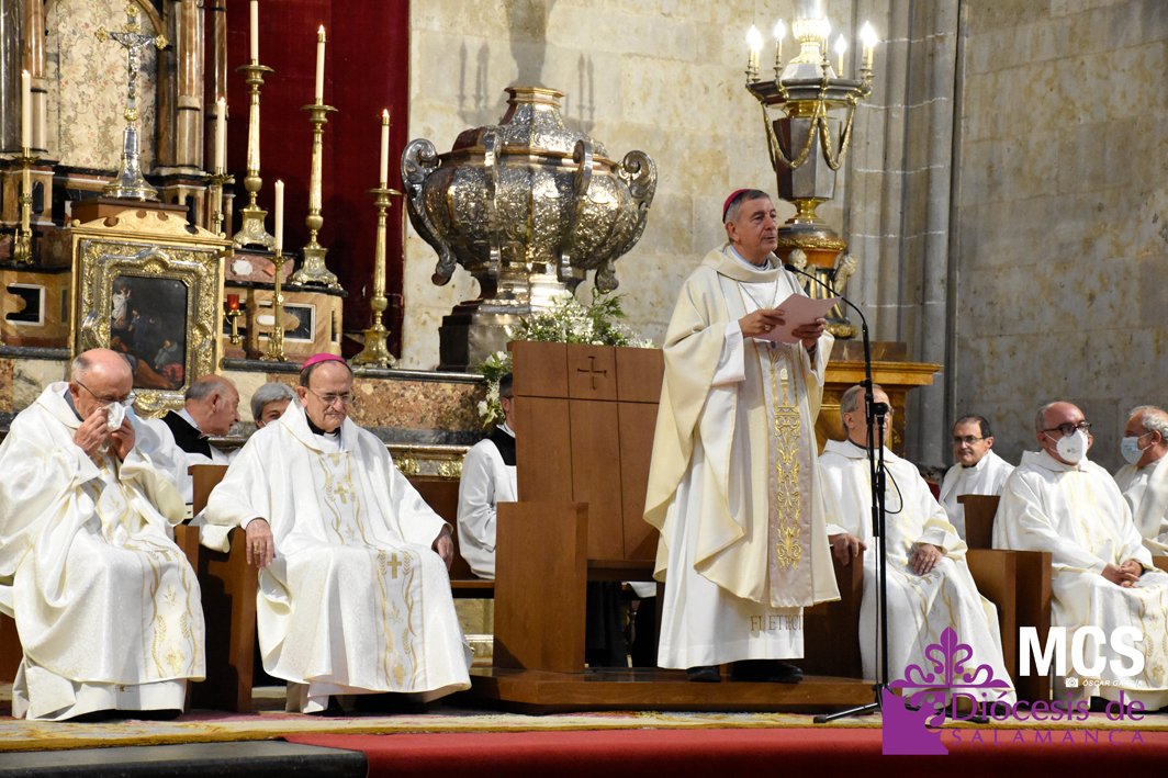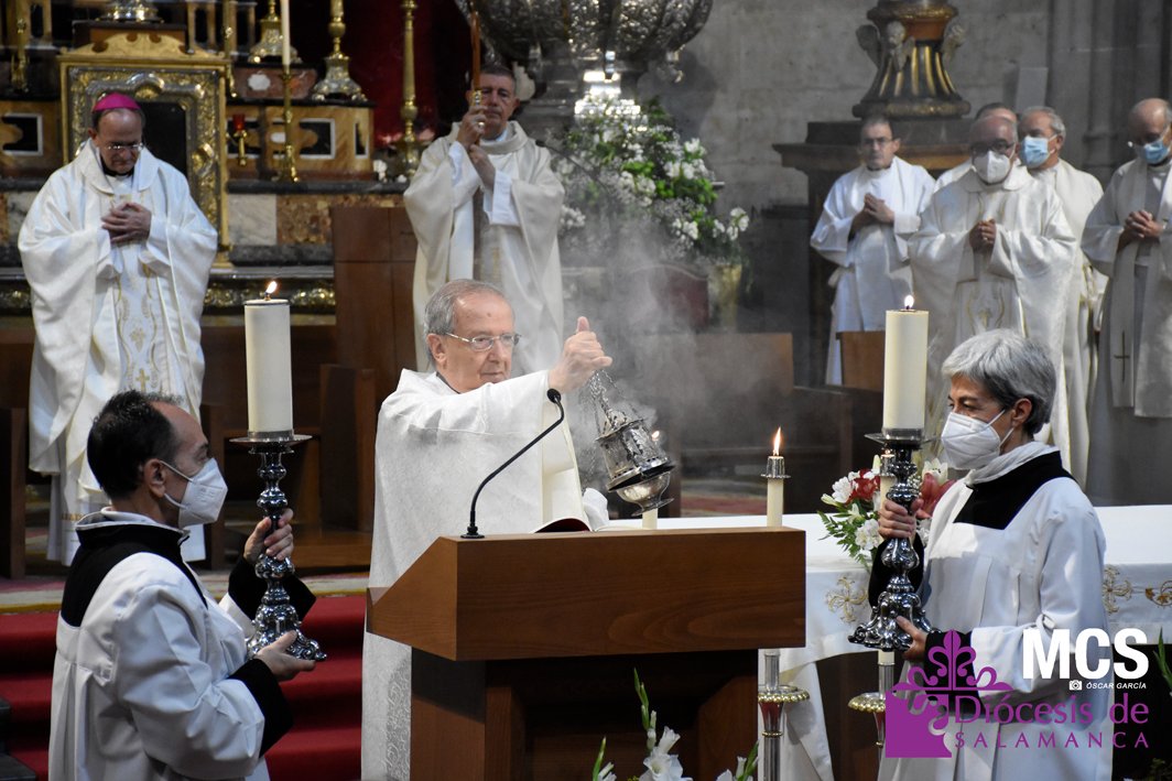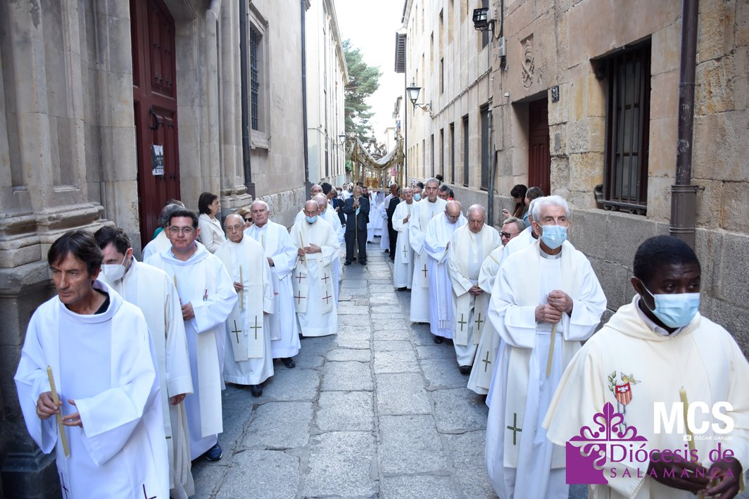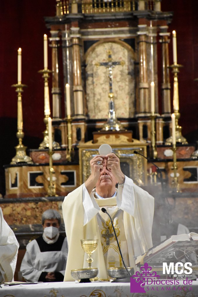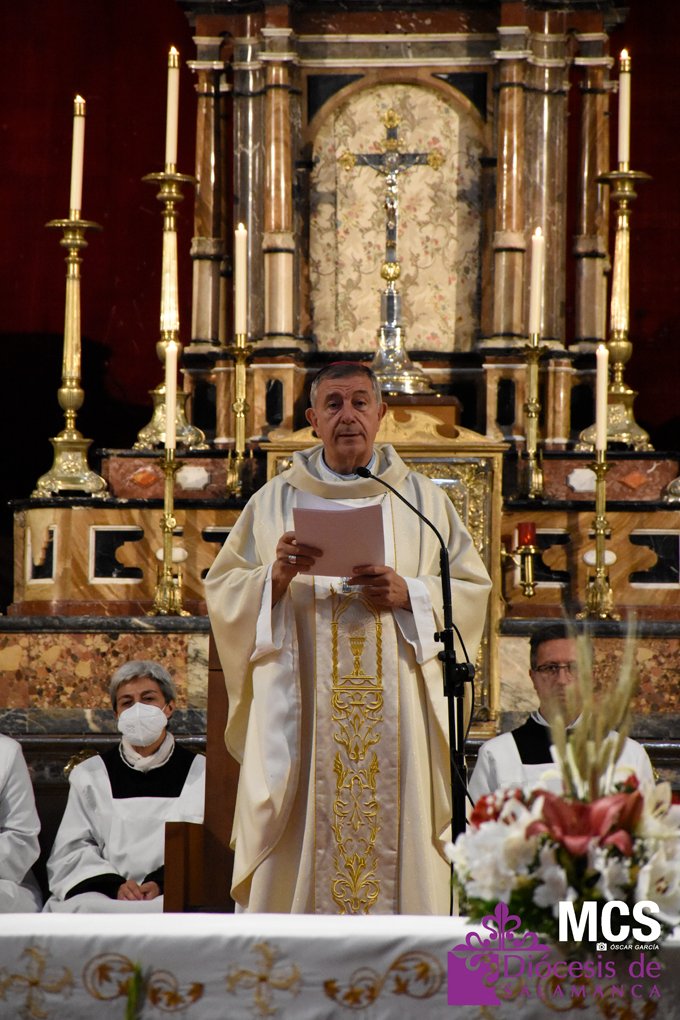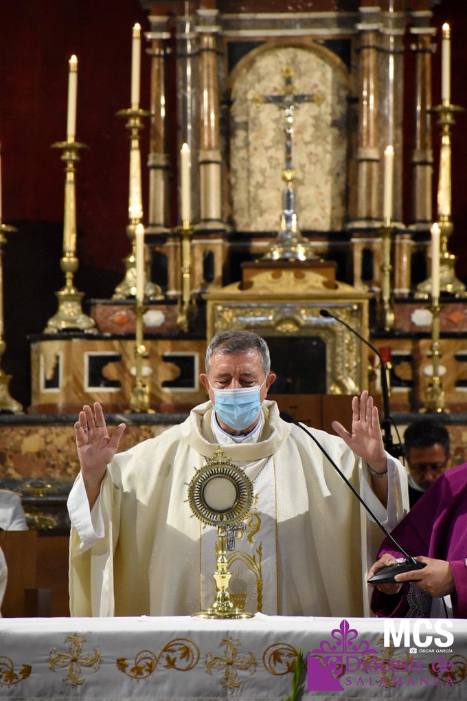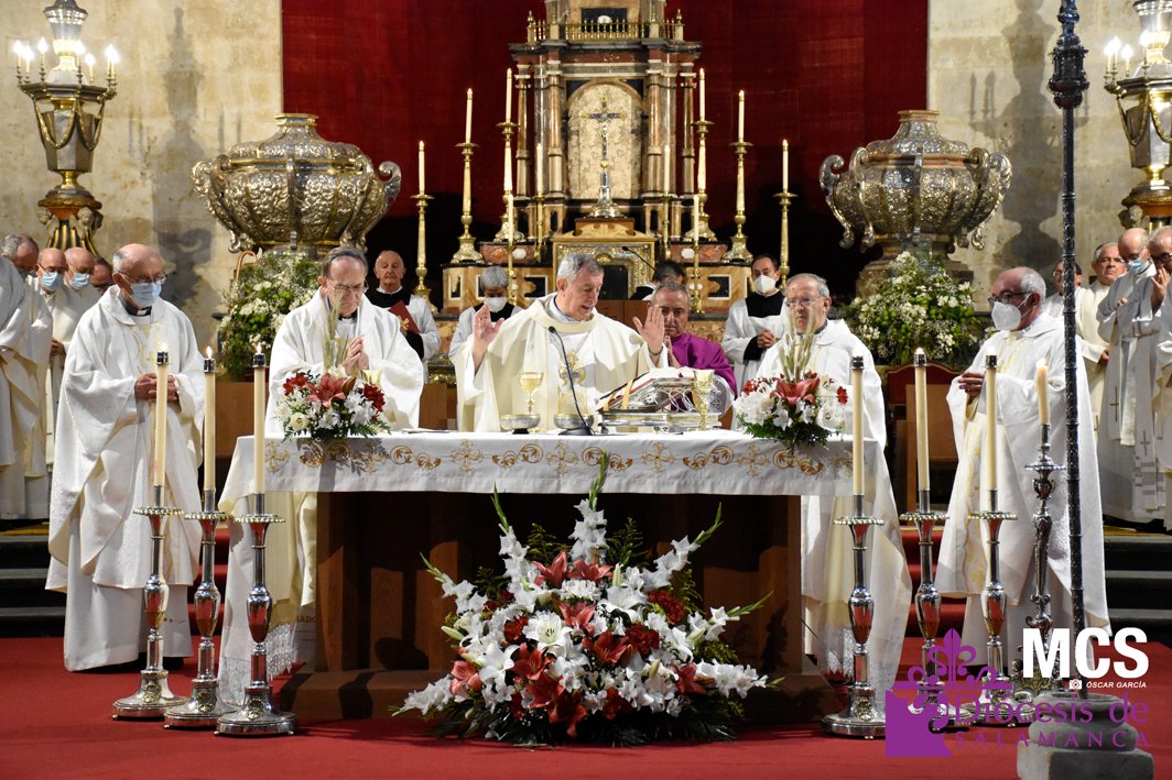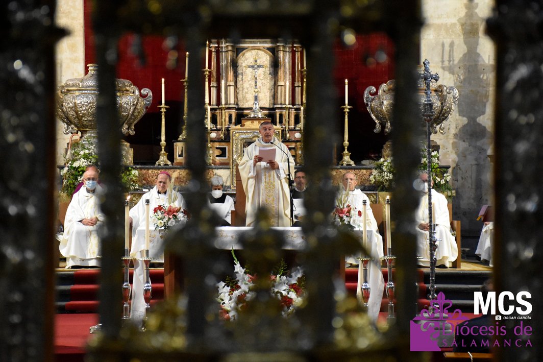 La fiesta de la eucaristía también contó con un nutrido número de sacerdotes que concelebraron junto a su pastor, el obispo de Salamanca, Mons. José Luis Retana, que presidió la misa a las seis de la tarde, y donde también estaba presente el obispo emérito, Mons. Carlos López. En su homilía quiso dar protagonismo especial a los niños de primera comunión, “vosotros sois los amigos predilectos de Jesús”.