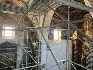 La intervención contempla también el cambio de la iluminación interior, como ha indicado el responsable de la Delegación diocesana de Patrimonio, Juan Pedro Melgar, “aprovechando que se ha colocado el andamiaje se va a cambiar la iluminación del templo, sustituyendo los halógenos por led”, lo que permitirá un ahorro en el consumo energético. “Se van a realizar dos tipos de iluminación, una artística y otra celebrativa”, aclara el delegado diocesano de Patrimonio.