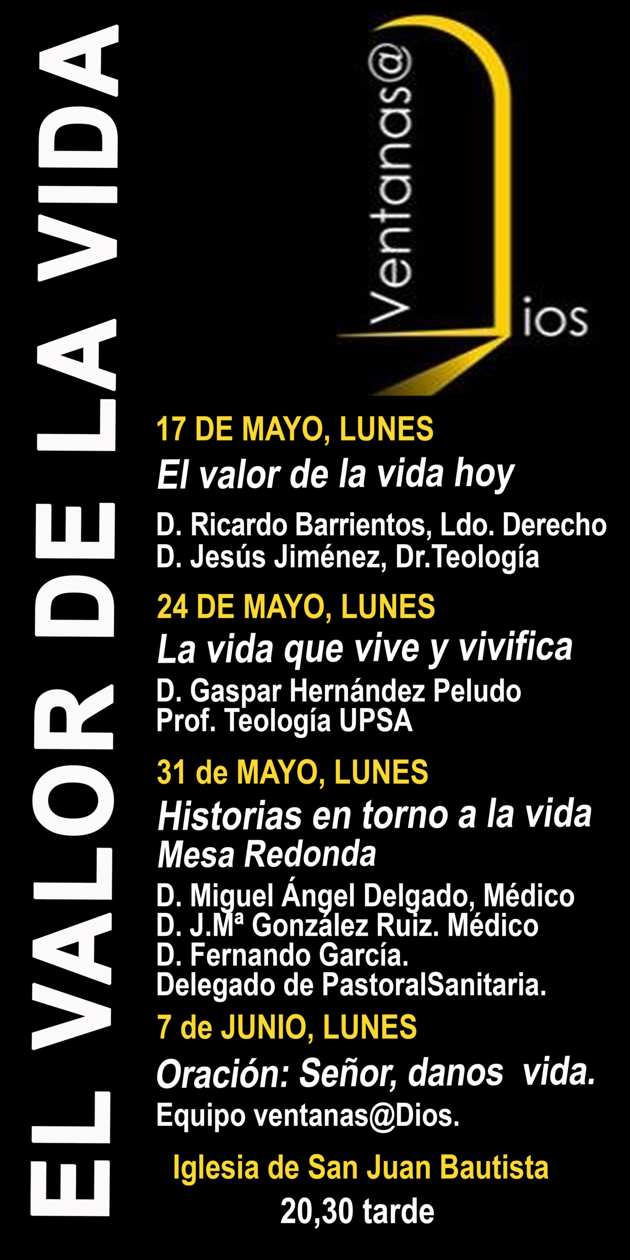 Finalmente, una oración, “Señor, danos vida”, preparada por el equipo de Ventanas@Dios clausurará este ciclo dedicado al valor de la vida, el 7 de junio.