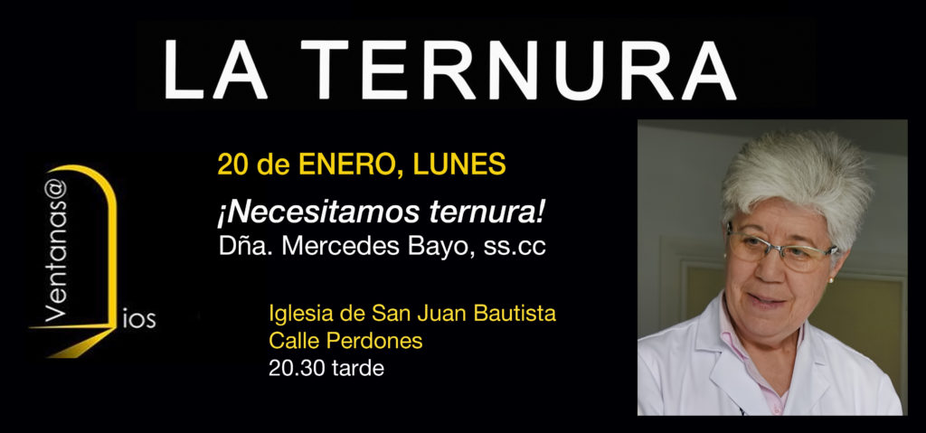 El espacio de evangelización Ventanas@Dios estrena el lunes 20 de enero un nuevo ciclo de oración, meditación y reflexión dedicado a la ternura. La religiosa de los Sagrados corazones Mercedes Bayo será la encargada de inaugurarlo con una meditación titulada: “Necesitamos ternura”, a las 20.30 horas en la iglesia de San Juan Bautista, en la calle Perdones de Salamanca.
