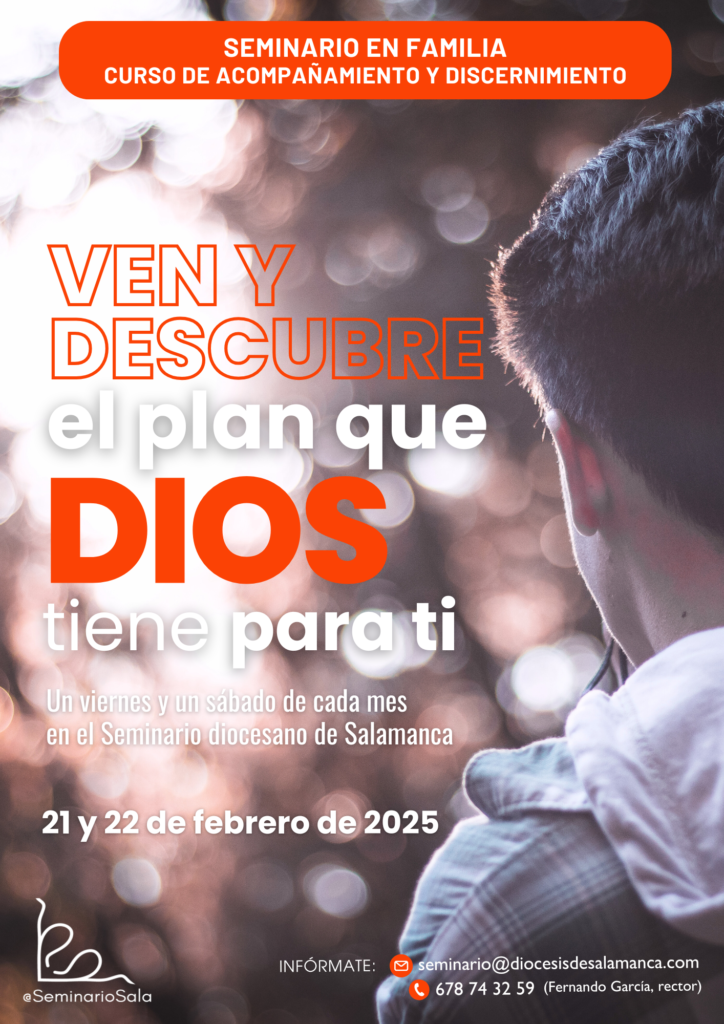 La Delegación diocesana de Pastoral Vocacional celebra los días 21 y 22 de febrero el cuarto encuentro del Seminario en Familia y del Curso de Discernimiento Vocacional, que lleva por lema: “Ven y descubre el plan que Dios tiene para ti”, dirigidos a aquellos jóvenes con inquietud vocacional. Estas iniciativas se llevarán a cabo en las dependencias del Seminario diocesano, en la Casa de la Iglesia, ubicada en la calle Rosario, 18, y que tienen como fin ayudar a los jóvenes a fortalecer su fe y a discernir su vocación al sacerdocio.