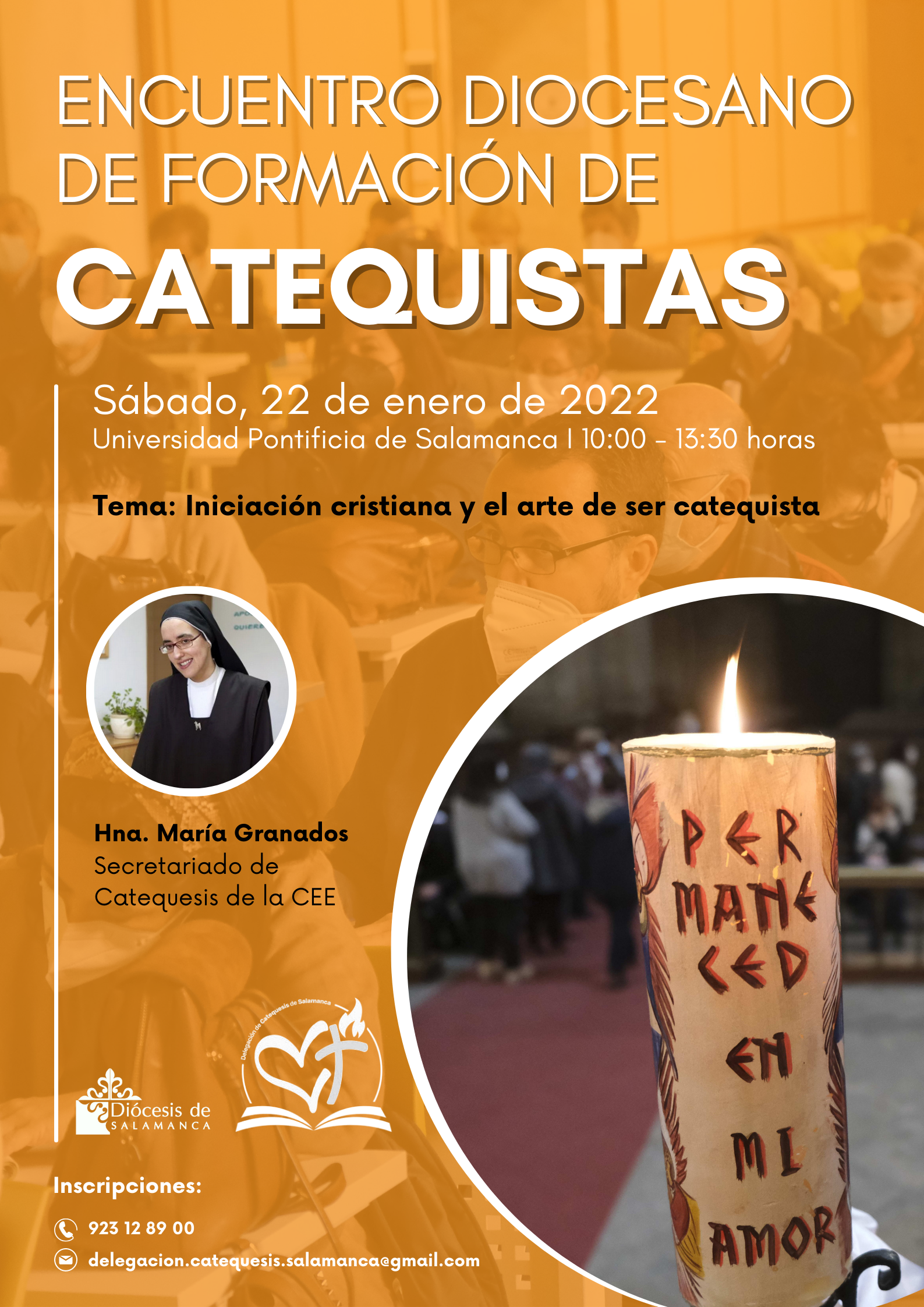 Para participar en este encuentro formativo es necesario inscribirse previamente remitiendo un correo electrónico con los datos personales y la parroquia de pertenenencia, a: delegacion.catequesis.salamanca@gmail.com o bien, en la portería de la Casa de la Iglesia, en la calle del Rosario nº 18, o en el teléfono: 923 12 89 00.