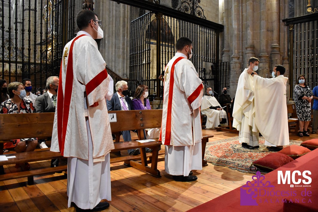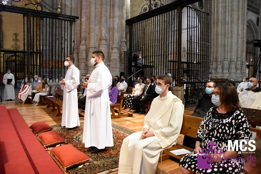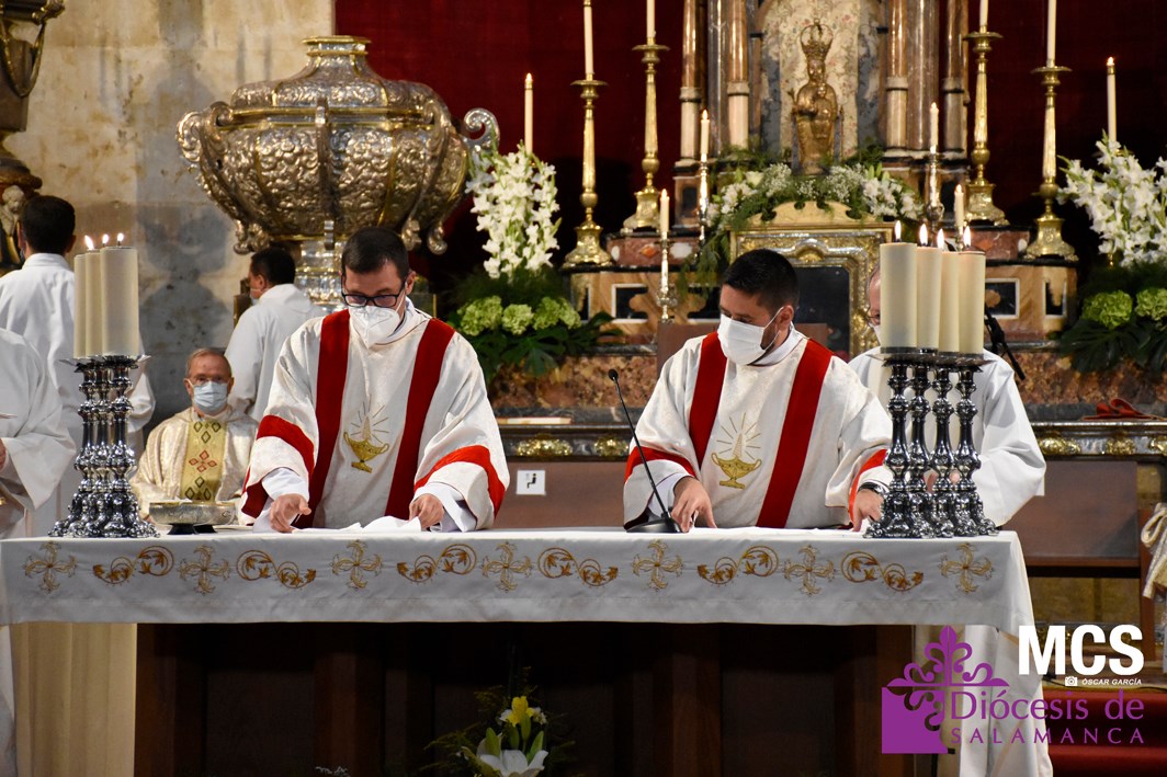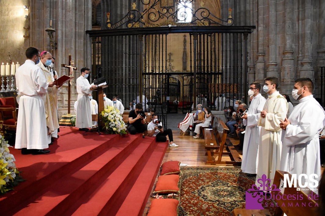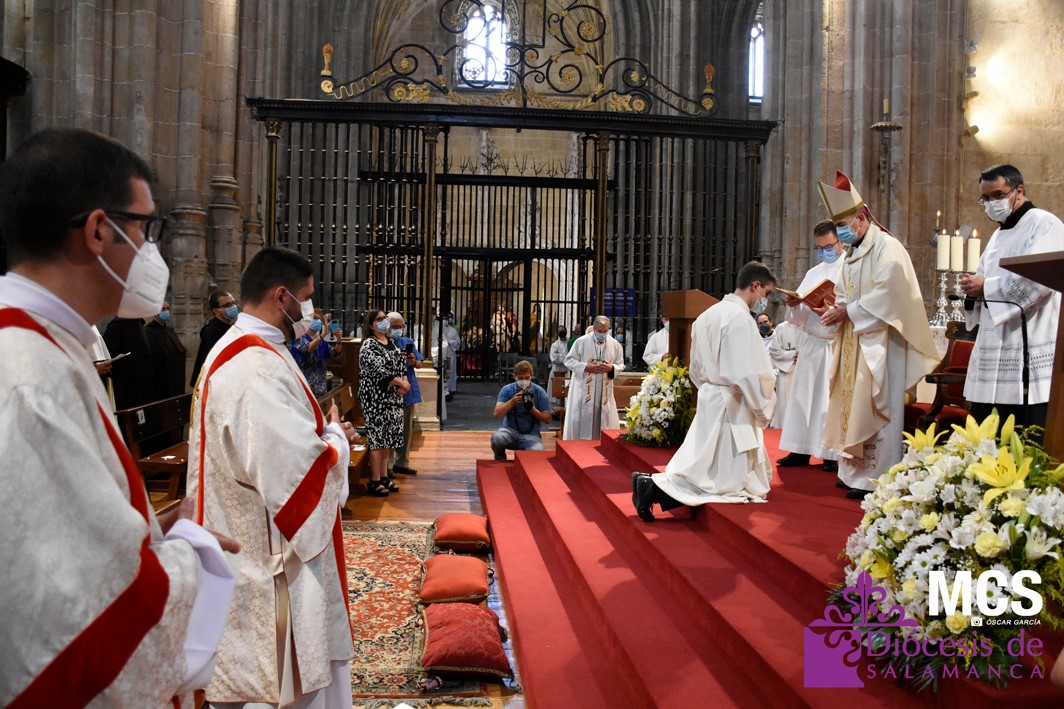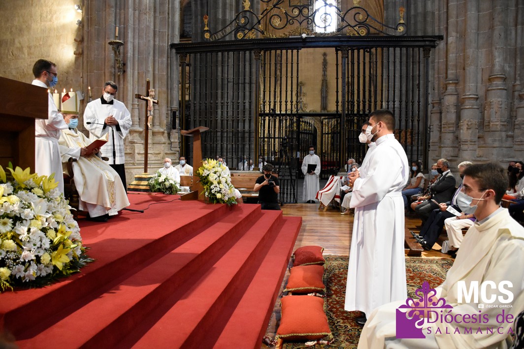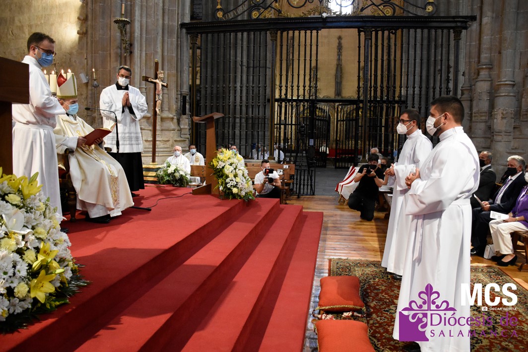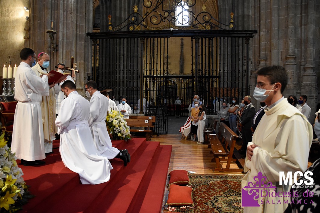 La Iglesia de Salamanca cuenta desde hoy, domingo 11 de julio, con dos nuevos diáconos, Alfonso Hernández y Ciriaco García, seminaristas de la diócesis que han dado un paso más en su camino al sacerdocio. Junto a ellos, se ha ordenado como presbítero el carmelita, Fr. Luca Zerneri.