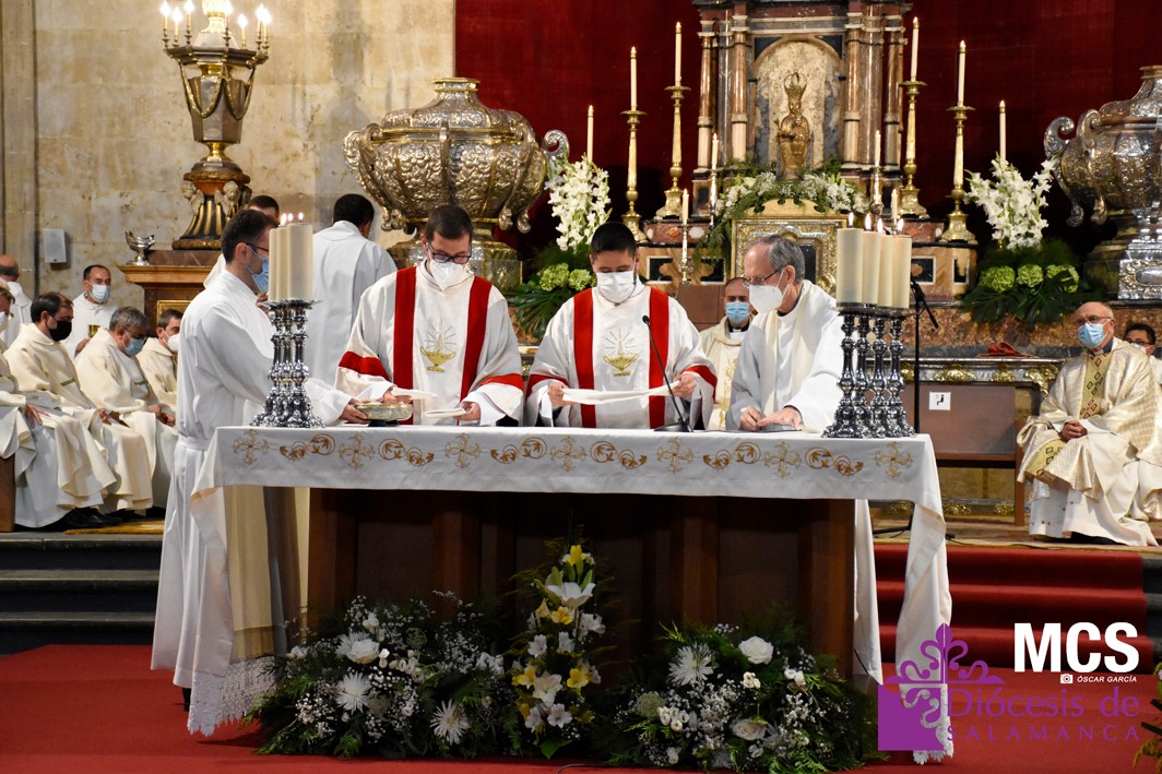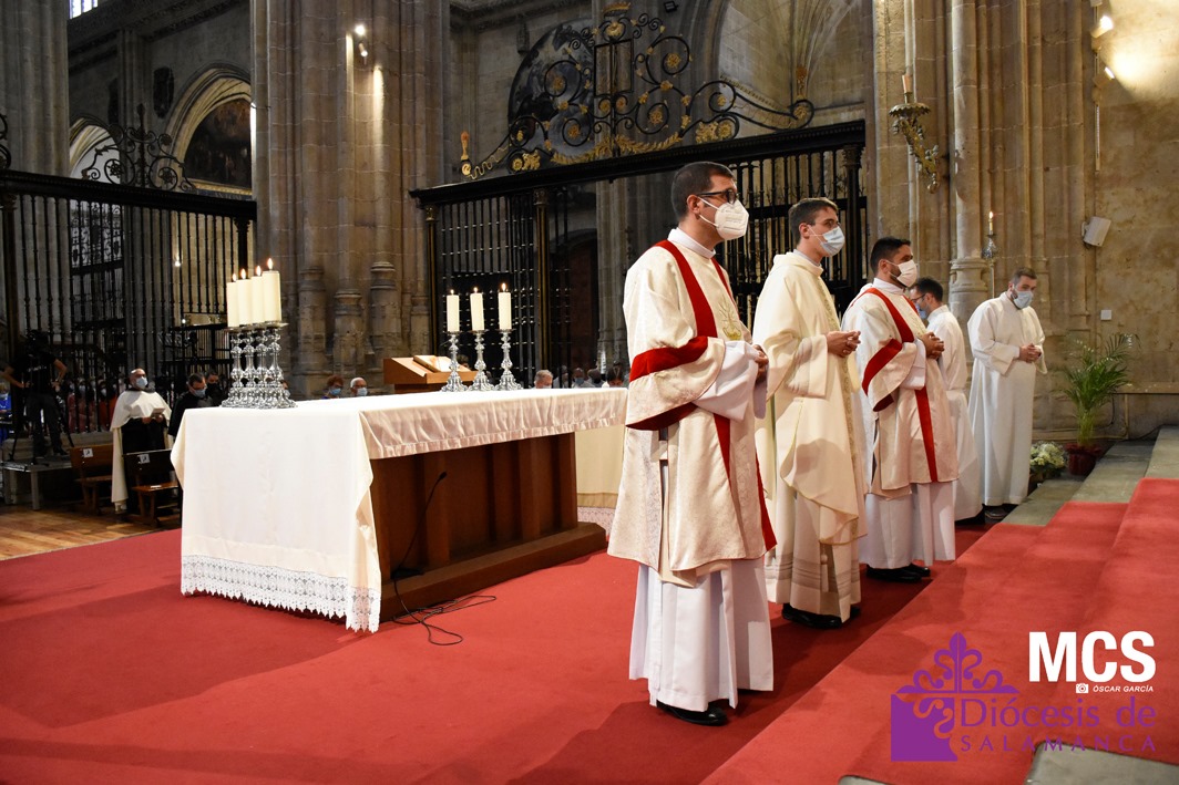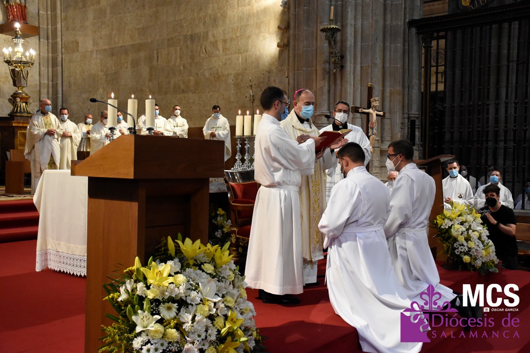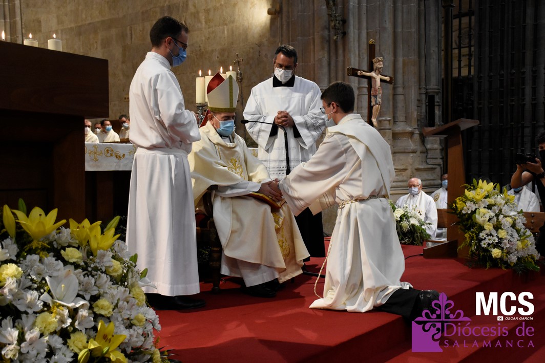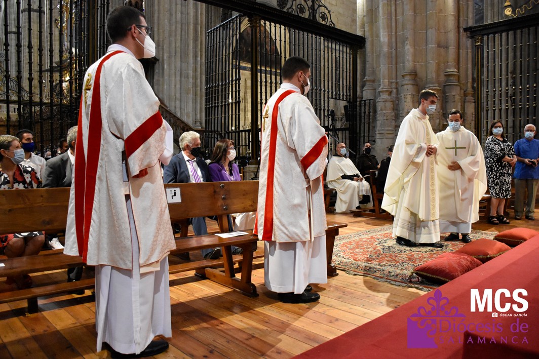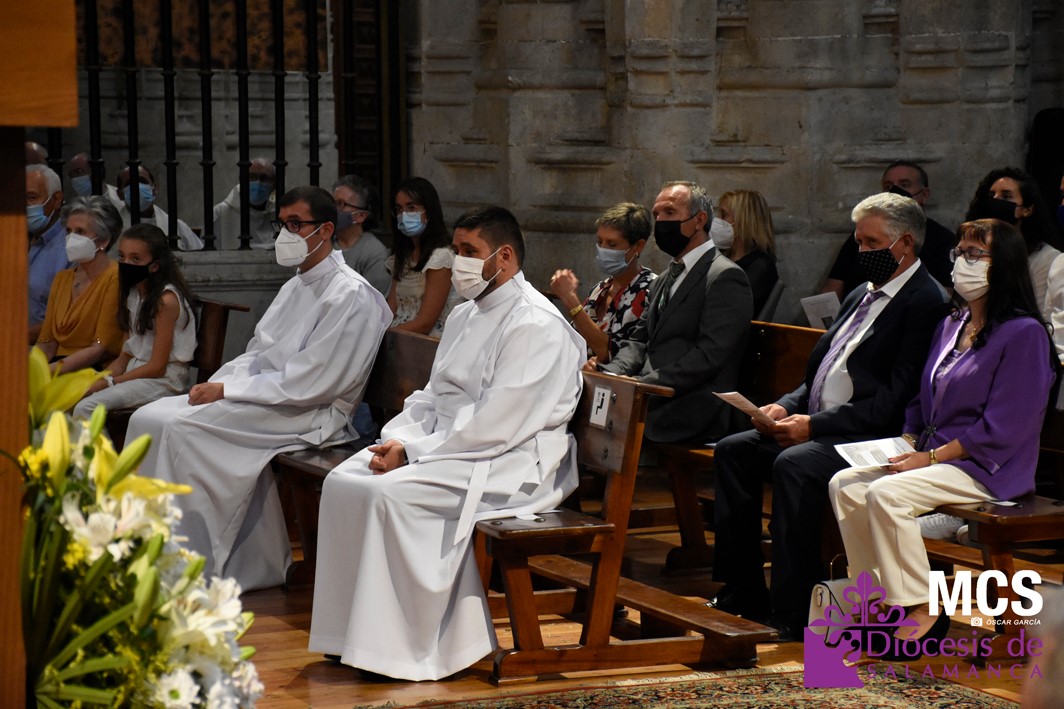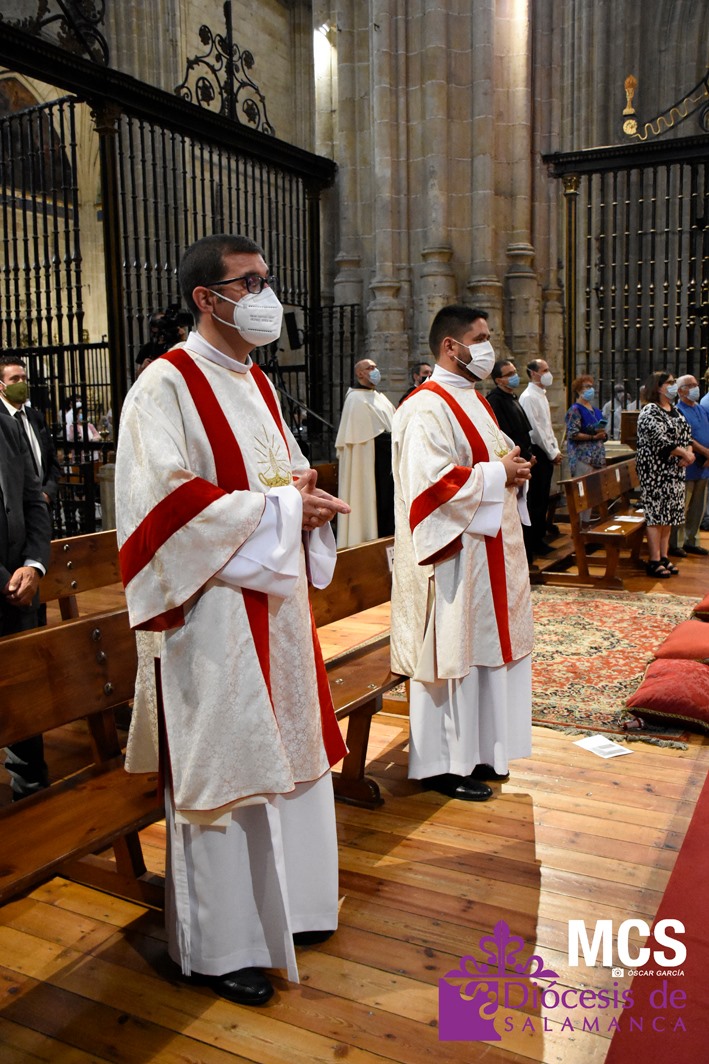 La Iglesia de Salamanca cuenta desde hoy, domingo 11 de julio, con dos nuevos diáconos, Alfonso Hernández y Ciriaco García, seminaristas de la diócesis que han dado un paso más en su camino al sacerdocio. Junto a ellos, se ha ordenado como presbítero el carmelita, Fr. Luca Zerneri.
