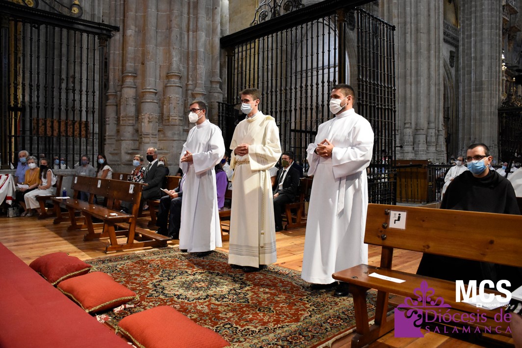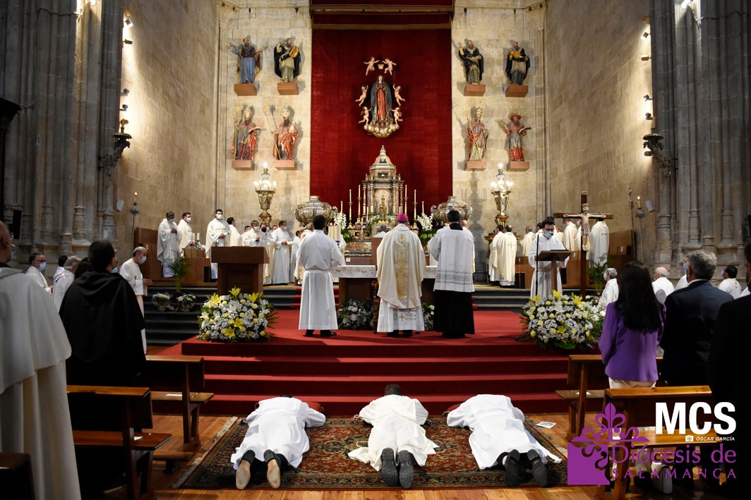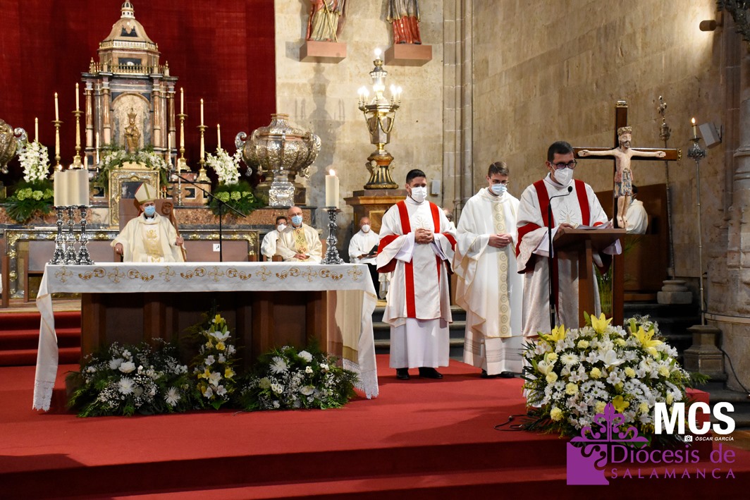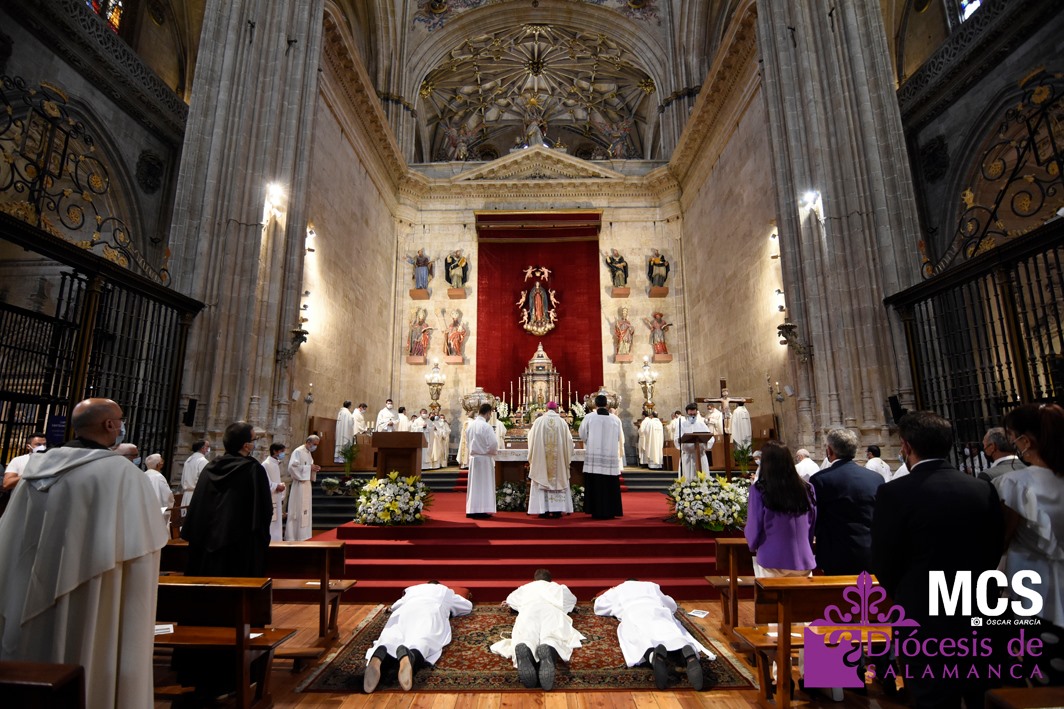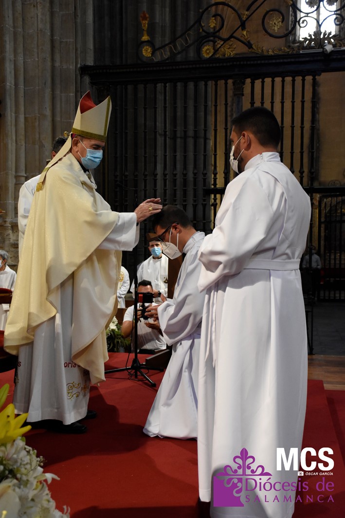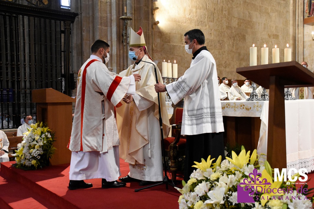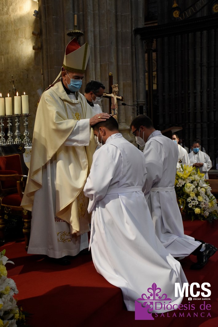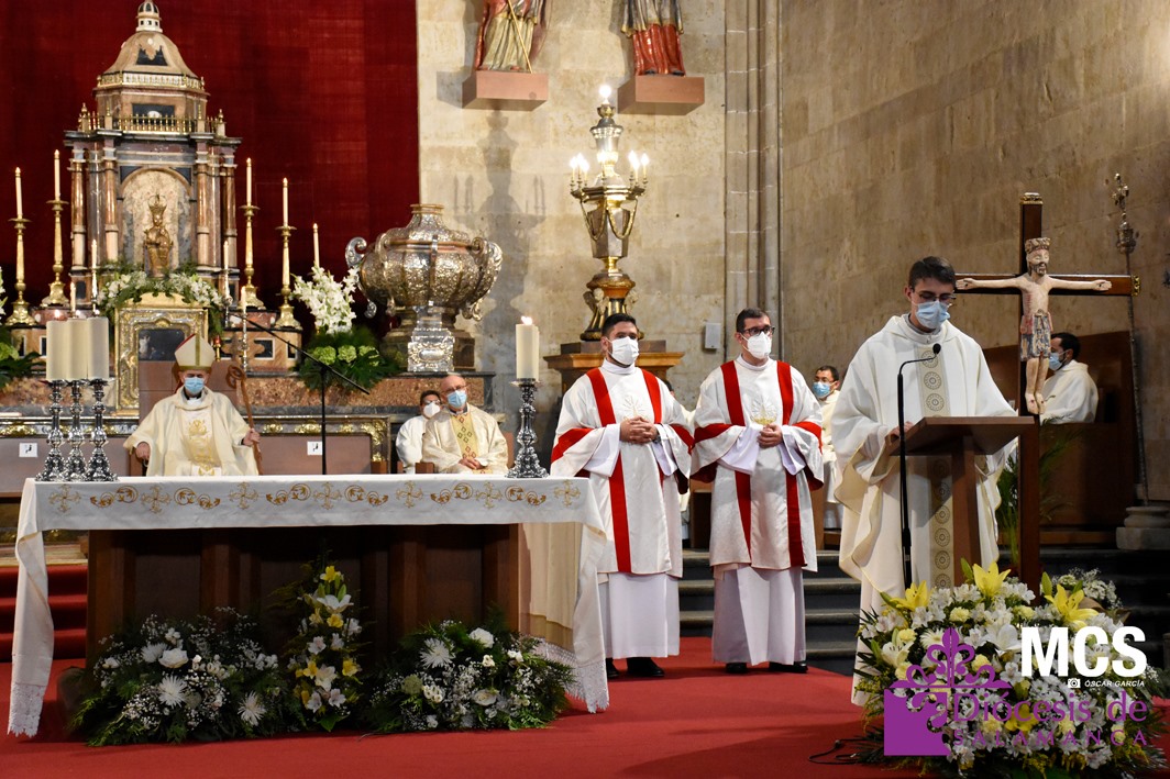 La Iglesia de Salamanca cuenta desde hoy, domingo 11 de julio, con dos nuevos diáconos, Alfonso Hernández y Ciriaco García, seminaristas de la diócesis que han dado un paso más en su camino al sacerdocio. Junto a ellos, se ha ordenado como presbítero el carmelita, Fr. Luca Zerneri.