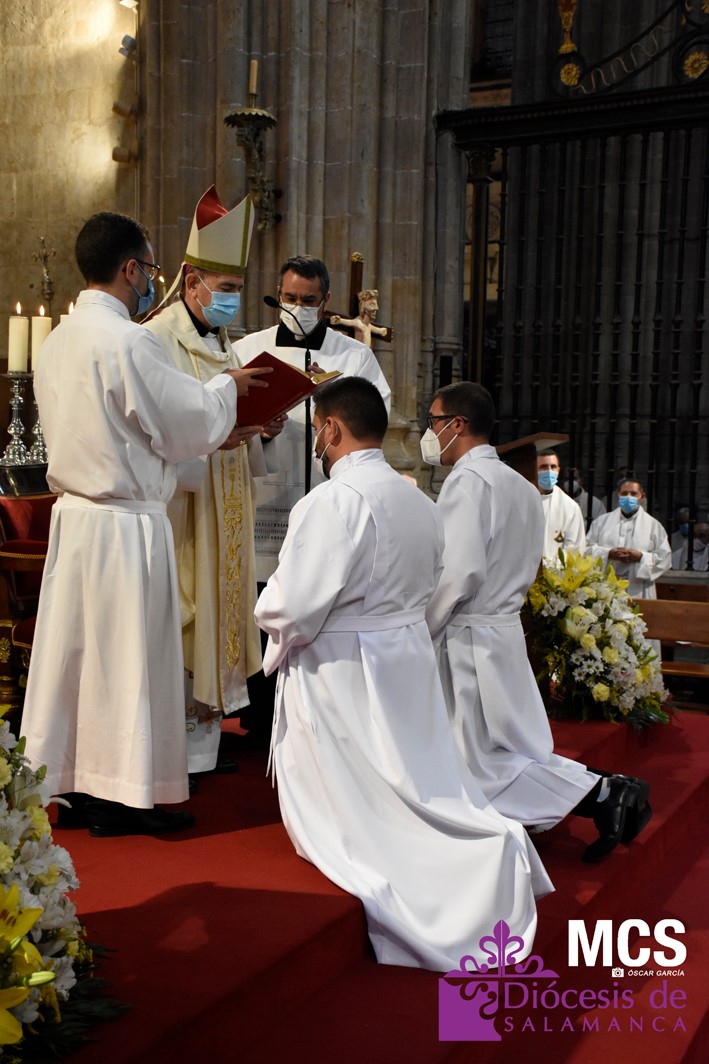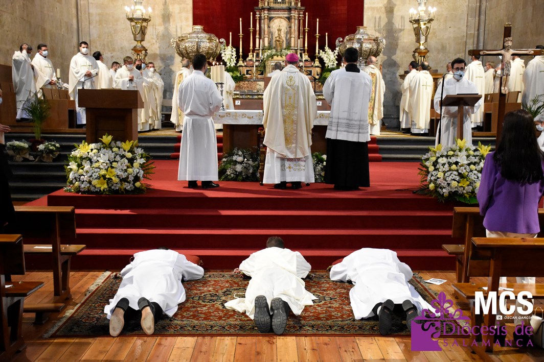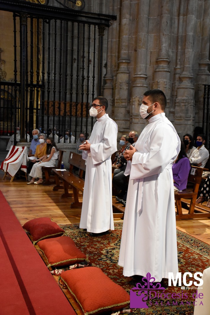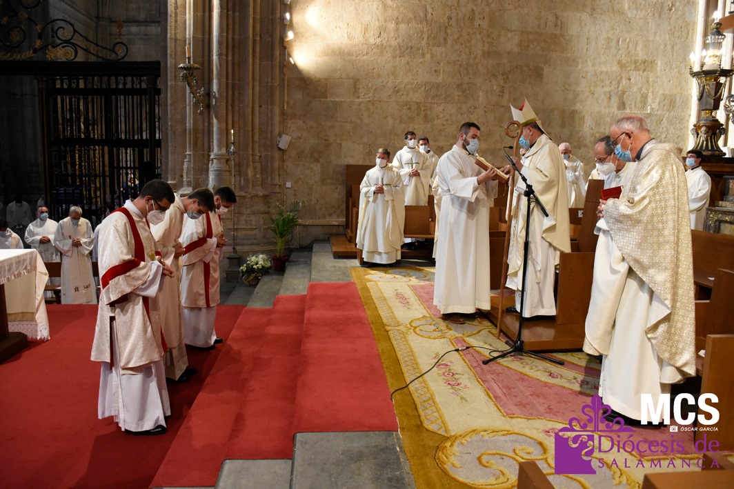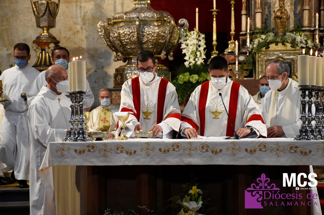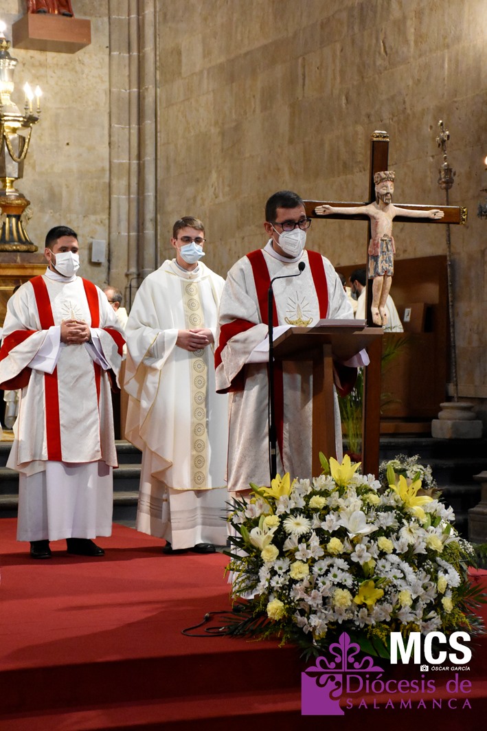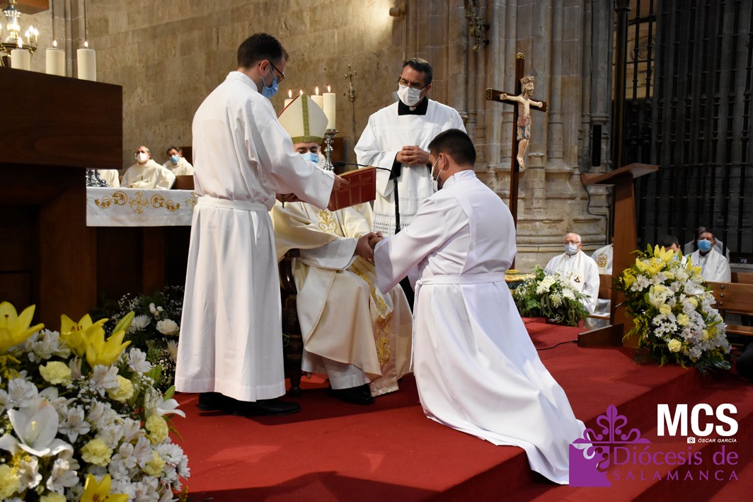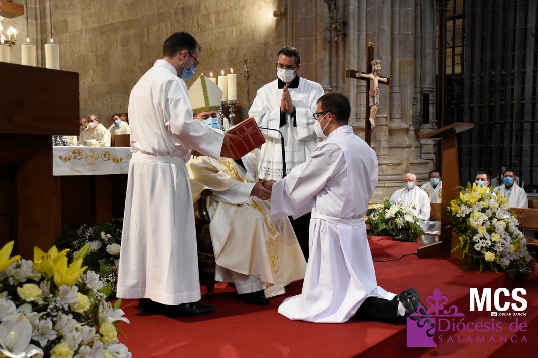 La Iglesia de Salamanca cuenta desde hoy, domingo 11 de julio, con dos nuevos diáconos, Alfonso Hernández y Ciriaco García, seminaristas de la diócesis que han dado un paso más en su camino al sacerdocio. Junto a ellos, se ha ordenado como presbítero el carmelita, Fr. Luca Zerneri.