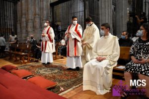 El prelado considera que los diáconos y los presbíteros, “estamos en la continuidad de la misión de Jesús, encomendada a los doce apóstoles y otros setenta y dos discípulos”. Y advirtió que están llamados a ser discípulos y sucesores ministeriales “de su servicio de amor y de su sacerdocio”. Antes de concluir la homilía, el obispo pidió para Alfonso, Ciriaco y Luca, que el Señor les llene con su Espíritu, por la intercesión de Santa María. “Y que vuestro ministerio conduzca a muchas gentes al conocimiento y la comunión de vida con Jesucristo, el Salvador y Luz del mundo”.