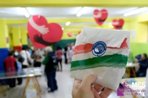 En esta ocasión, por un donativo de 4 euros se ofrecía una empanada de tres sabores: jamón york y queso, pisto y hornazo, con la posibilidad de solicitar una especial para celíacos o para vegetarianos. Además, se incluía servilletas y agua.