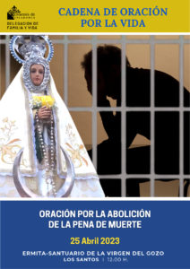 La ermita-santuario de la Virgen del Gozo, en Los Santos, acogerá el próximo martes, 25 de abril, la cadena de oración por la vida que promueve la Delegación diocesana de Familia y Vida, y que este mes invita a orar por la abolición de la pena de muerte. Una práctica que en la actualidad se sigue aplicando en 55 países en varios continentes y que “destruye el don más importante que hemos recibido: la vida”, afirmaba el papa Francisco el pasado mes de septiembre en El Vídeo del Papa.