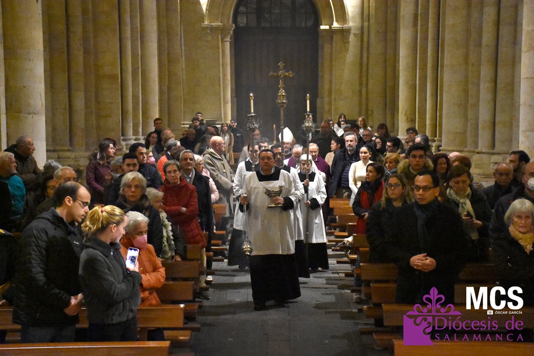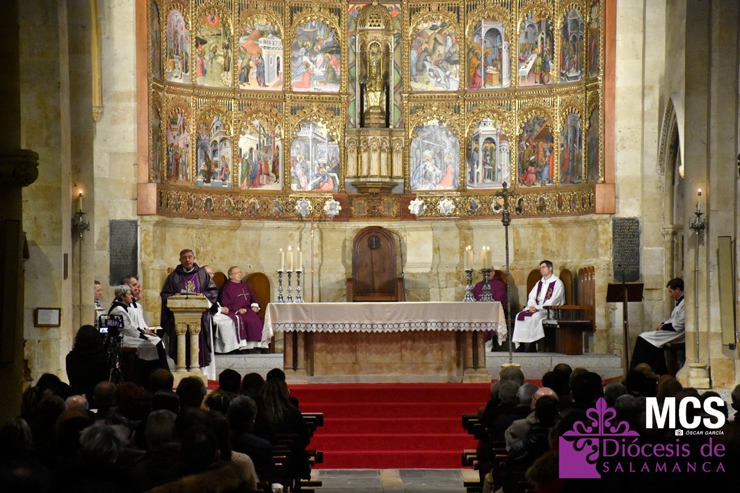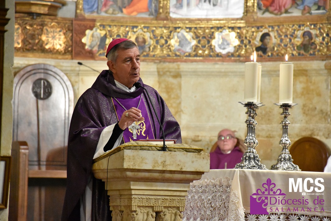 La misa estuvo presidida por el obispo de la Diócesis de Salamanca, Mons. José Luis Retana, y en su homilía recordó que con el rito del Miércoles de Ceniza, en el que recibimos la ceniza sobre nuestras cabezas, “expresamos nuestro deseo de cambiar de vida, de iniciar un nuevo camino desde la certeza de que el Señor va a acompañarnos y va a recorrer este camino con nosotros”.