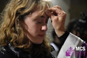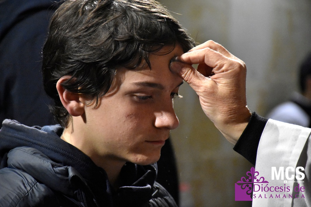 Después, tuvo lugar la imposición de la ceniza en la frente, con la fórmula del misal romano utilizada para la ocasión: “Conviértete y cree en el Evangelio”, que se consigue de la quema de los ramos del Domingo de Ramos anterior.
