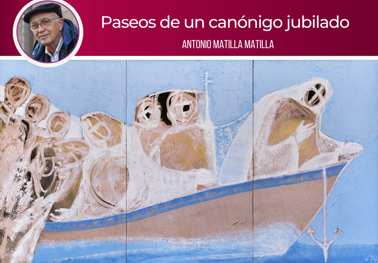 Digo todo lo anterior para curarme en salud intelectual, pues he tenido que hacer la visita a la exposición “Peregrinos de la Esperanza”, del pintor y presbítero soriano Vicente Molina Pacheco, en el poco rato que mi quinta lumbar me permite estar incómodamente de pie. La muestra puede disfrutarse en la Sala-Taller “Nuñez Solé”, en el antiguo Palacio Episcopal, integrado desde hace poco en la visita al complejo catedralicio. Algún asiento sería de agradecer.