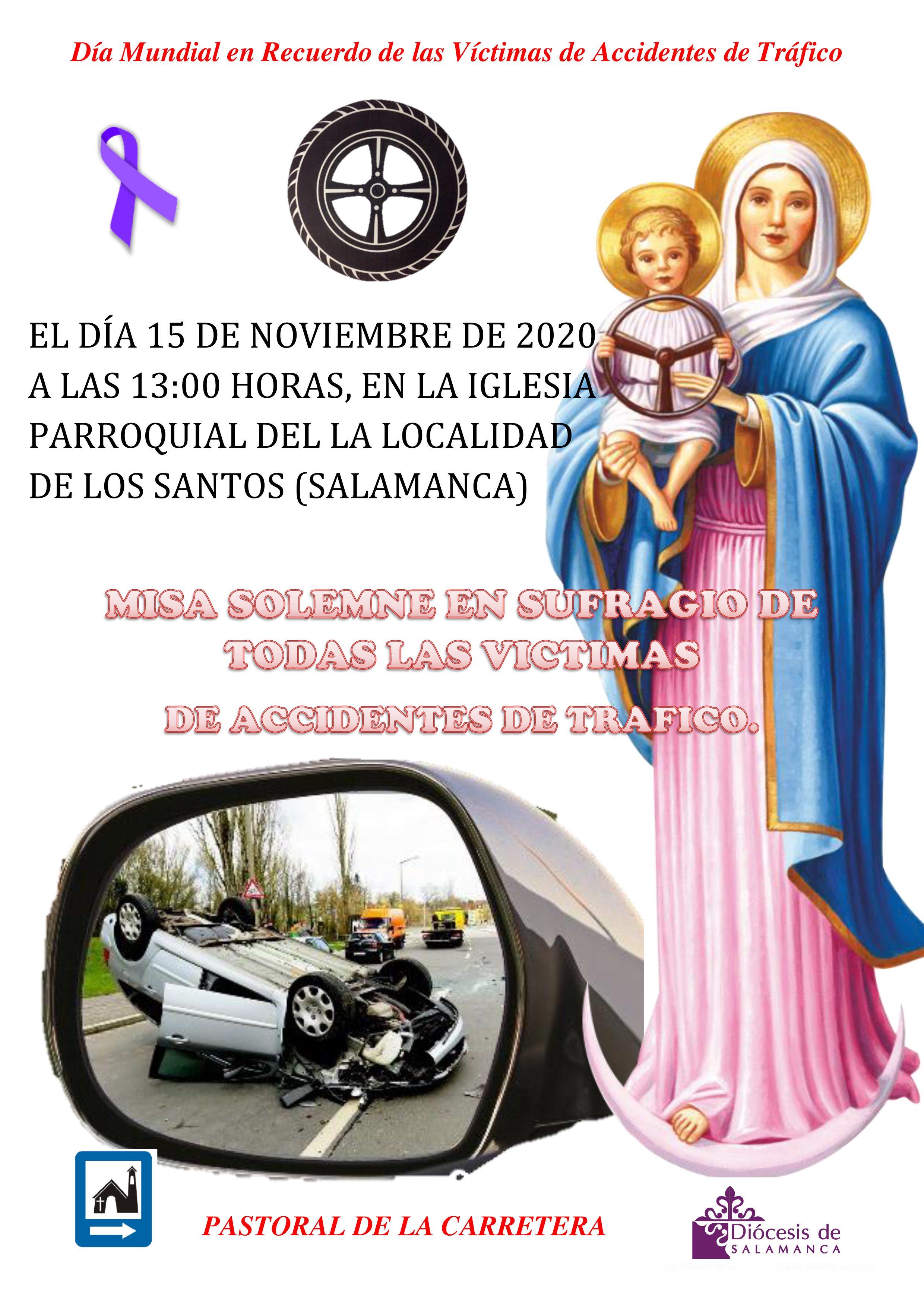 Con motivo de esta jornada, el Servicio diocesano de Apostolado en Carretera celebrará una eucaristía por las víctimas de accidentes de tráfico, el 15 de noviembre, a las 13.:00 horas, en la iglesia parroquial de Los Santos. Antes de la celebración tendrá lugar un minuto de silencio en el exterior del templo en memoria de todos los fallecidos y lesionados a causa de las colisiones, y también de sus familias. El acto se llevará a cabo manteniendo las medidas sanitarias para la prevención de contagios de la Covid-19 y puede seguirse en directo a través del canal Youtube de la Diócesis de Salamanca, en este enlace: https://youtu.be/OKXXVrmhseg