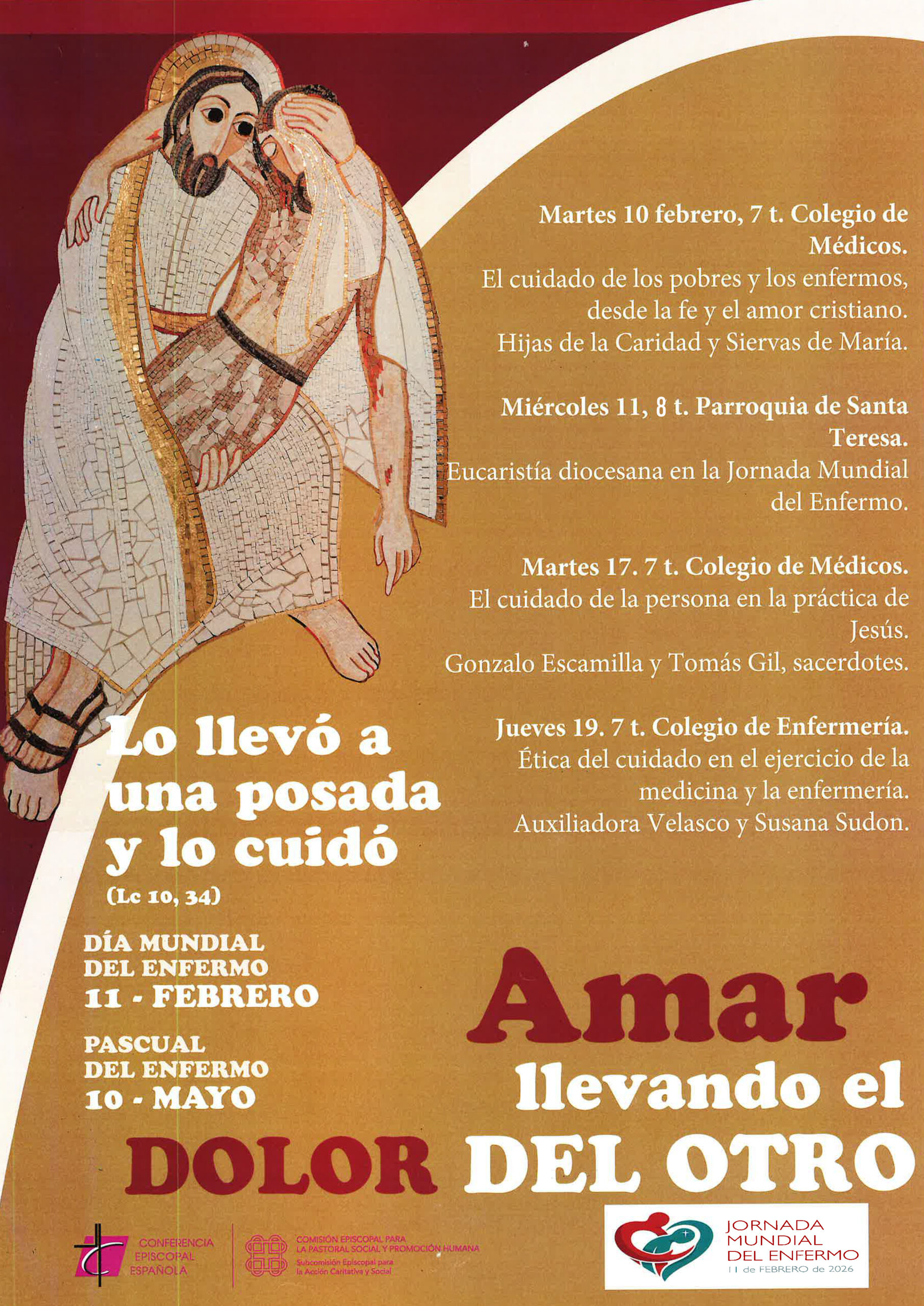 La Diócesis de Salamanca se unirá el próximo 11 de febrero, festividad de Nuestra Señora de Lourdes, a la XXXIV Jornada Mundial del Enfermo, una cita que marca el inicio de la Campaña del Enfermo 2026, que se prolongará hasta el 10 de mayo y que este año se presenta bajo el lema “La compasión del samaritano: amar llevando el dolor del otro”. Con motivo de esta jornada, el Servicio diocesano de Pastoral de la Salud ha organizado diversas actividades de oración, formación y reflexión, abiertas a toda la comunidad cristiana.