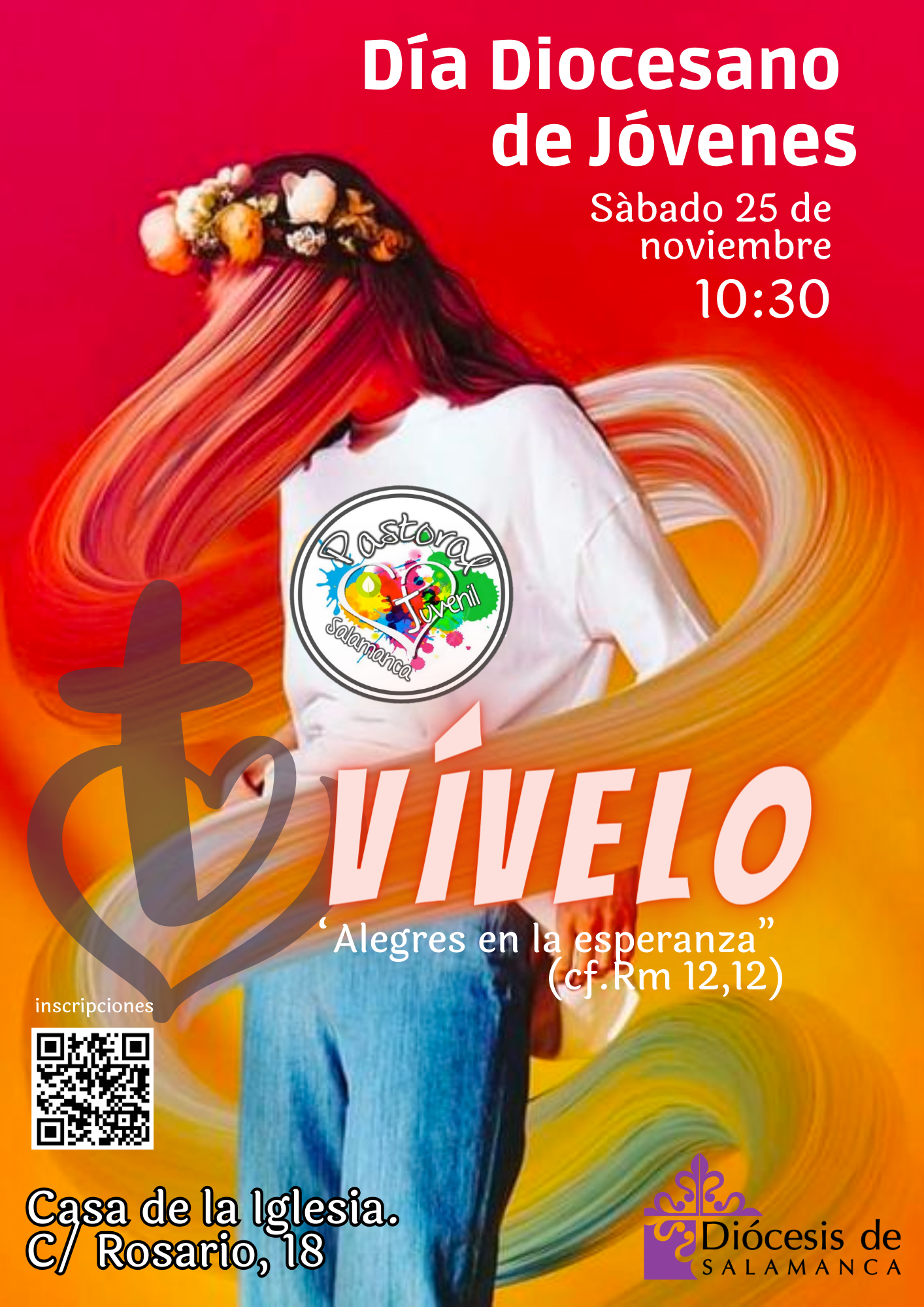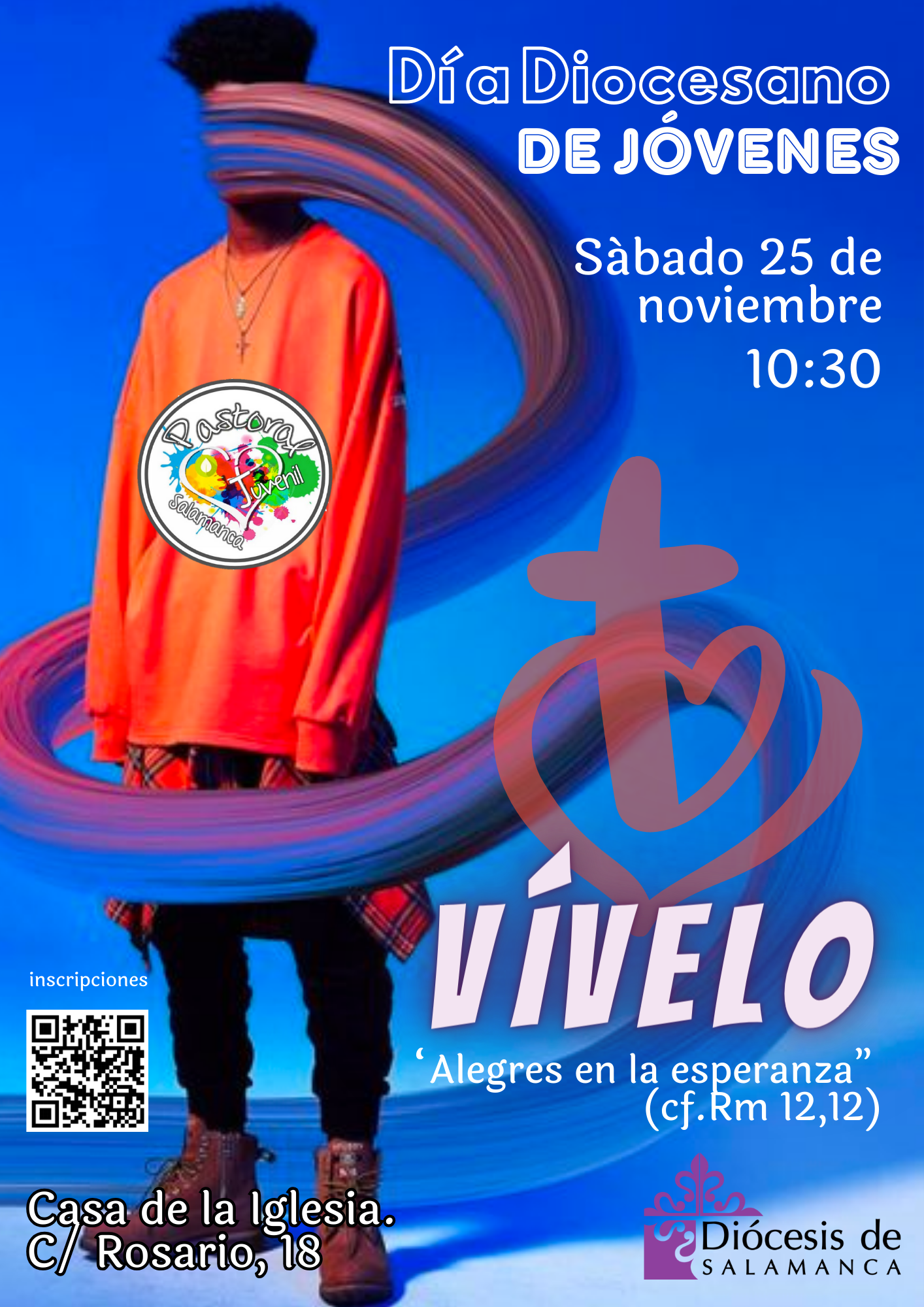 Pastoral Juvenil vuelve a convocar a todos los jóvenes de la diócesis de entre 14 y 30 años a participar en el Día Diocesano de Jóvenes (DDJ), que tendrá lugar el sábado, 25 de noviembre, desde las 10:30 horas. A lo largo de la jornada, realizarán diferentes actividades, tanto dentro como fuera de la Casa de la Iglesia, bajo el lema “Alegres en la Esperanza”. Es el tema elegido por el papa Francisco para la preparación del Jubileo de los jóvenes de 2025  en Roma.