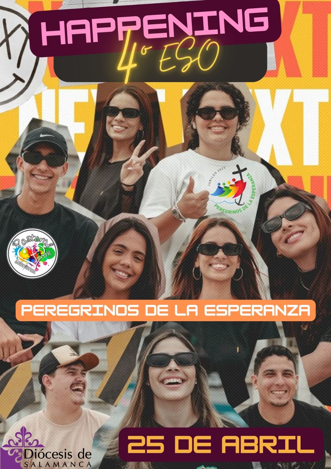 La Delegación de Pastoral Juvenil de la Diócesis de Salamanca ha convocado a todos los centros educativos de Salamanca a participar en el “Happening” que tendrá lugar el próximo 25 de abril en el auditorio de Calatrava, y que está dirigido a los alumnos de cuarto de la ESO, y que forma parte de la programación diocesana del Jubileo de la Esperanza, convocado por el papa Francisco para este año.