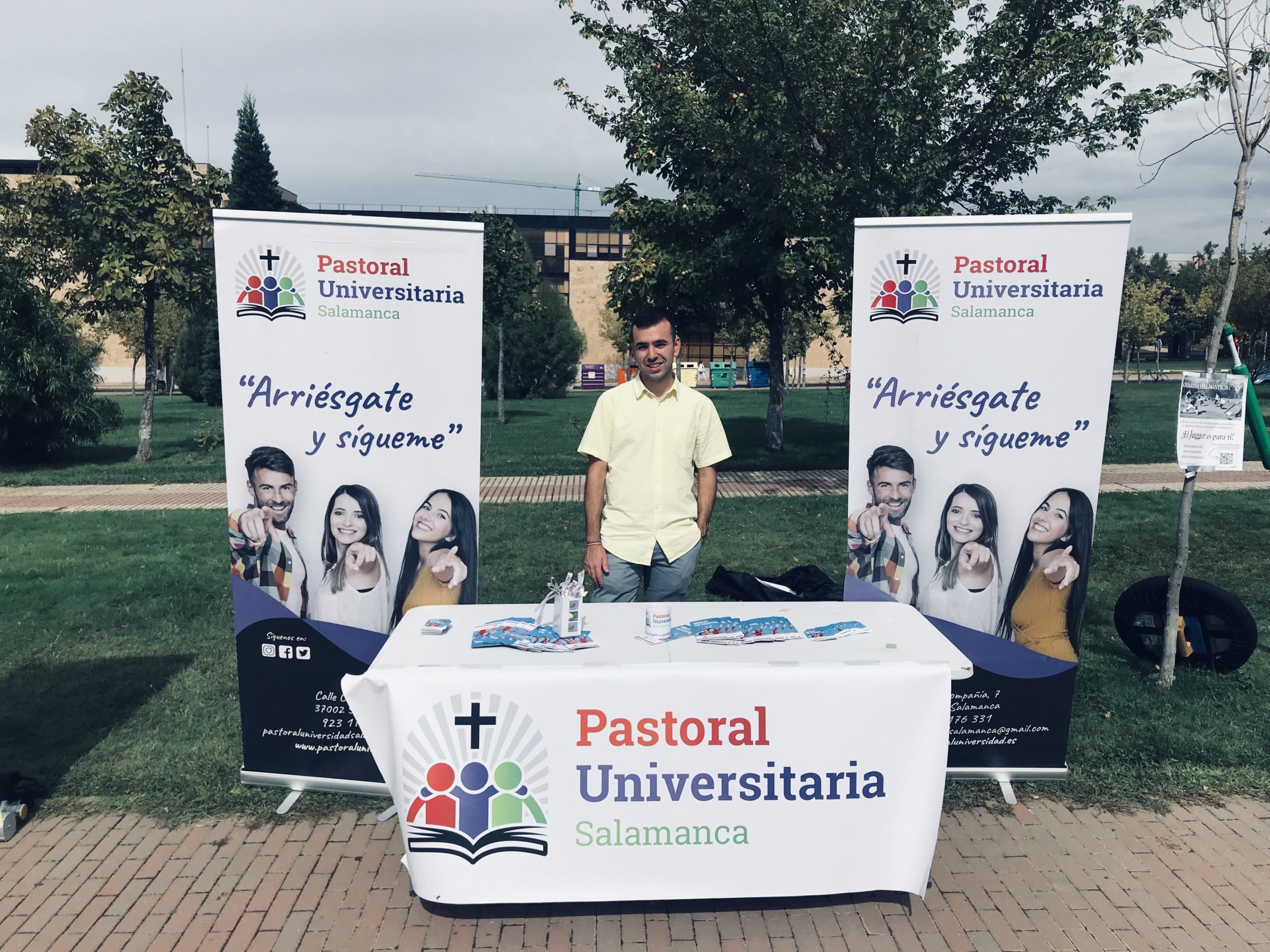 El lunes 19 participó en la feria de bienvenida de la USAL, desarrollada en el campus Miguel de Unamuno. Objetivo de la feria es dar a conocer a los universitarios, sobre todo a los que comienzan este año sus estudios, las diversas actividades e instituciones que desarrollan en torno a la Universidad. En el stand de Pastoral Universitaria los estudiantes recibieron información de las actividades, recibieron una pulsera de regalo y participaron en una rifa de material escolar.