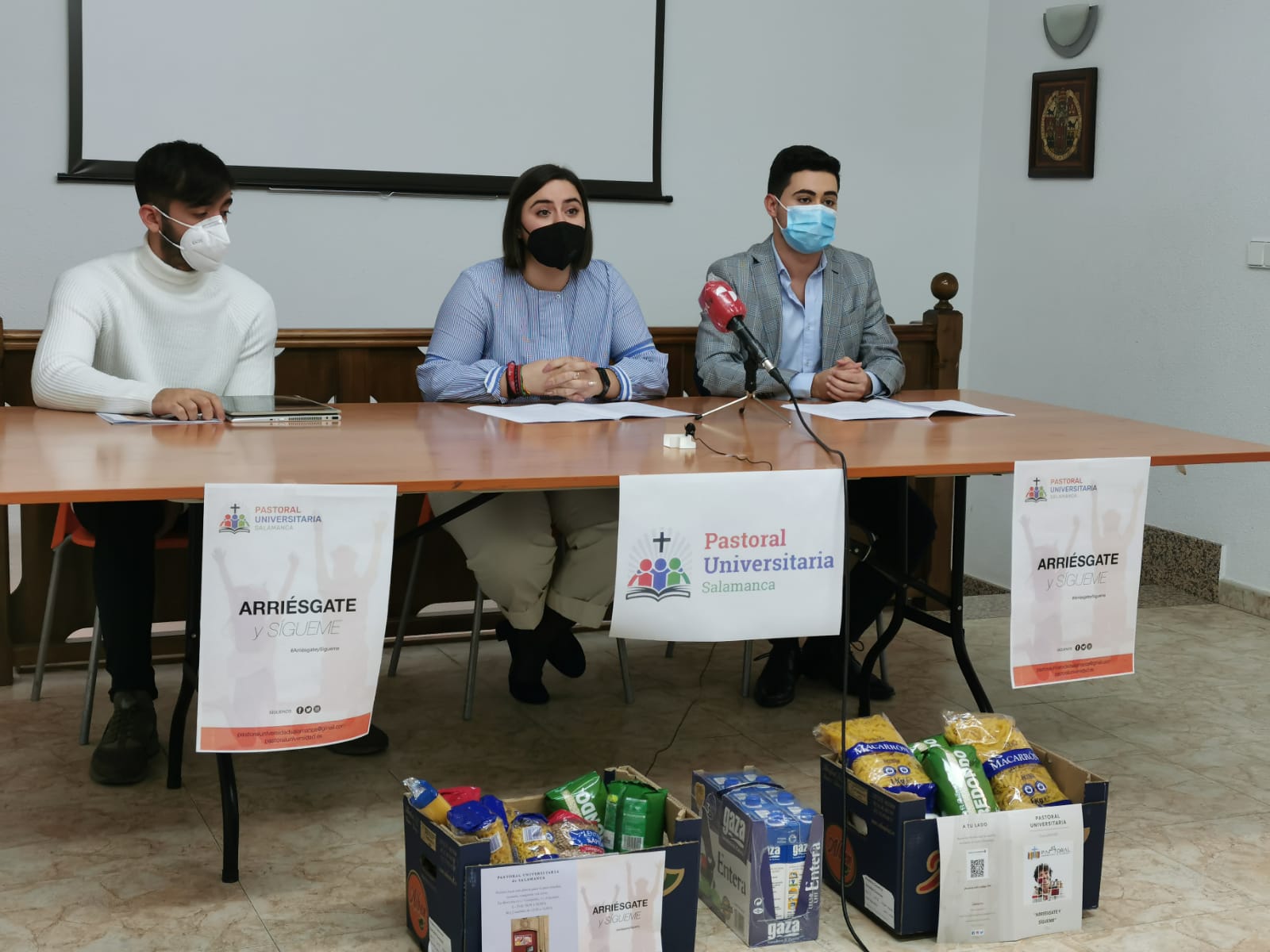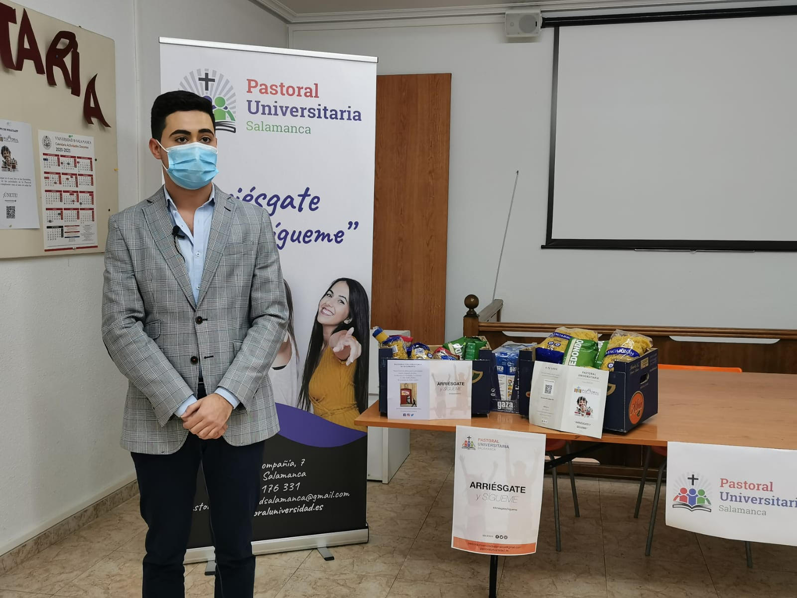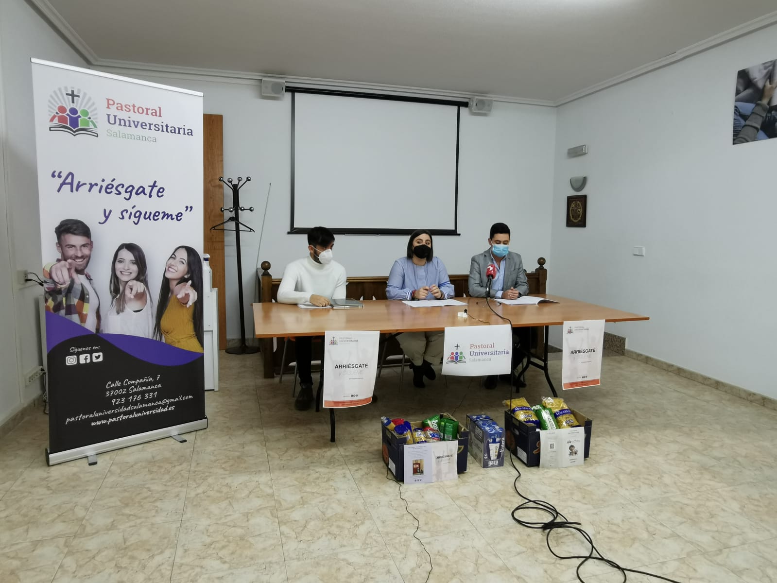 La Delegación diocesana de Pastoral Universitaria impulsa una campaña de recogida de alimentos en las universidades salmantinas a beneficio de las personas más desfavorecidas, y que entregarán al Banco de Alimentos. Así lo ha señalado Javier Marcos, uno de los jóvenes del equipo, en la presentación de la campaña: “Nuestro objetivo es recaudar la mayor cantidad posible y ayudar a mejorar la situación de tantas familias de nuestra ciudad que por su situación económica, y muchas veces también por la pandemia del Covid, están pasando un bache en sus vidas, y hacer más llevadero también este tiempo de Navidad”.