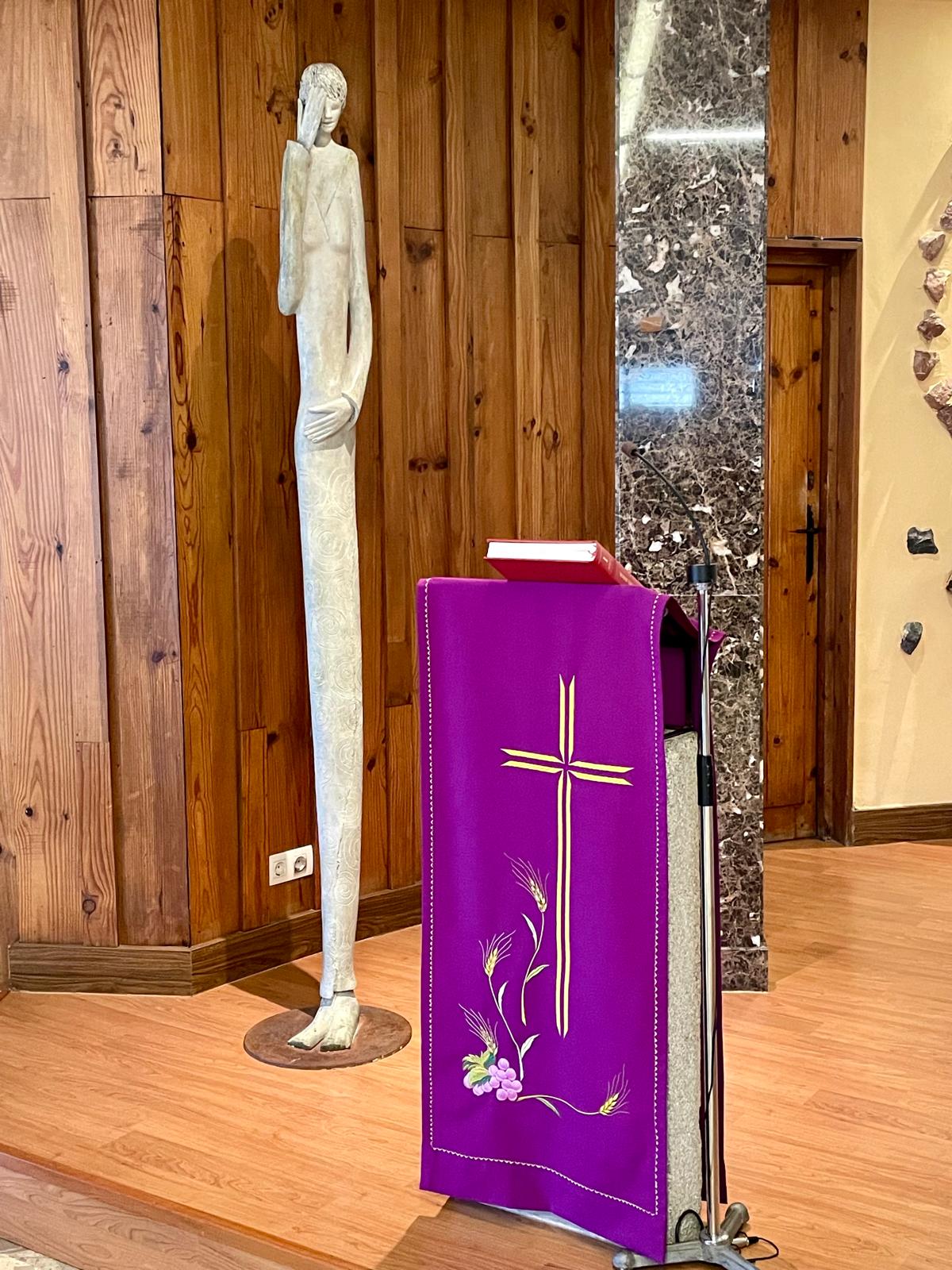 Peregrina de la esperanza se ha colocado junto a la Palabra de Dios, con la intención de inspirar a los fieles a ser también portadores de esperanza. “Esta escultura nos recuerda que los cristianos debemos llevar esperanza con nuestras obras y nuestra vida,” explica el párroco, expresando su deseo de que la imagen guíe el camino de la comunidad parroquial no solo durante el Jubileo, sino también el futuro.