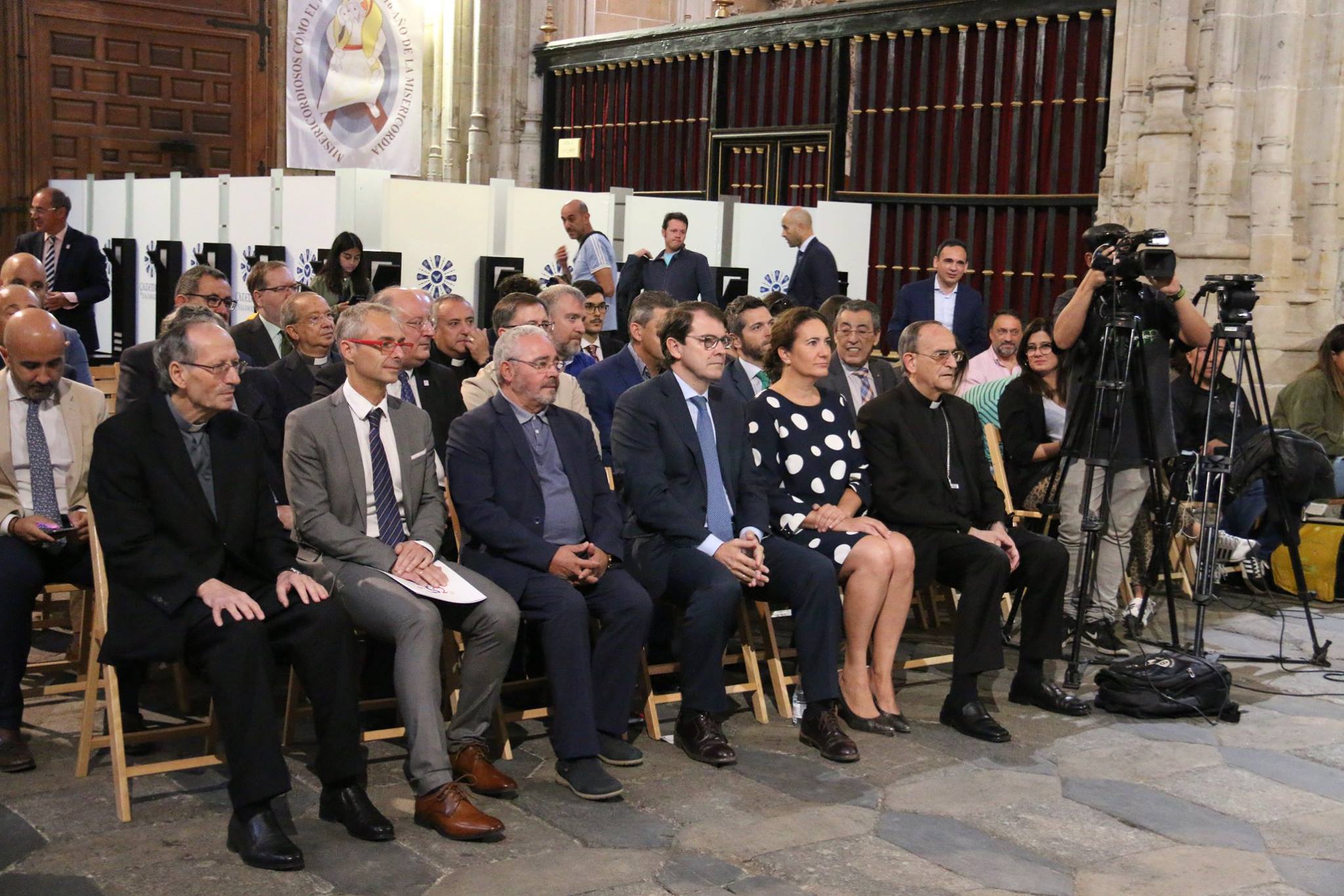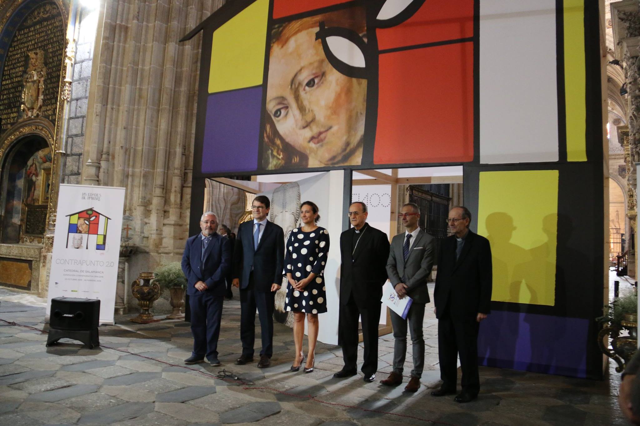 El Obispo de Salamanca, Mons. Carlos López, el secretario general de la Fundación Las Edades del Hombre D. Gonzalo Jiménez, la consejera de Cultura y Turismo de la Junta de Castilla y León, Dª María Josefa García Cirac; el alcalde de Salamanca Alfonso Fernández Mañueco y el rector de la Universidad, D. Ricardo Rivero, han presentado esta mañana en la Catedral de Salamanca la exposición Contrapunto 2.0 que conmemorará el 25º aniversario de la celebración de Las Edades del Hombre en Salamanca.