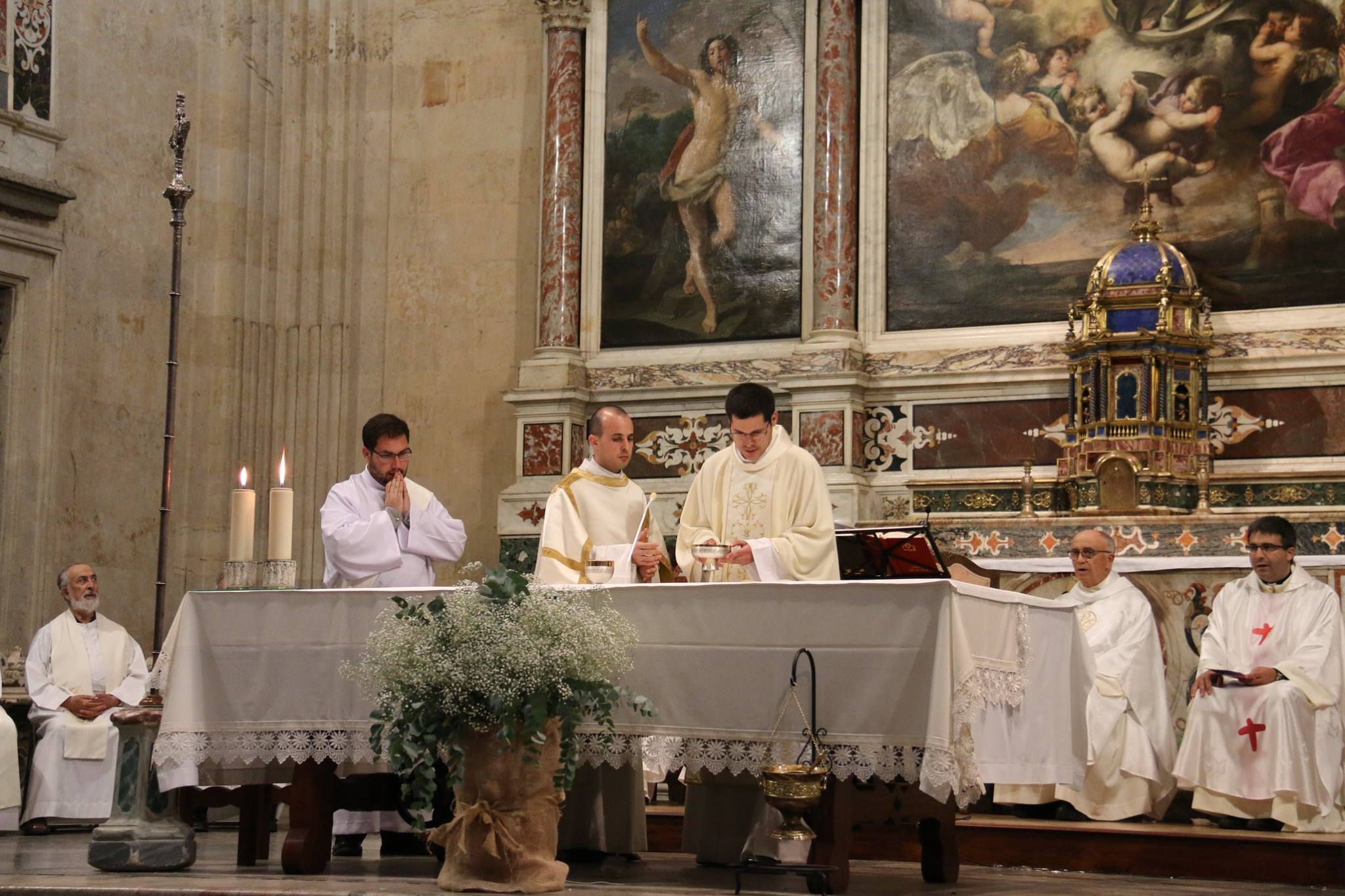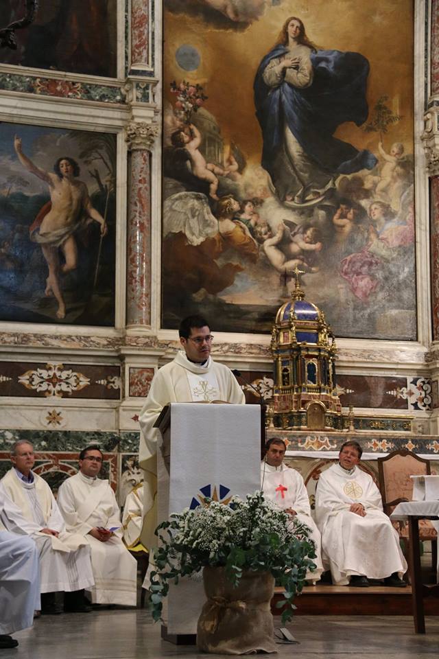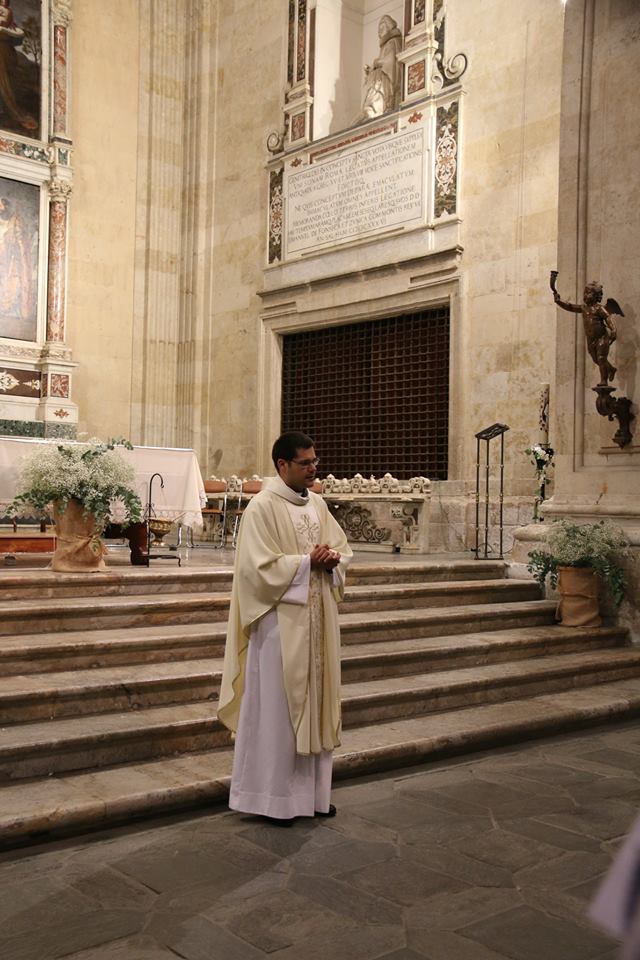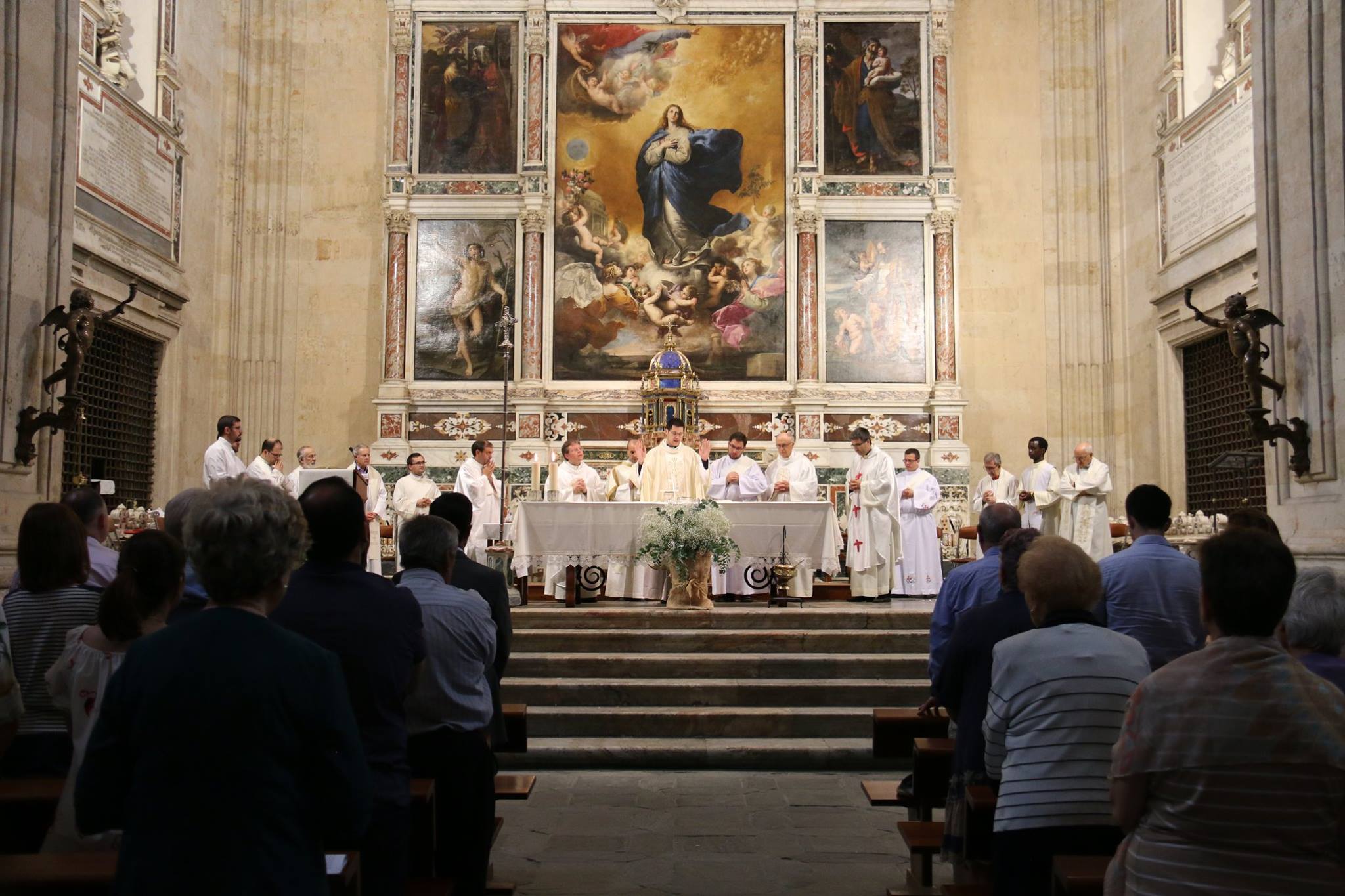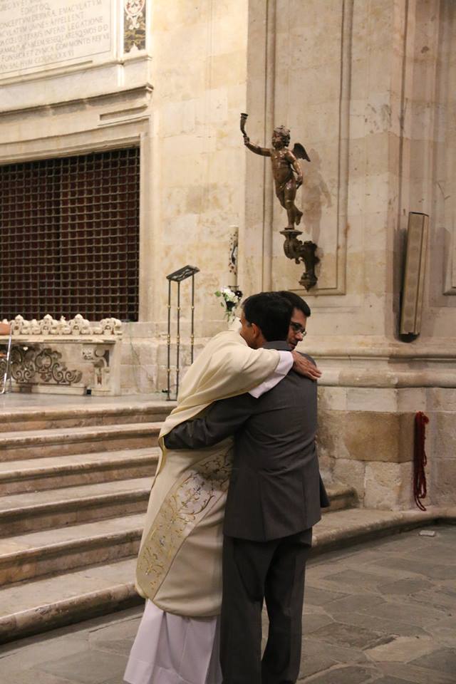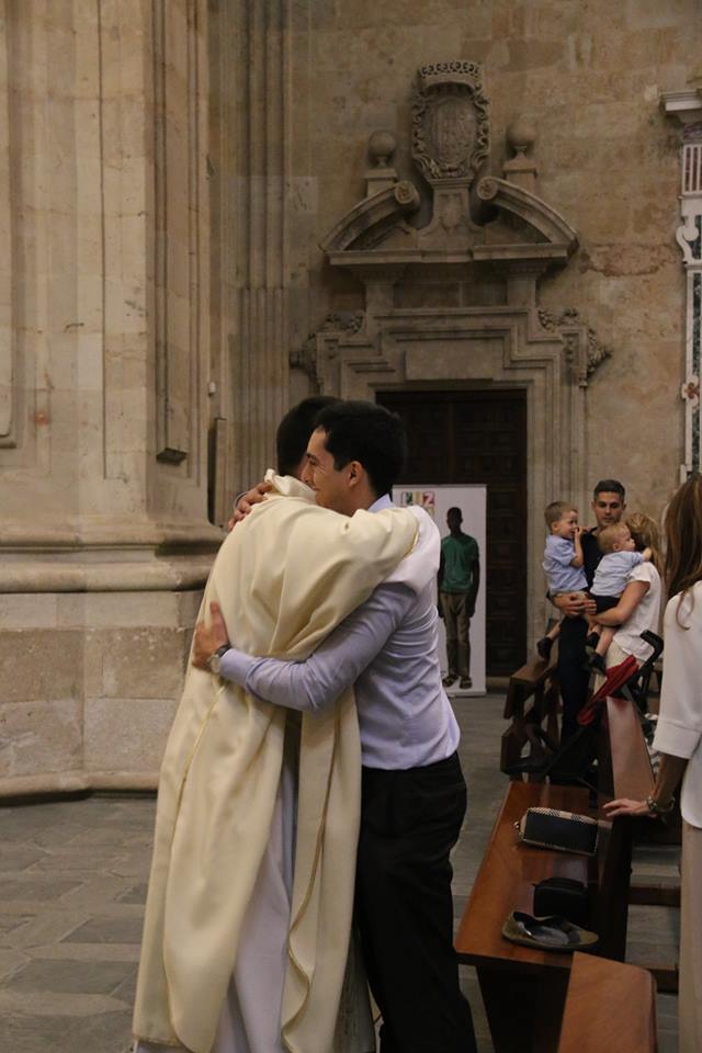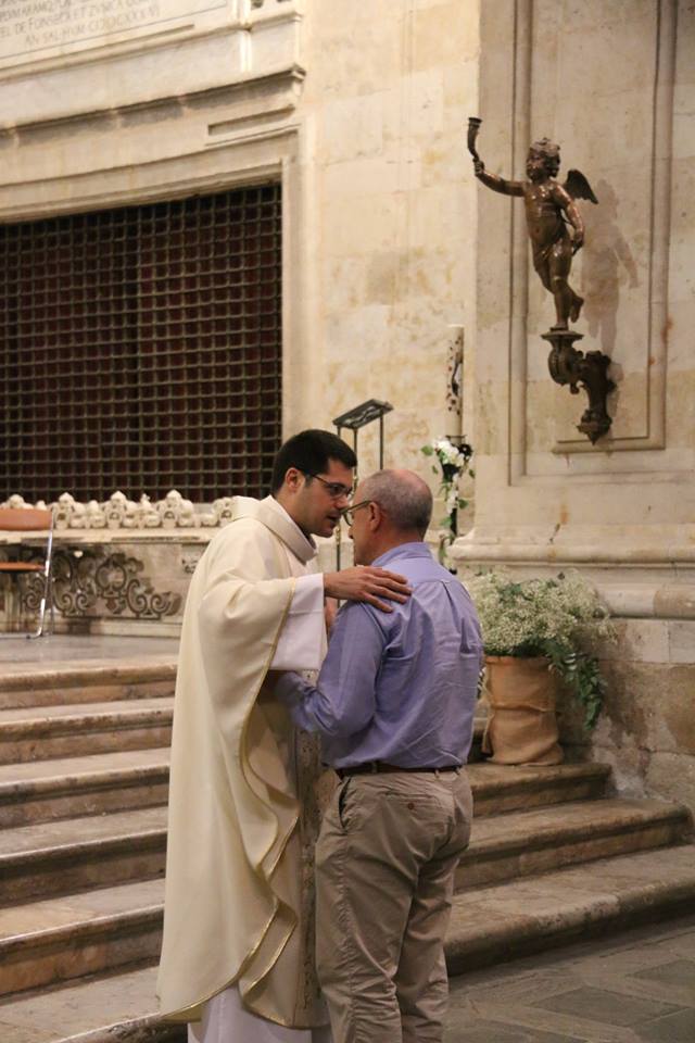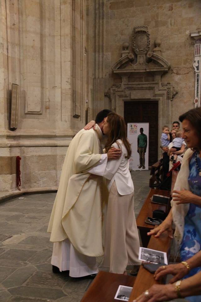 El sacerdote Antonio Carreras, ordenado presbítero el pasado domingo, celebró el lunes, 25 de junio, su Primera Eucaristía en la parroquia de La Purísima donde creció en la fe en su juventud. Familiares, amigos, compañeros de Teologado de Ávila y del Seminario diocesano así como numerosos fieles de Salamanca participaron en esta primera eucaristía de acción de gracias. Al término de la celebración, emocionado, Antonio compartió unas palabras de agradecimiento hacia todos los presentes, especialmente hacia los anteriores párrocos de la Purísima, Fructuoso Mangas y José Manuel Hernández, y los actuales, Antonio Matilla y Poli Díaz. “Desde lo que soy, desde mi fragilidad y mi debilidad, me acojo a vuestras oraciones”, manifestó al tiempo que señalaba sentirse profundamente dichoso por haber sido elegido para el ministerio sacerdotal “sobre todo en este momento en el que parece que vamos contracultura y seguir a Jesús parece cosa de locos… Cuando se hace con amor, con gracia y realmente ilusionado, es siempre un camino que merece la pena”, concluyó.