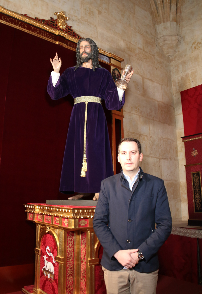Javier Casas, vicehermano mayor de la Archicofradía del Rosario, junto a la imagen de Nuestro Padre Jesús de la Redención