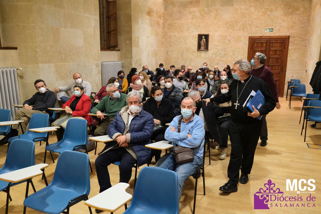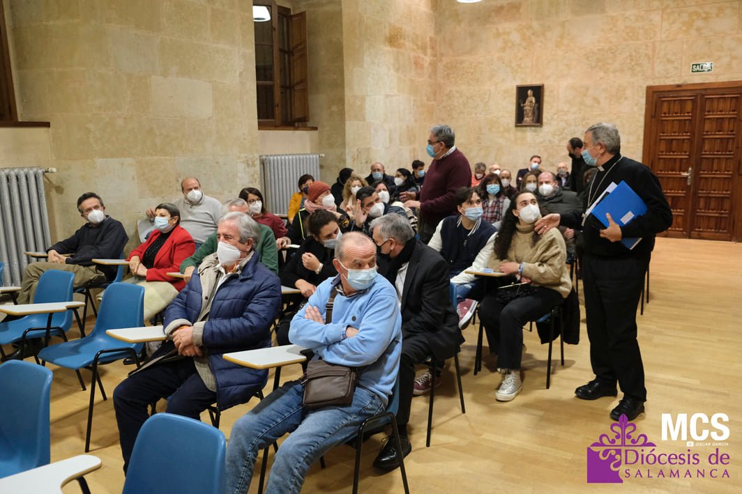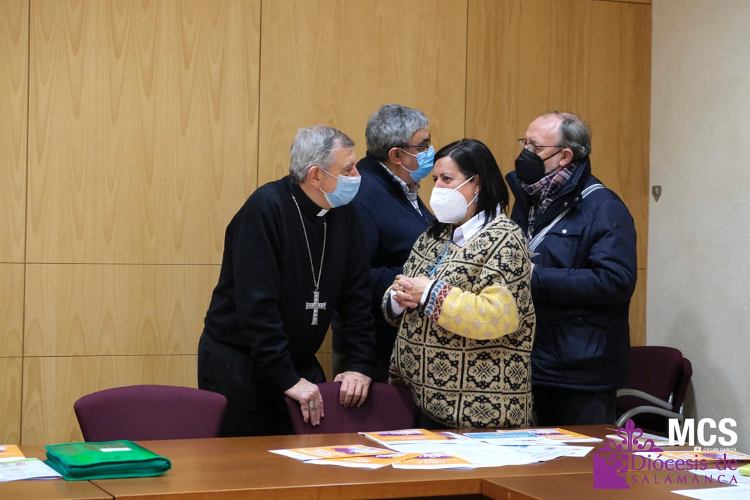 Por otra parte, el obispo de Salamanca tuvo la oportunidad de conocer a los integrantes de los equipos que integran las delegaciones, servicios y curia diocesana, en un par de jornadas, el viernes por la tarde, y el sábado por la mañana. El sábado también se acercó hasta la parroquia de Nuestra Señora de Lourdes, en el barrio de Capuchinos, en Salamanca, para saludar a los consiliarios de la Juventud Estudiante Católica (JEC), que celebraban allí un encuentro en torno a la vocación y misión de la JEC en el mundo de hoy. Allí coincidió con los responsables y participantes del cursillo de novios, a quienes también saludó.