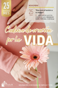 Finalmente, el 25 de noviembre, la Delegación de Familia y Vida invita a unirse a la cadena de oración por la vida”, a las doce del mediodía. El lema de este mes se basa en la cita del Génesis: “Dios creó al hombre a su imagen”.
