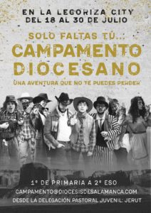 VII CAMPAMENTO DIOCESANO EN LA LEGORIZA. Organizado por el grupo de monitores Jerut de la Delegación diocesana de Pastoral Juvenil, este campamento está dirigido a niños y niñas de 1º de Primaria a 2º de ESO. Se celebrará del 18 al 30 de julio (13 días y 12 noches), en las instalaciones de La Legoriza, de la Junta de Castilla y León, en San Martín del Castañar, y en esta ocasión estará ambientado en el lejano Oeste. Los participantes disfrutarán de múltiples actividades e inolvidables veladas donde se comparte la fe.El número de plazas es de 120 y los interesados en participar deben remitir un correo electrónico a: campamento@diocesisdesalamanca.com, donde se les informará sobre la inscripción, precios, etc.