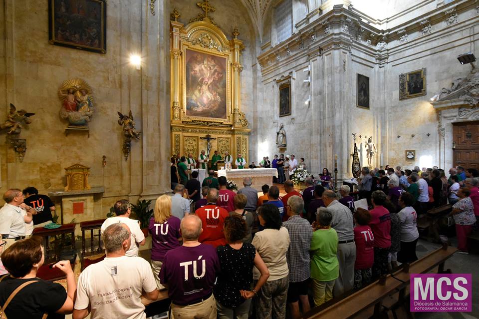 El jueves 19 de julio la HOAC realizó un gesto público en la Plaza de Anaya de Salamanca para poner de manifiesto la realidad sufriente que, bajo formas muy diversas, hoy padece el mundo del trabajo. El acto tuvo lugar tras la eucaristía que se celebró en la iglesia de San Sebastián, que fue presidida por su consiliario general, D. Fernando Carlos Díaz Abajo.
