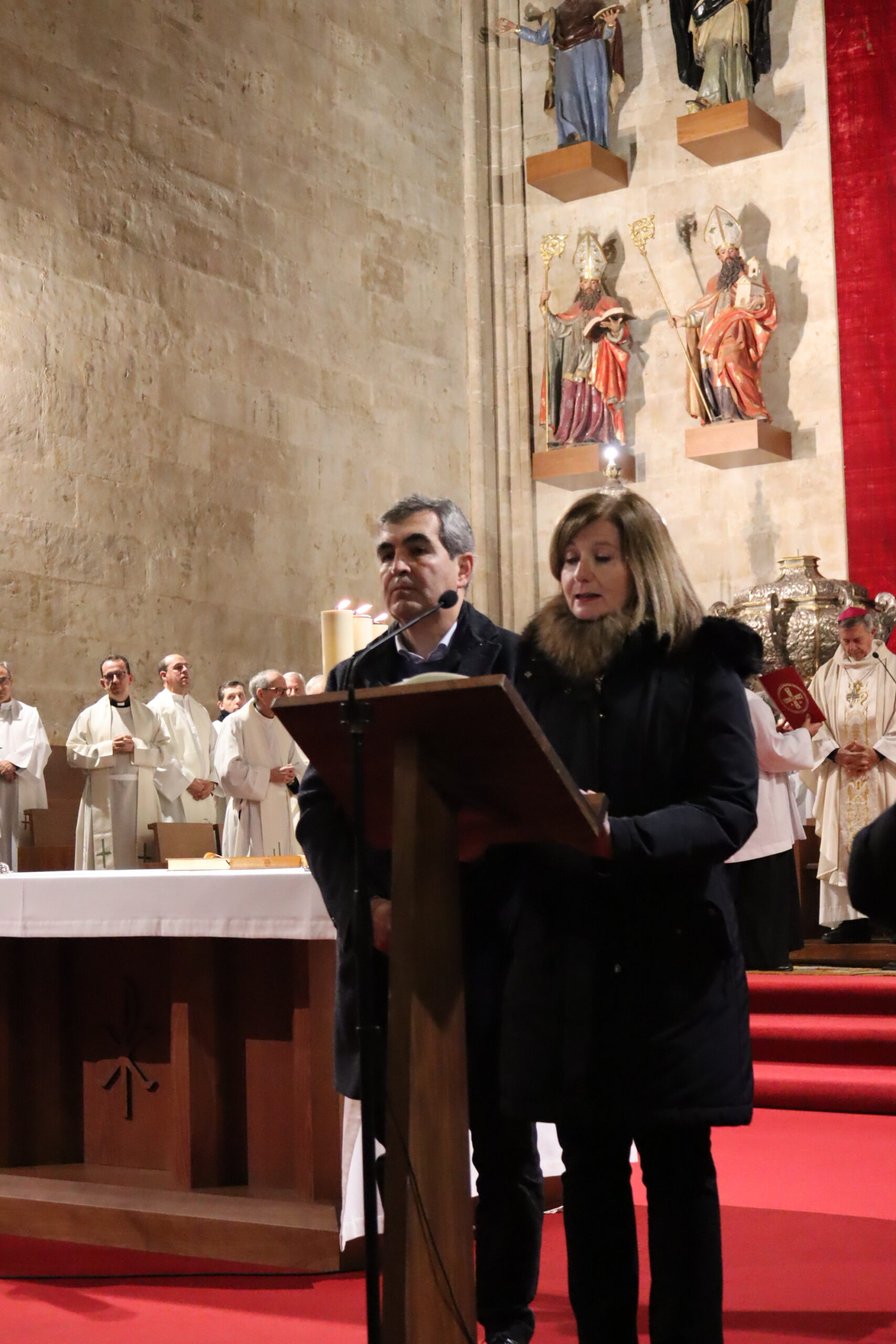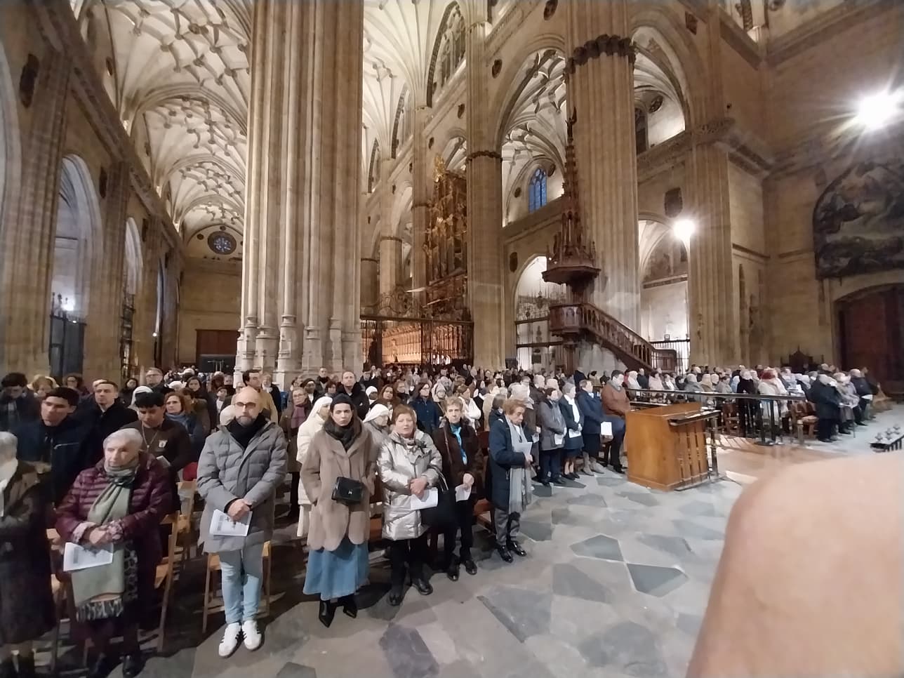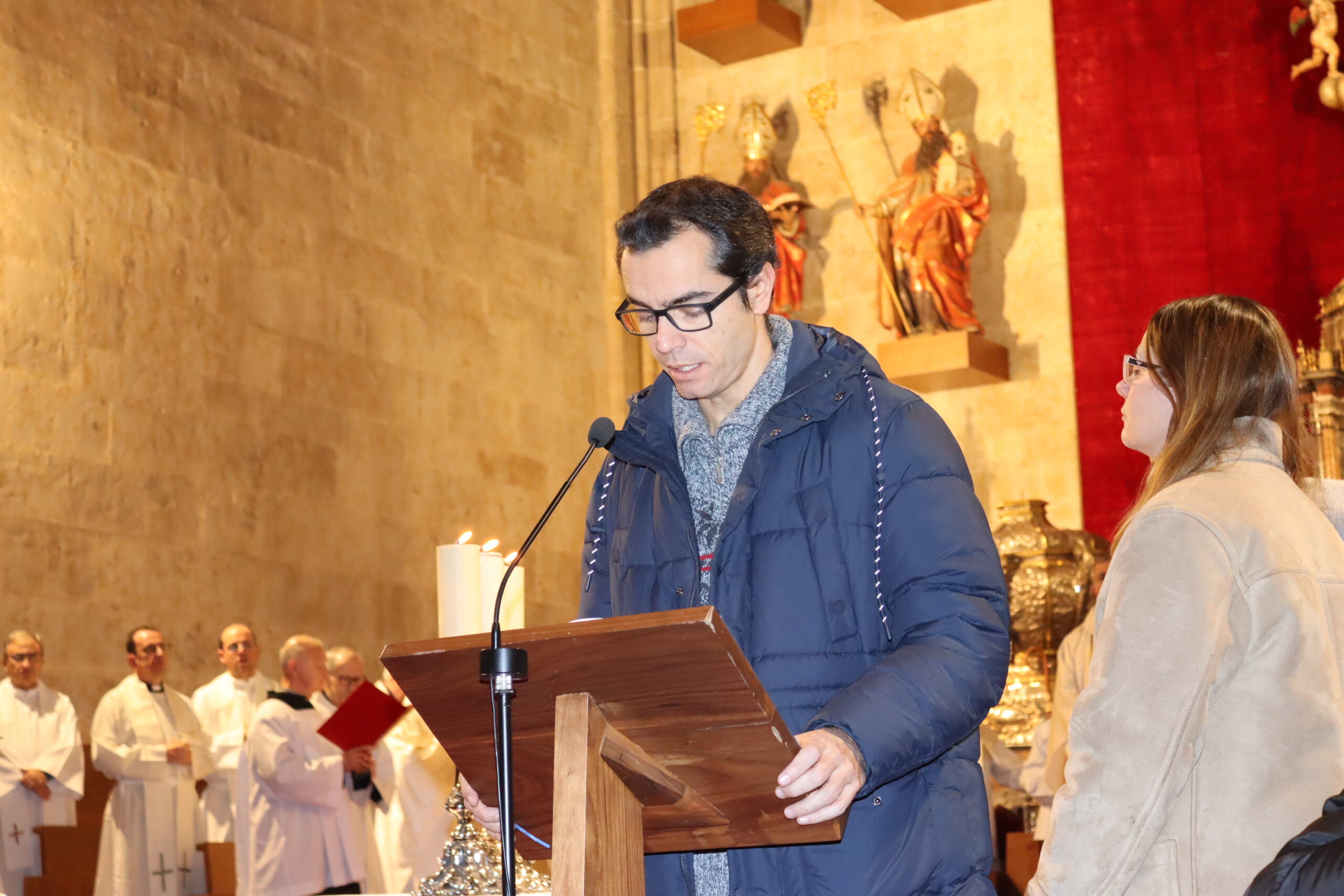Al inicio de la celebración, los responsables de la Delegación de Familia y Vida, Elena Partearroyo y Fernando Simón realizaron la monición de entrada y dieron la bienvenida a la asamblea, recordando que la Iglesia que camina en Salamanca se reunía para dar gracias al Señor por el Año Jubilar de la Esperanza, vivido como un tiempo de gracia que ha invitado a abrir el corazón, a caminar juntos como pueblo de Dios y a dejarse renovar por la esperanza que brota de Cristo resucitado.