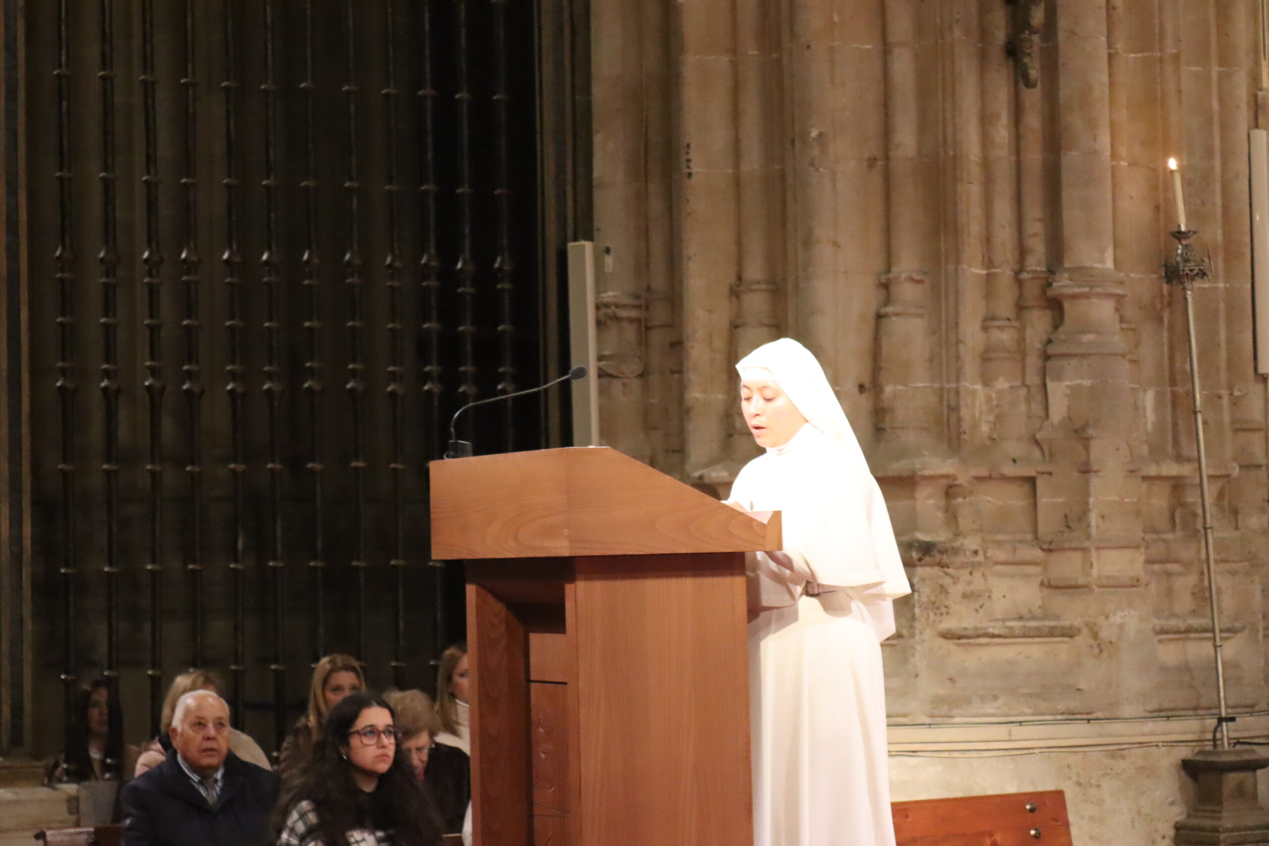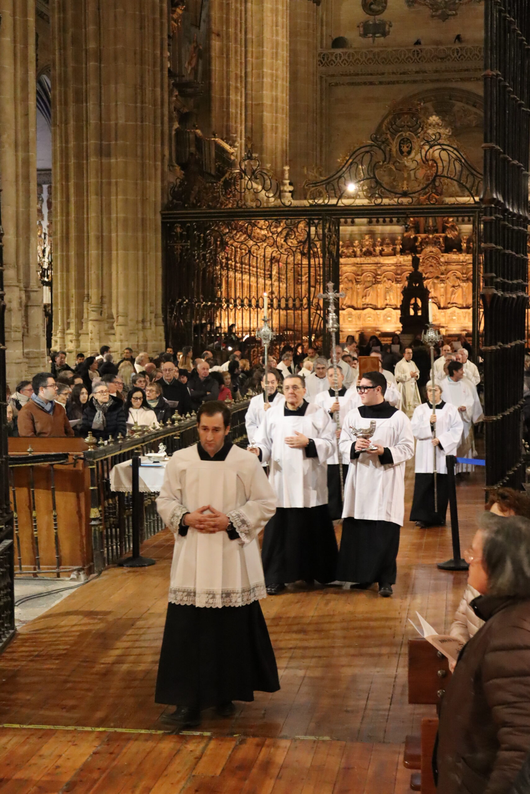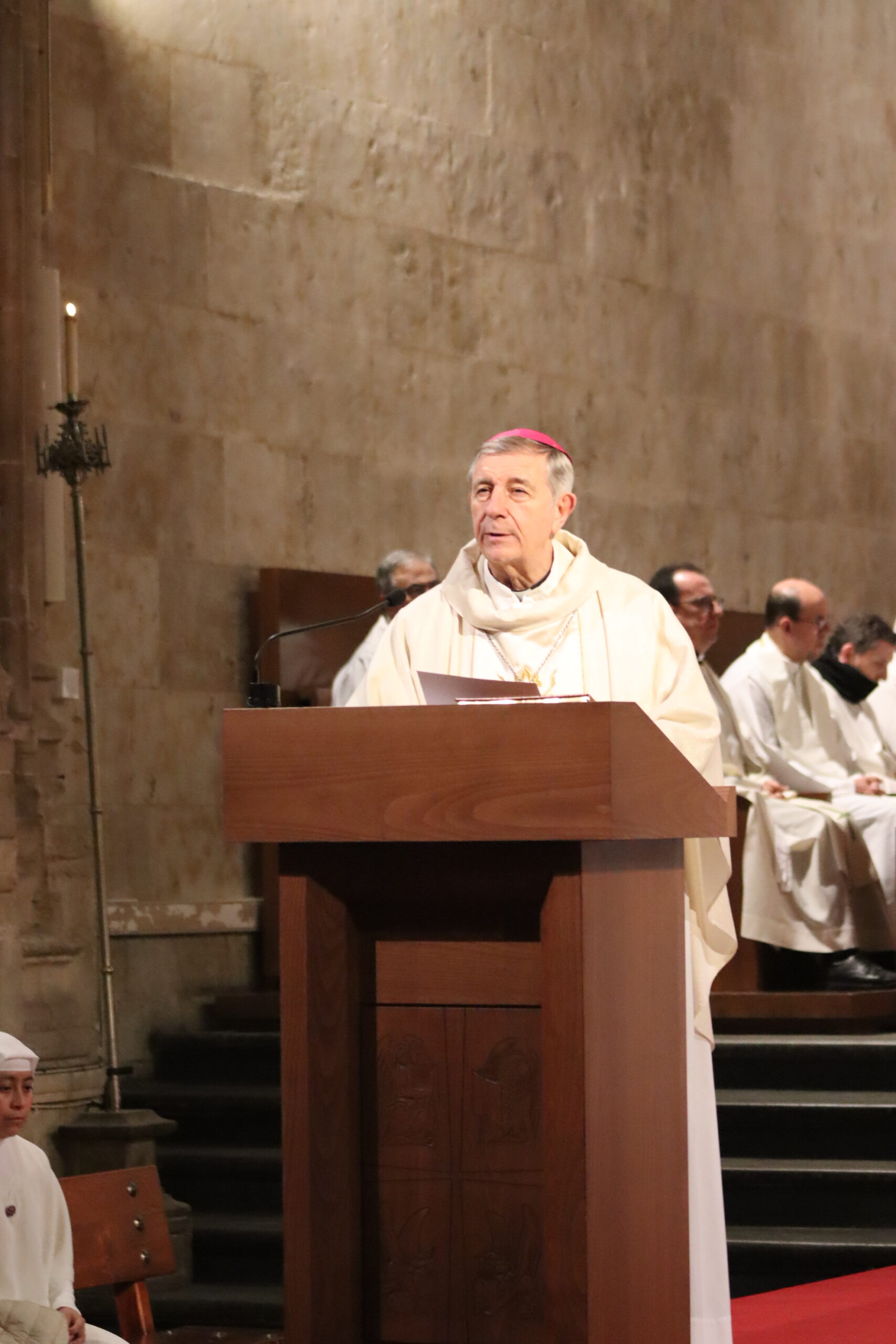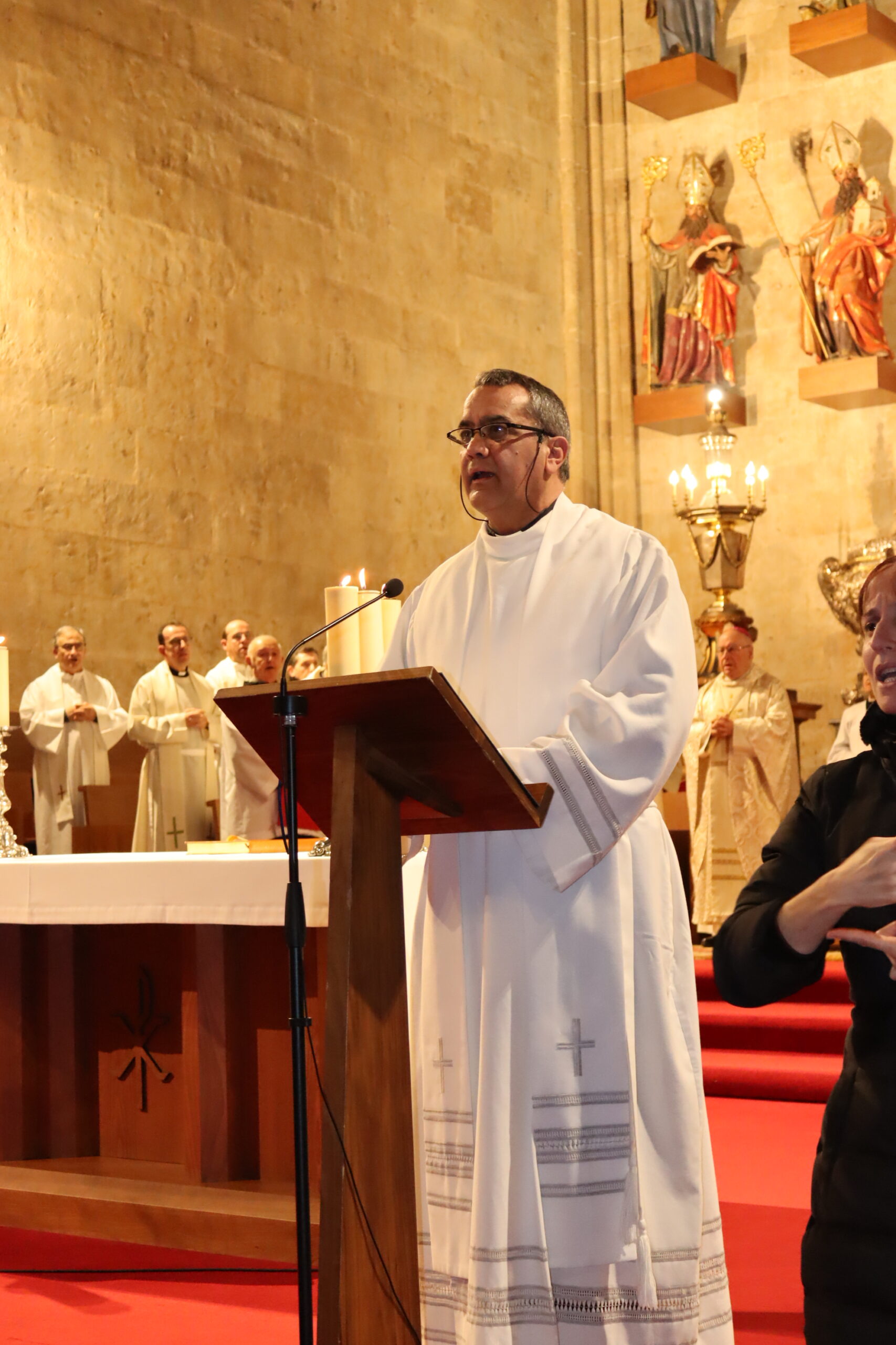 Al inicio de la celebración, los responsables de la Delegación de Familia y Vida, Elena Partearroyo y Fernando Simón realizaron la monición de entrada y dieron la bienvenida a la asamblea, recordando que la Iglesia que camina en Salamanca se reunía para dar gracias al Señor por el Año Jubilar de la Esperanza, vivido como un tiempo de gracia que ha invitado a abrir el corazón, a caminar juntos como pueblo de Dios y a dejarse renovar por la esperanza que brota de Cristo resucitado.
